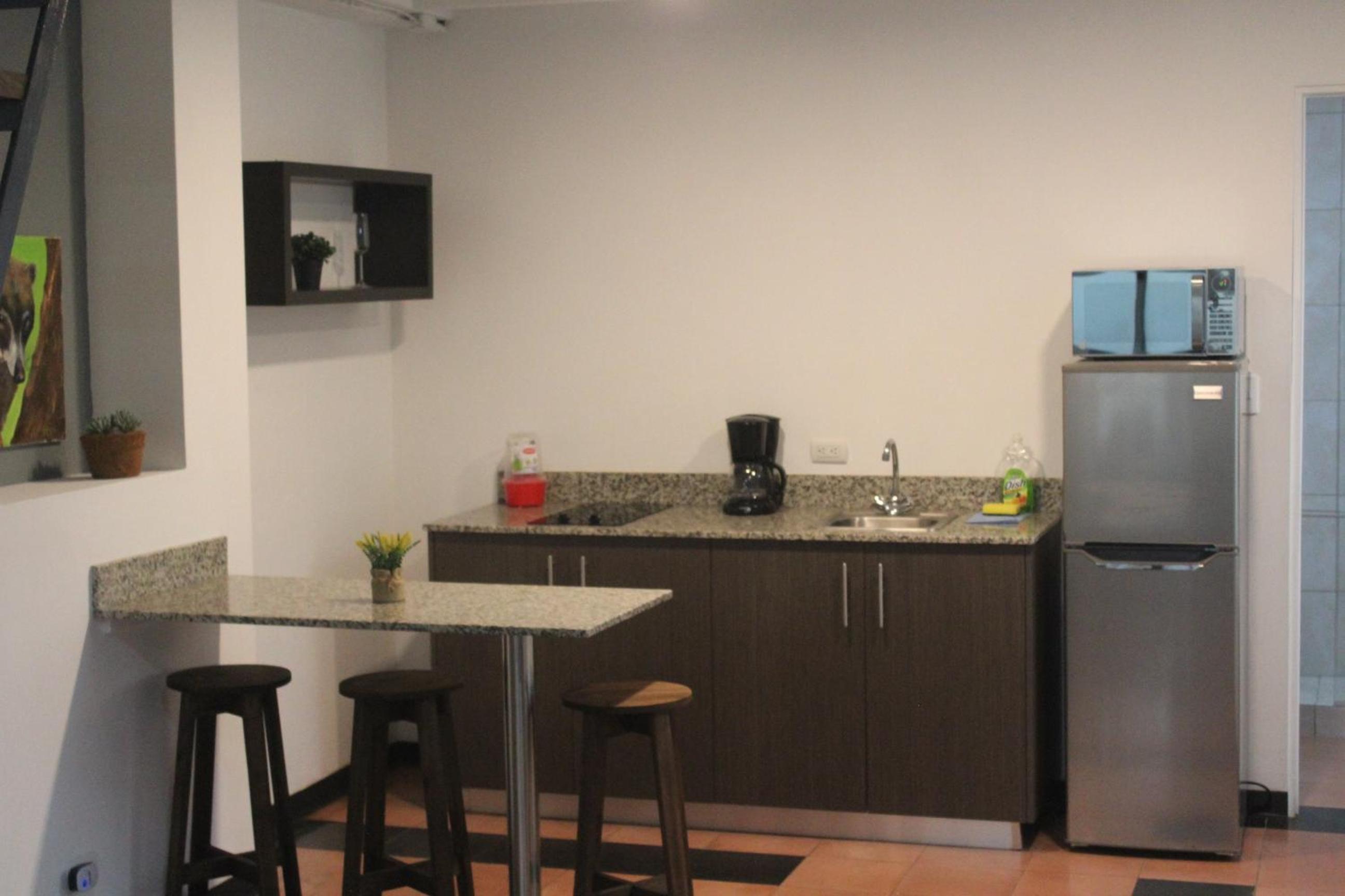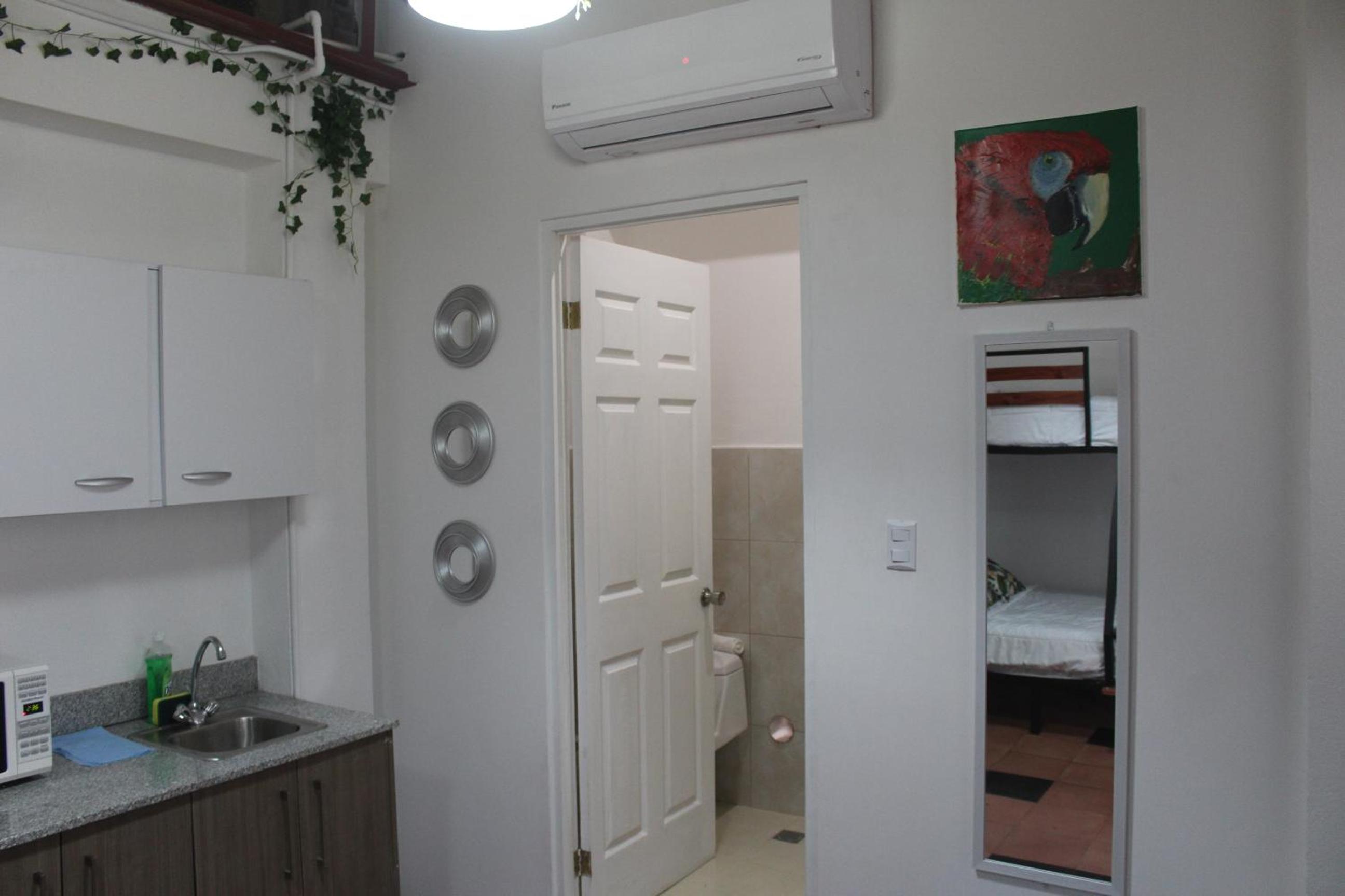 Posizione di fronte ad uno dei musei della cittá, e a due minuti dal museo nazionale (eccezionale). Di fianco allo stabile dell'appartamento c'é un ottimo caffé che propone dei piatti del giorno buonissimi e con un ottimo prezzo e soprattutto due persone incantevoli. Ci sono due grandi supermercati sempre sulla via, ad un minuto dall'appartamento. Il giardino dell'edificio é semplicemente meraviglioso, dunque avere un piccolo balcone per ammirare la bellezza dei fiori, uccellini, e piante é molto bello. Il letto é comodo, lo spazio grande, é possibile lasciare i bagagli dopo il check-in se necessario (chiusi a chiave in un luogo sicuro). Attenzione: non é una cosa negativa ma una cosa a cui ci si abitua in Costa Rica, di notte potrebbero esserci animali che corrono/camminano sul tetto :-) e dunque si sentono.