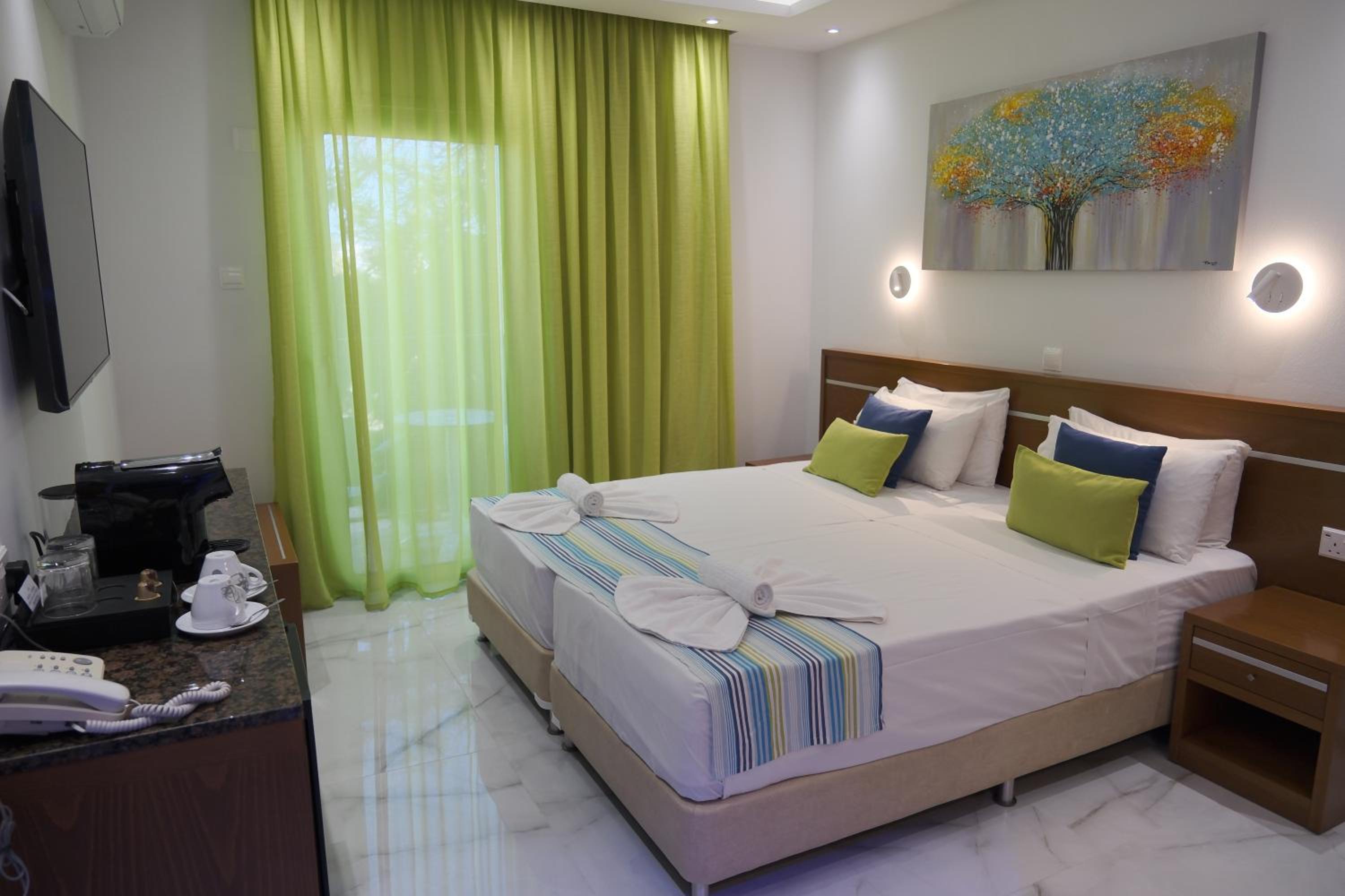 The room was spotless and the staff was kind. We liked the breakfast, it was ok and varied but the rest of the menu not very diverse, pizza for example was very poor. The portions are big though and the wraps were good. We arrived a bit earlier than the scheduled check in time and they were kind to offer as an option to store our luggages until the check in time and had some nice time at the pool which was greatly appreciated.