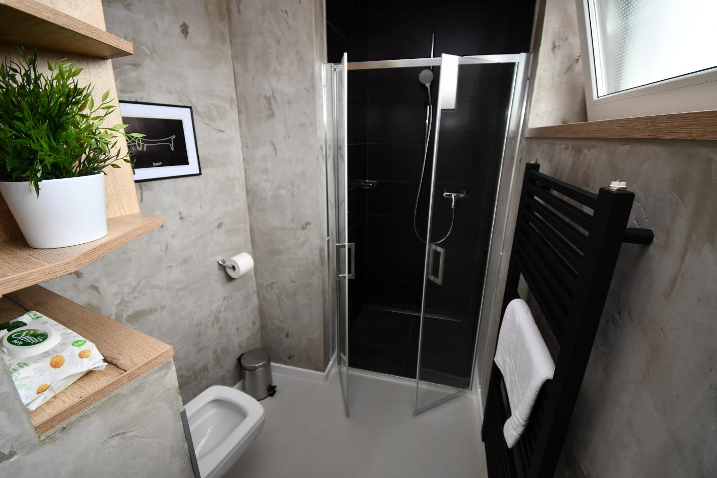 Vybavení celého apartmánu bylo čisté a voňavé. Pan majitel velmi přátelský a milý, velký sympaťák. Otevřený bazén a vinný sklípek 24/7, soukromí, nemůžeme nic vytknout, cítili jsme se jako doma, určitě se zase vrátíme😊