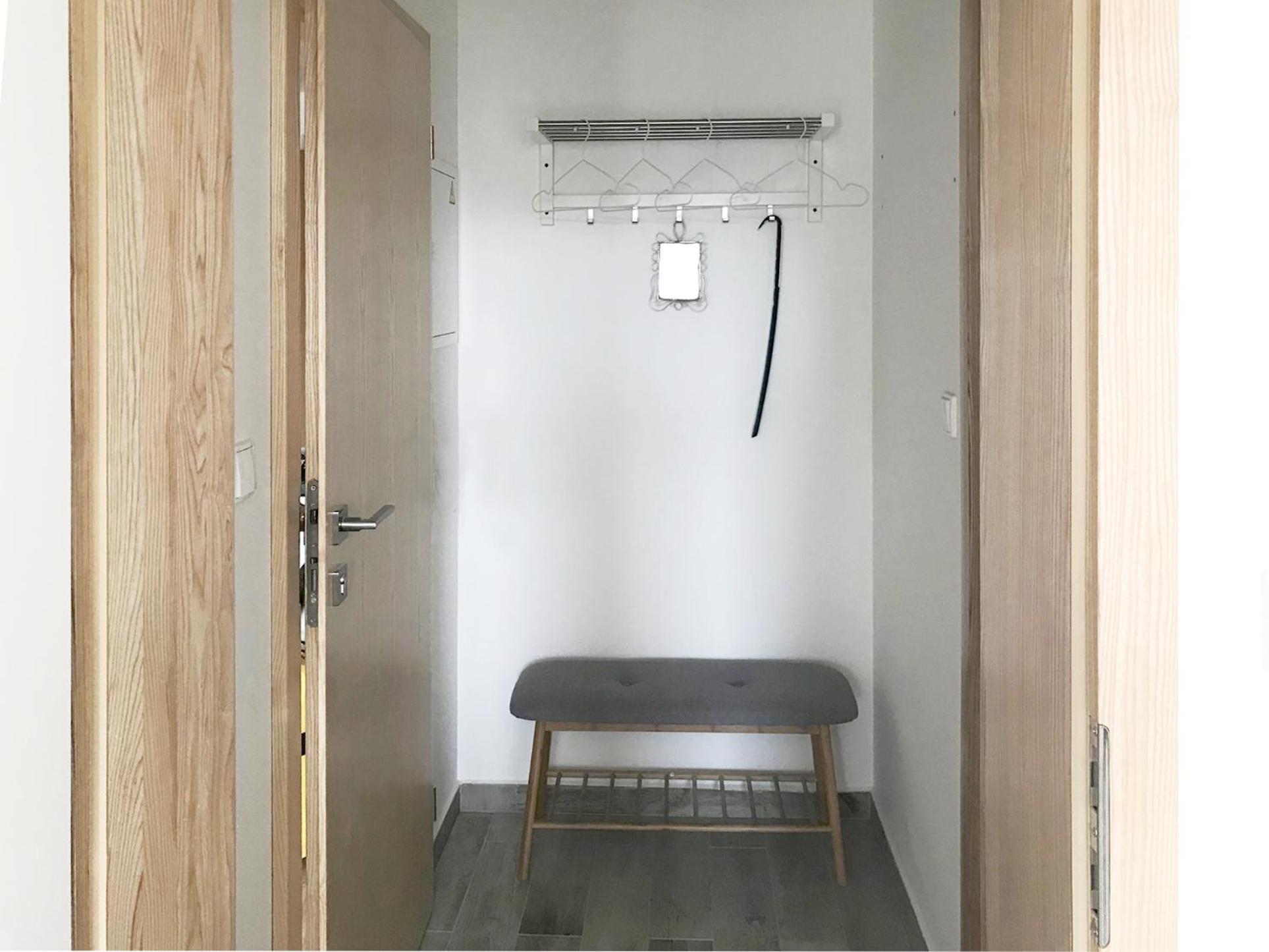 Malý priestor na odkladanie bicyklov,pozor apartmány sú na poschodí,takže treba rátať s 13 schodmi niekoľkokrát denne co môže byt problém pre starších ludí