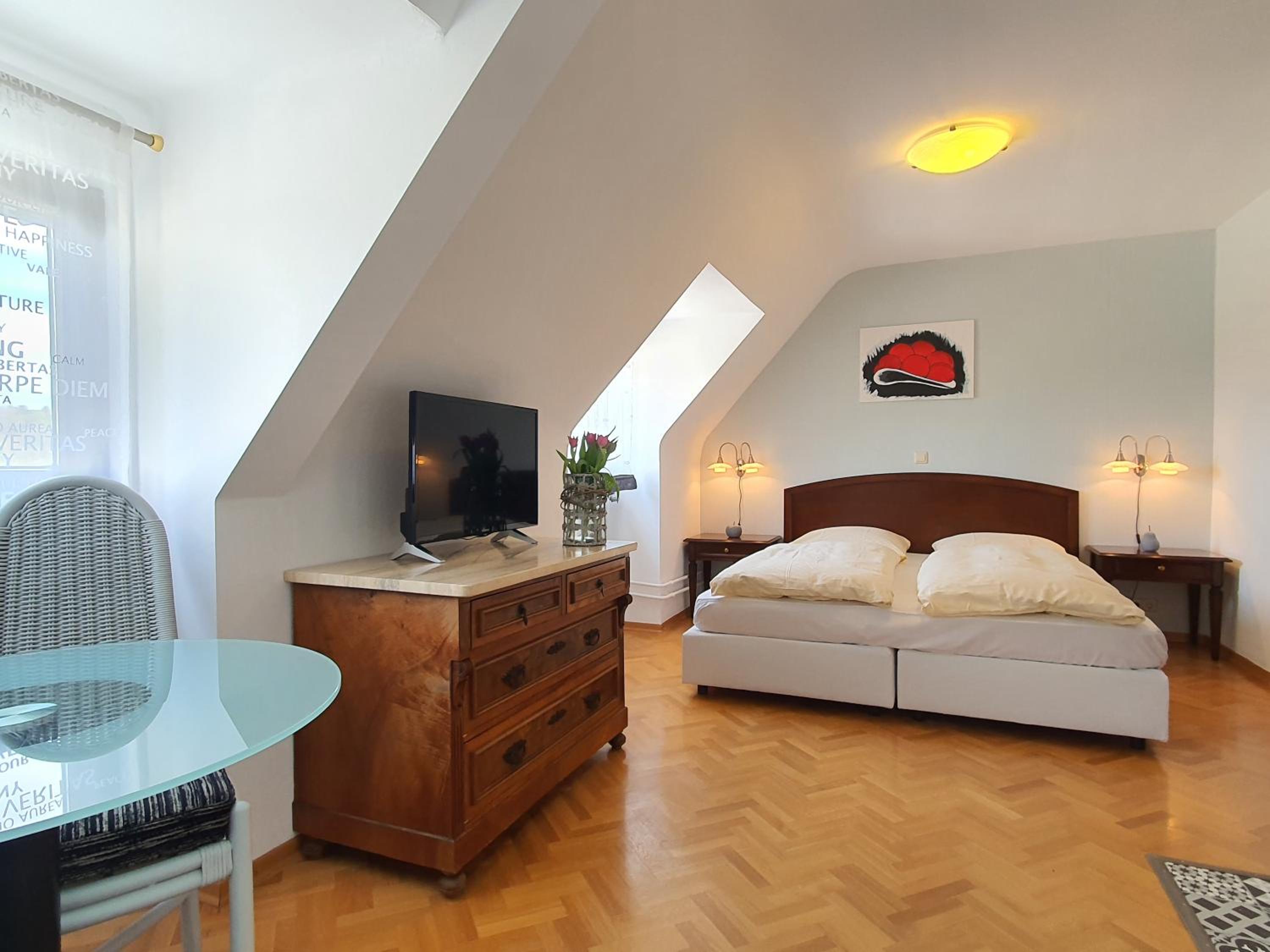 Comfy beds. Spacious rooms. Kitchenette available to heating baby food. Good heating in the rooms. Beautiful view of mountains. 15 mins from the city centre and Europa Park. On site parking.