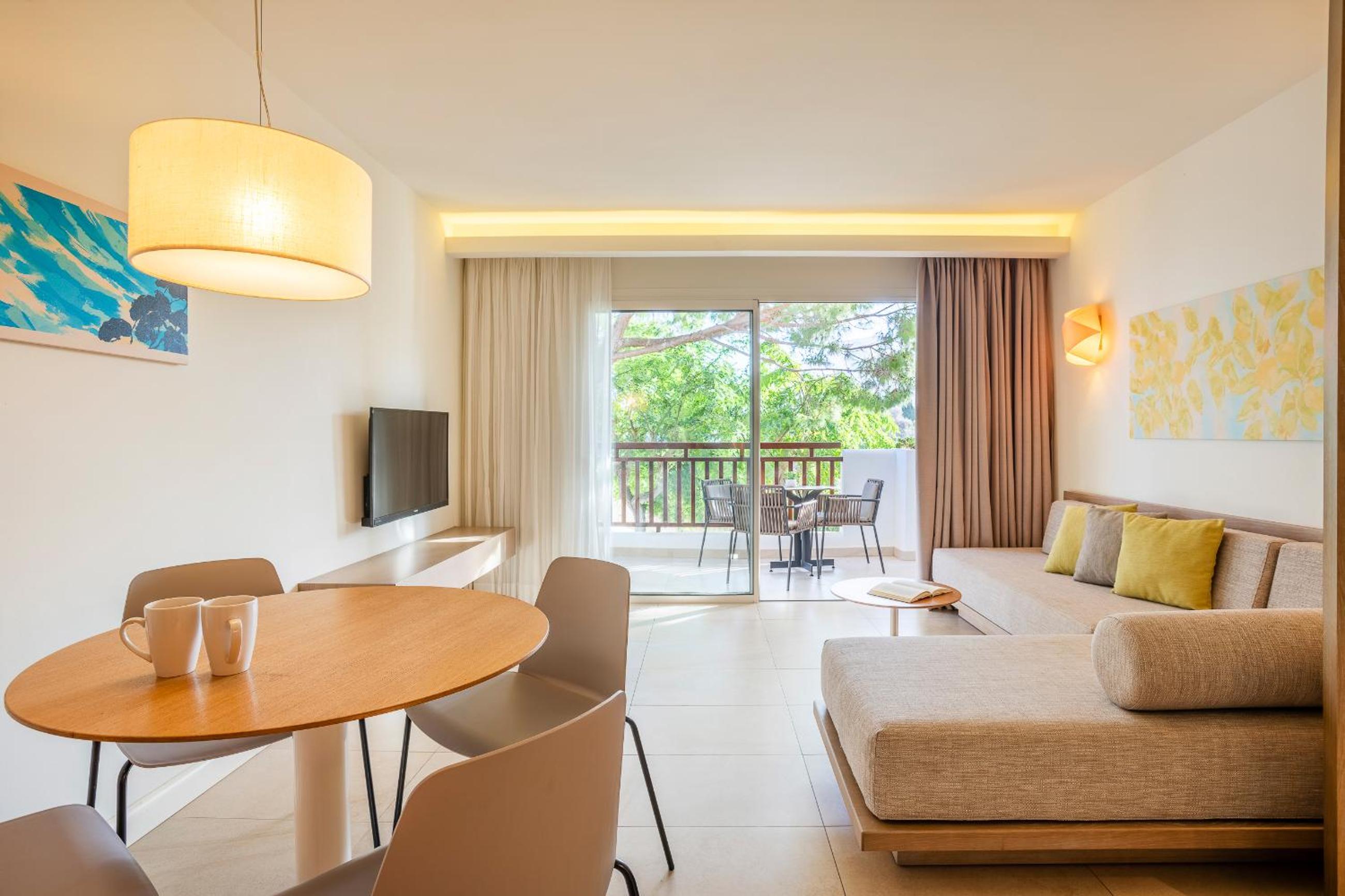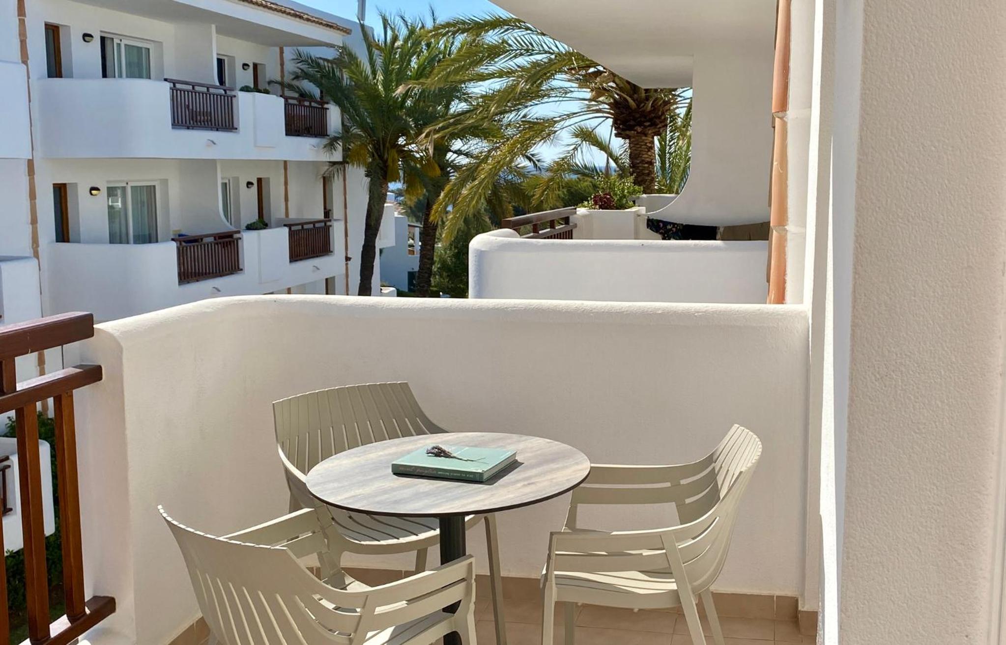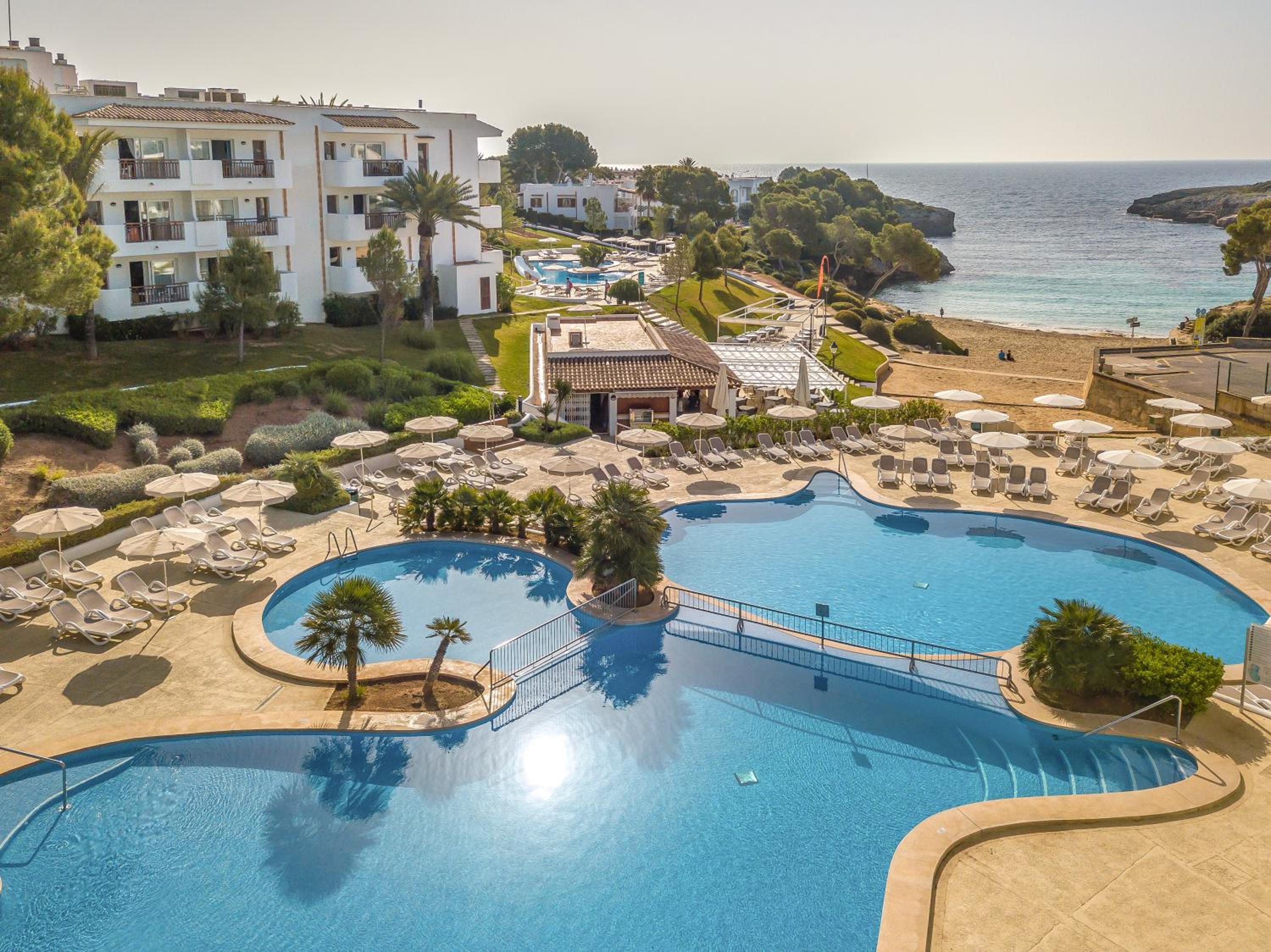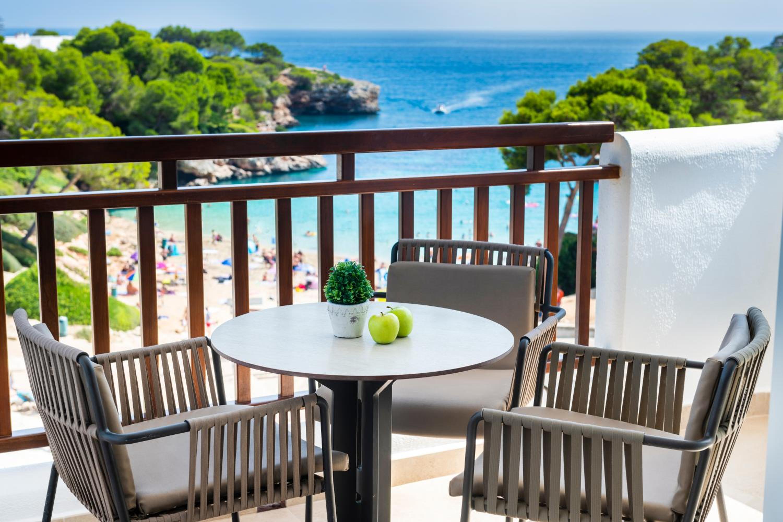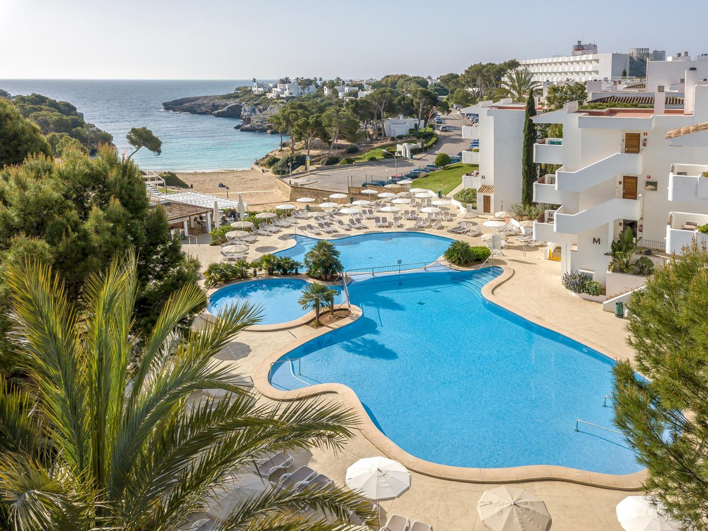 Located on the stunning Cala Esmeralda Beach, our aparthotel offers a picturesque setting with direct beach access and multiple outdoor pools. Enjoy the breathtaking views of the sea, pool, or garden from your private balcony.