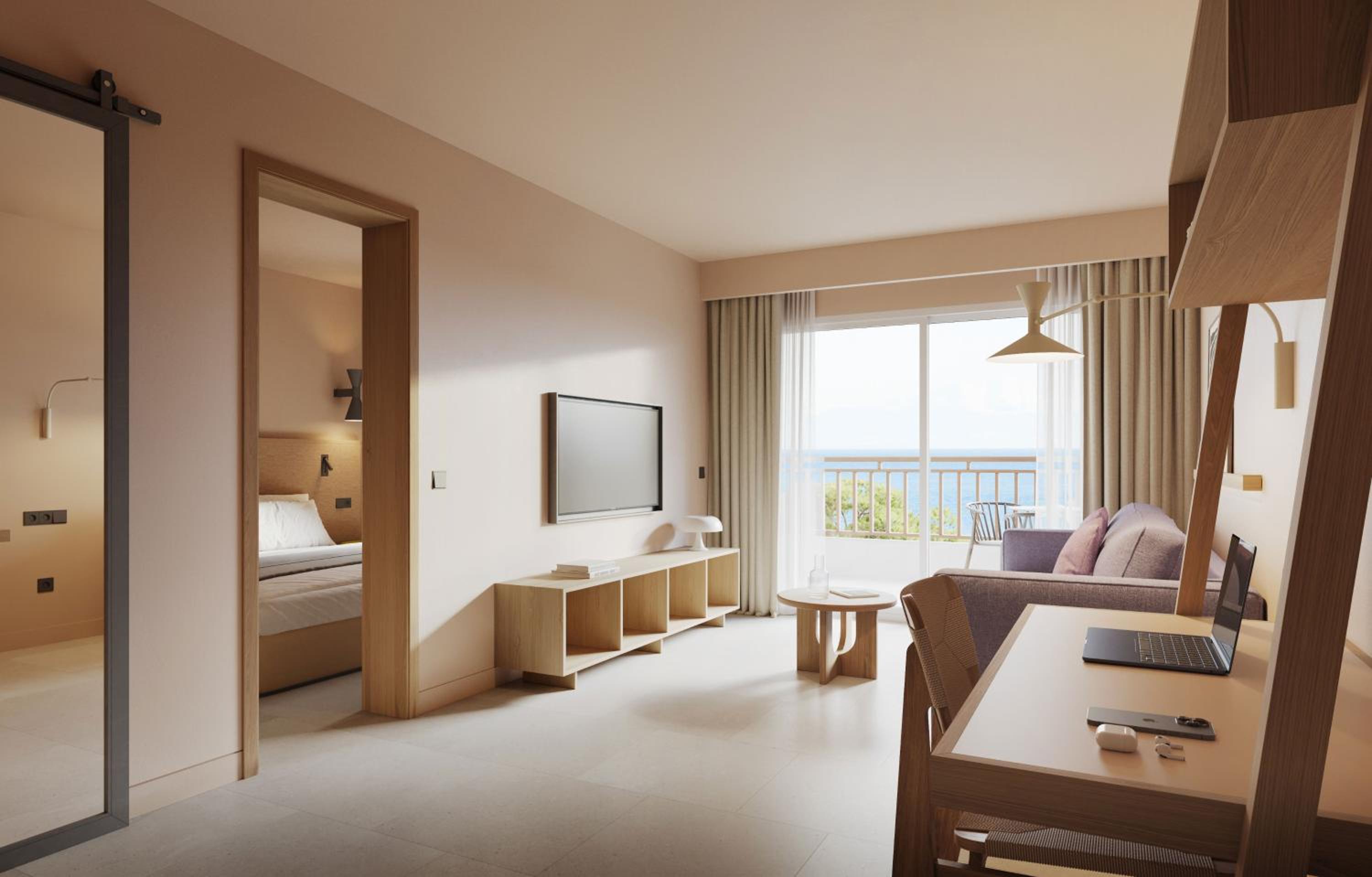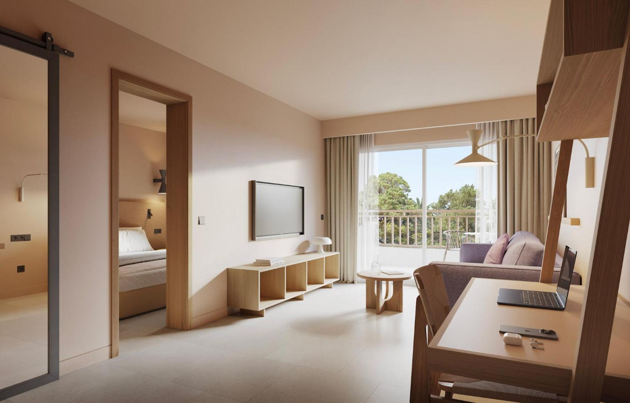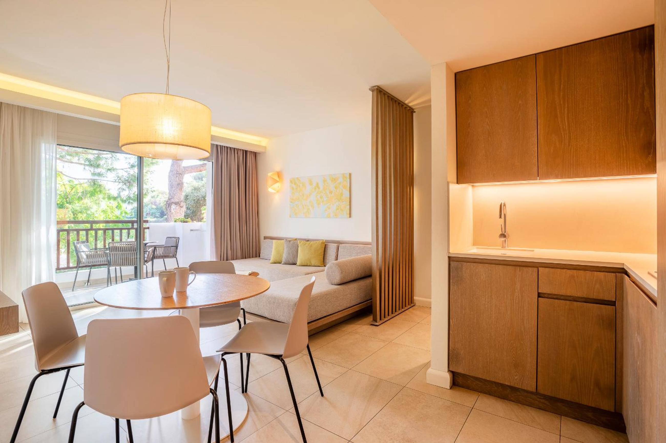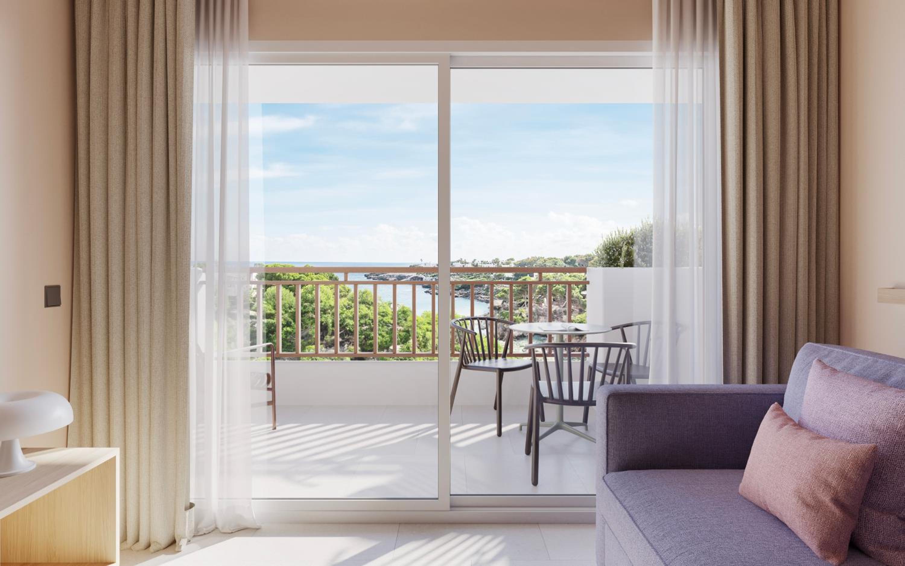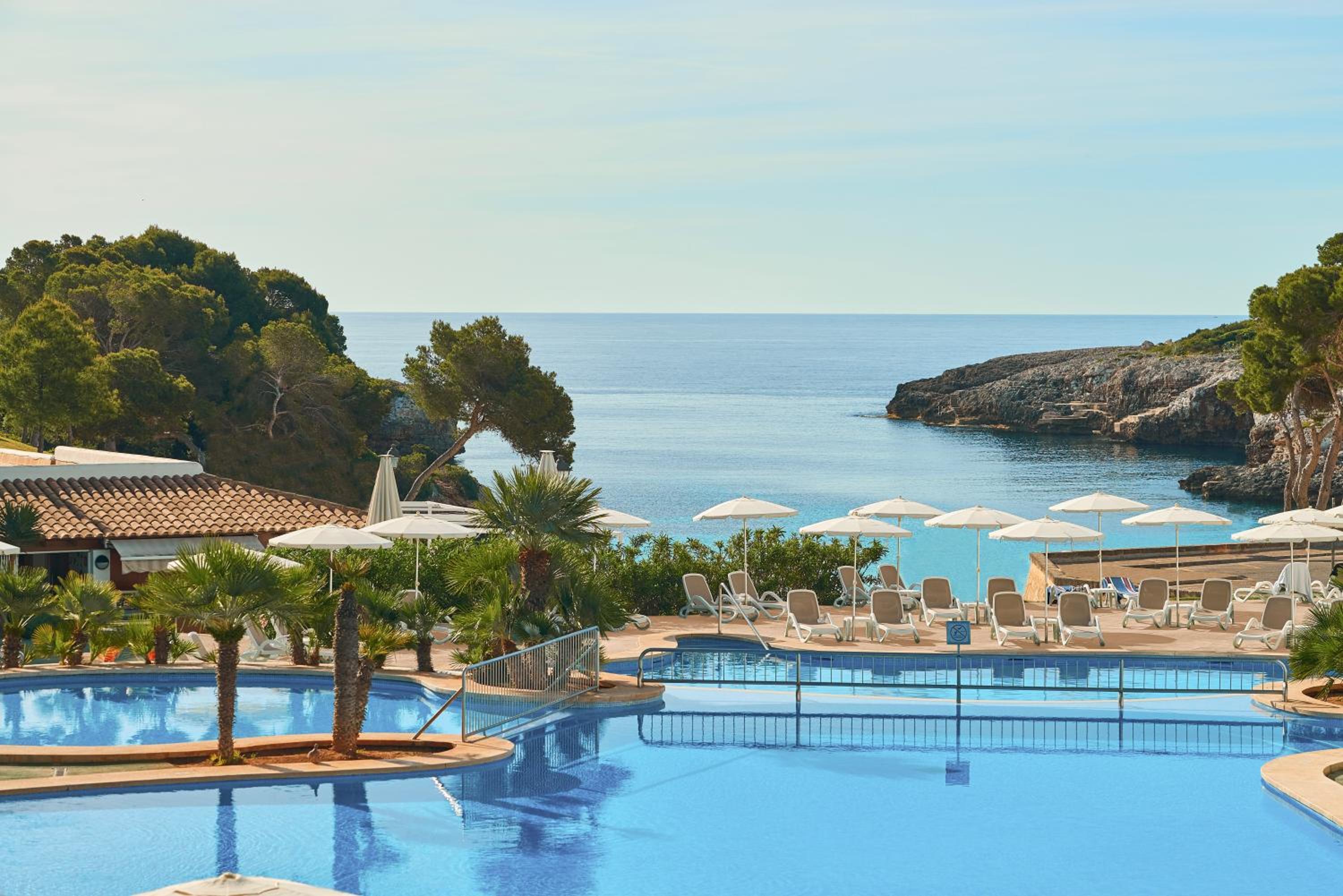 Located on the stunning Cala Esmeralda Beach, our aparthotel offers a picturesque setting with direct beach access and multiple outdoor pools. Enjoy the breathtaking views of the sea, pool, or garden from your private balcony.