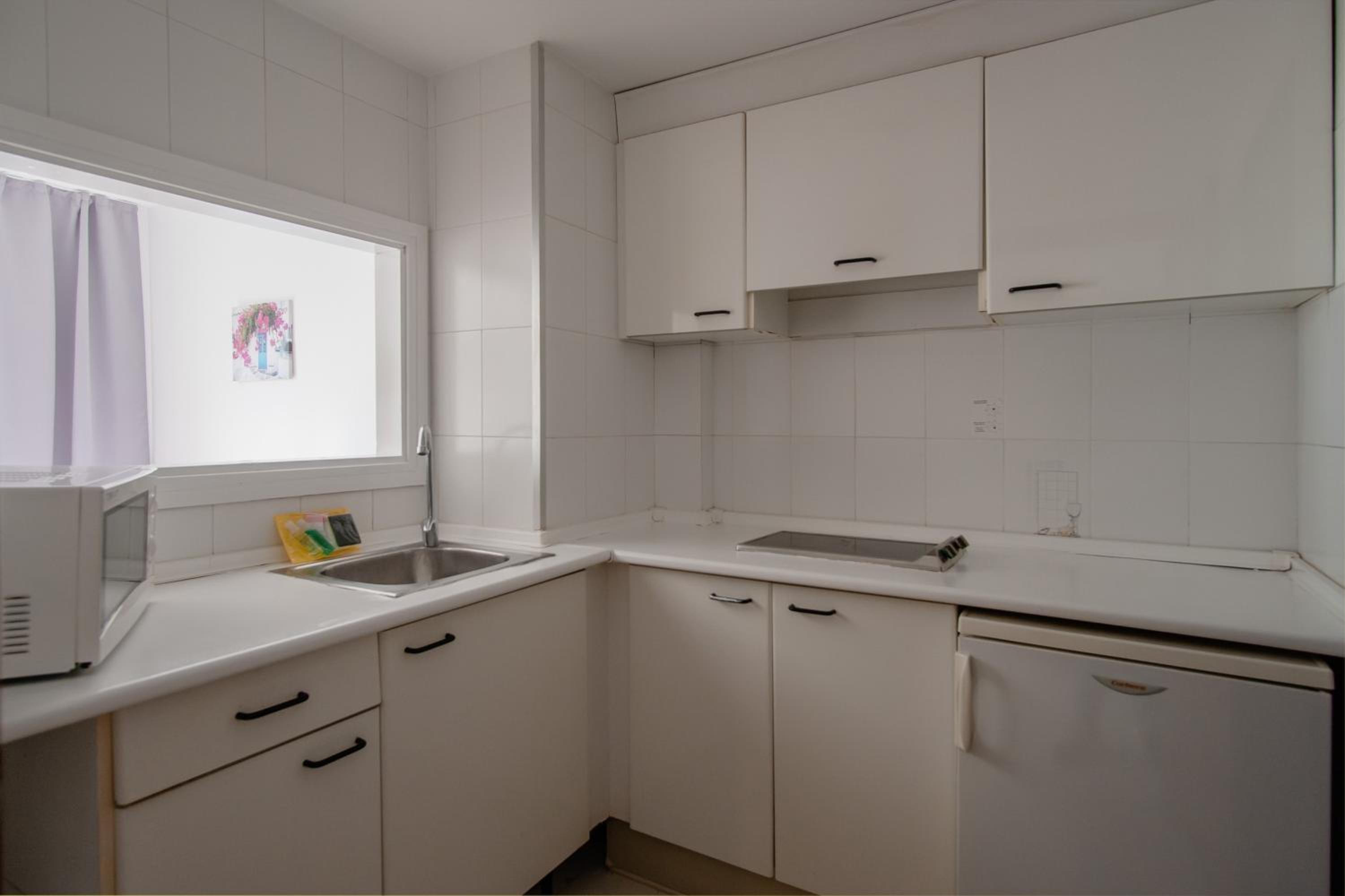 Hôtel de passe, vétuste, qui sent mauvais, petite chambre appartement de 20 m2 , très mal entretenu, aucuns aménagements, pas de vaisselle pour se faire un petit déj. Même pas de verre à dent et de savon dans la salle de bains. Vaut même pas un 1 étoile, piscine et transats sales, crasseux un vrai film d horreur!! Vaut même pas 30 eur la nuit alors que nous avons payé 100 eur la nuit et heureusement que nous avions réservé juste 1 nuit. Très bruyant avec pleins de jeunes qui boivent jusqu à 6h du matin sur leurs balcons. ÂMES SENSIBLES S ABSTENIR. Il faudrait tout casser et rénover et tout refaire du sol au plafond. Comment peut on passer des vacances ici!!!
