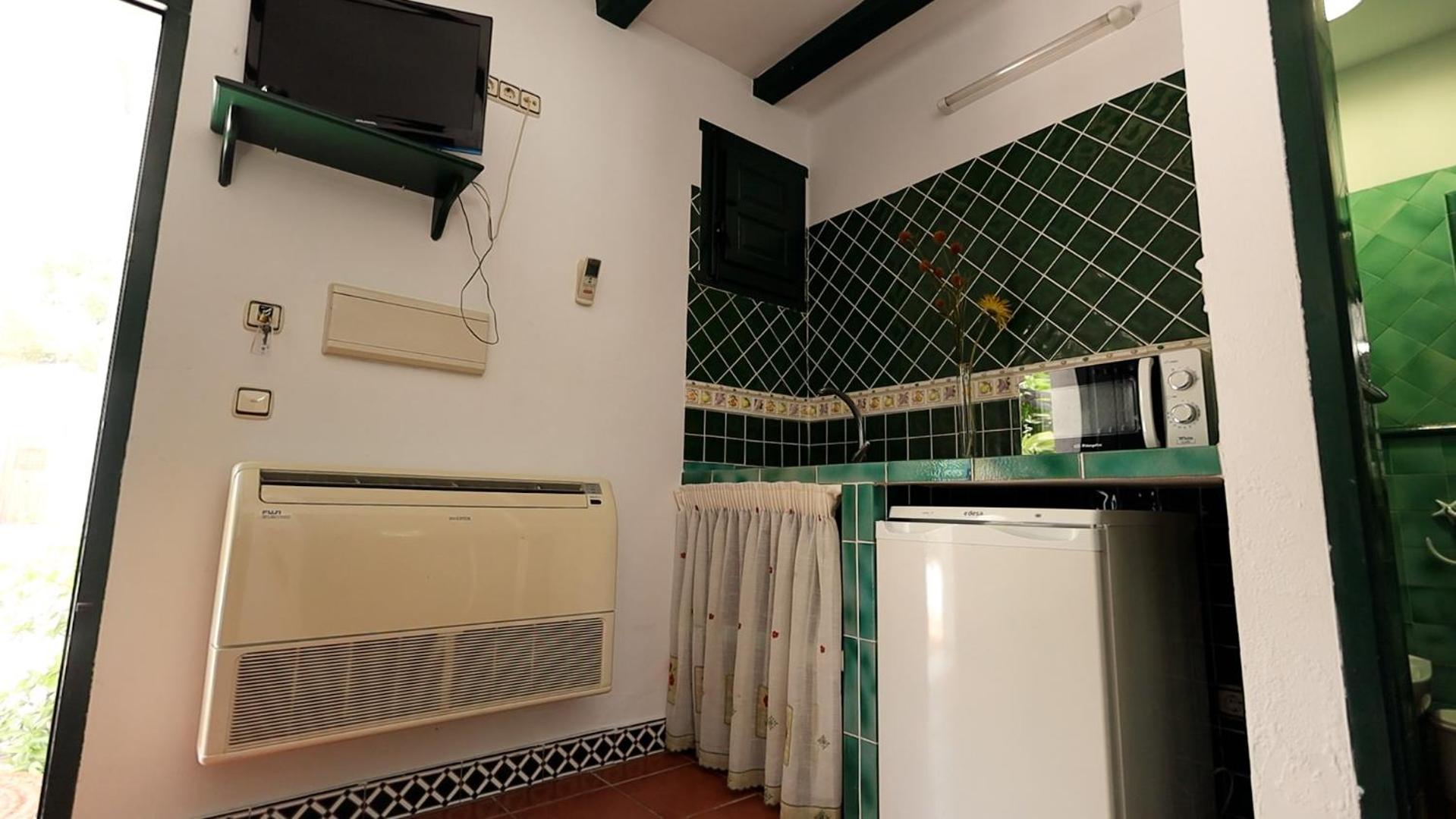 Alojamiento muy cerca de Monturque. Los alojamiento son pequeñas villas, en nuestro caso con 2 dormitorios. Tiene un microondas y nevera. Son un poco frias las habitaciones, pero con el aire acondicionado no debe de haber problema.