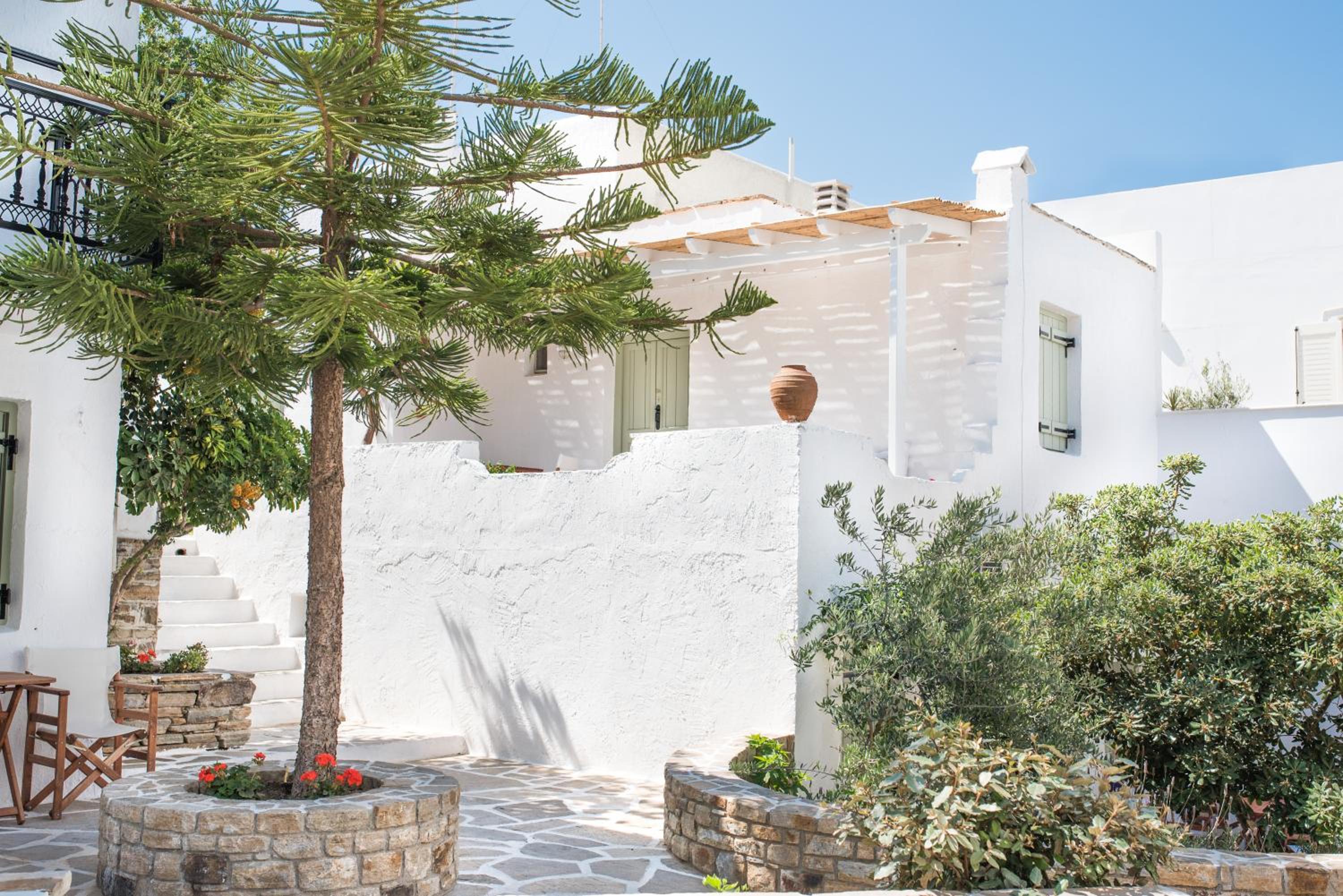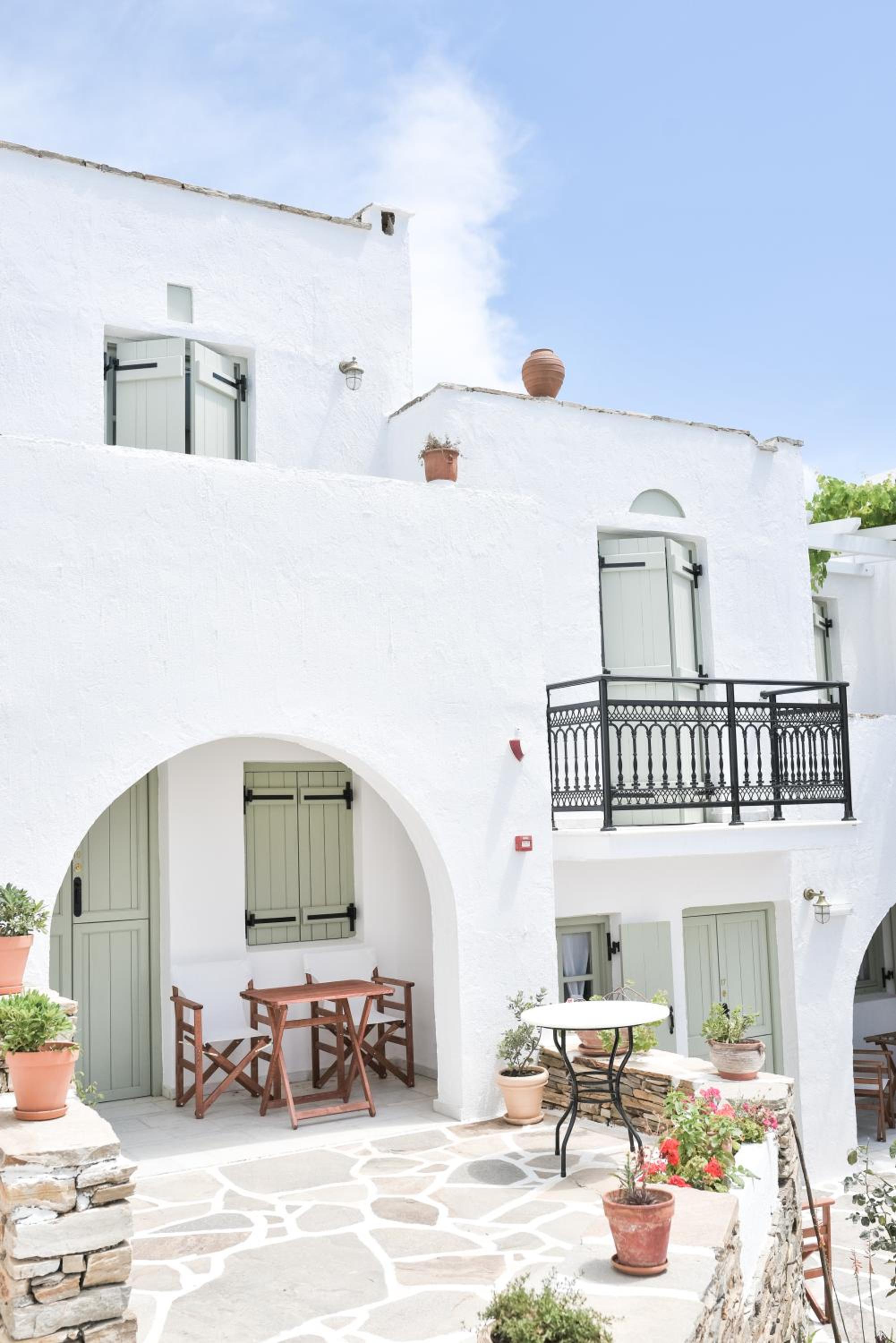 Nastasia Village boasts charming traditional Cycladic architecture, adorned with colorful flowers, green shrubs, and small trees. The picturesque setting creates a serene and inviting atmosphere for guests to relax and unwind.