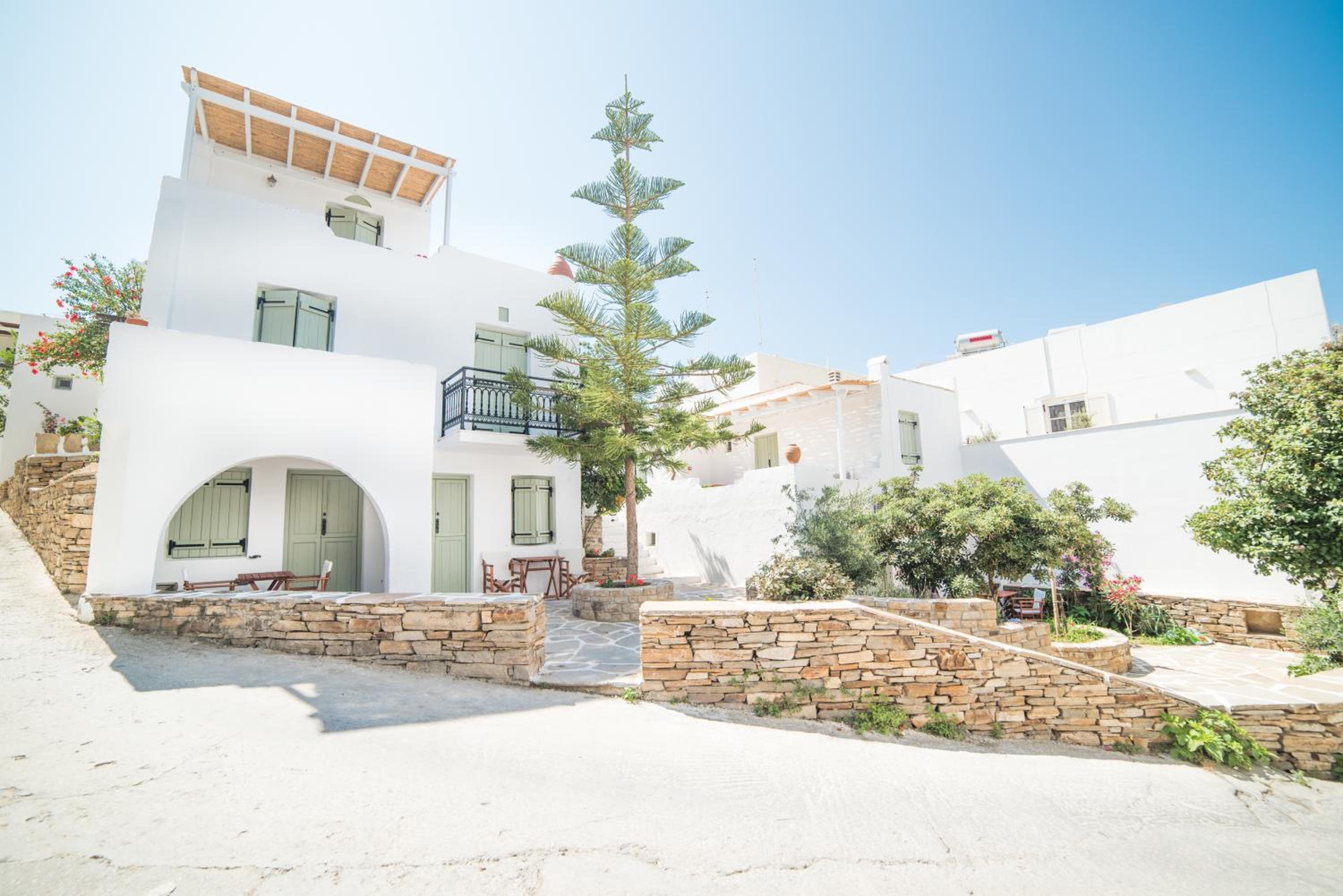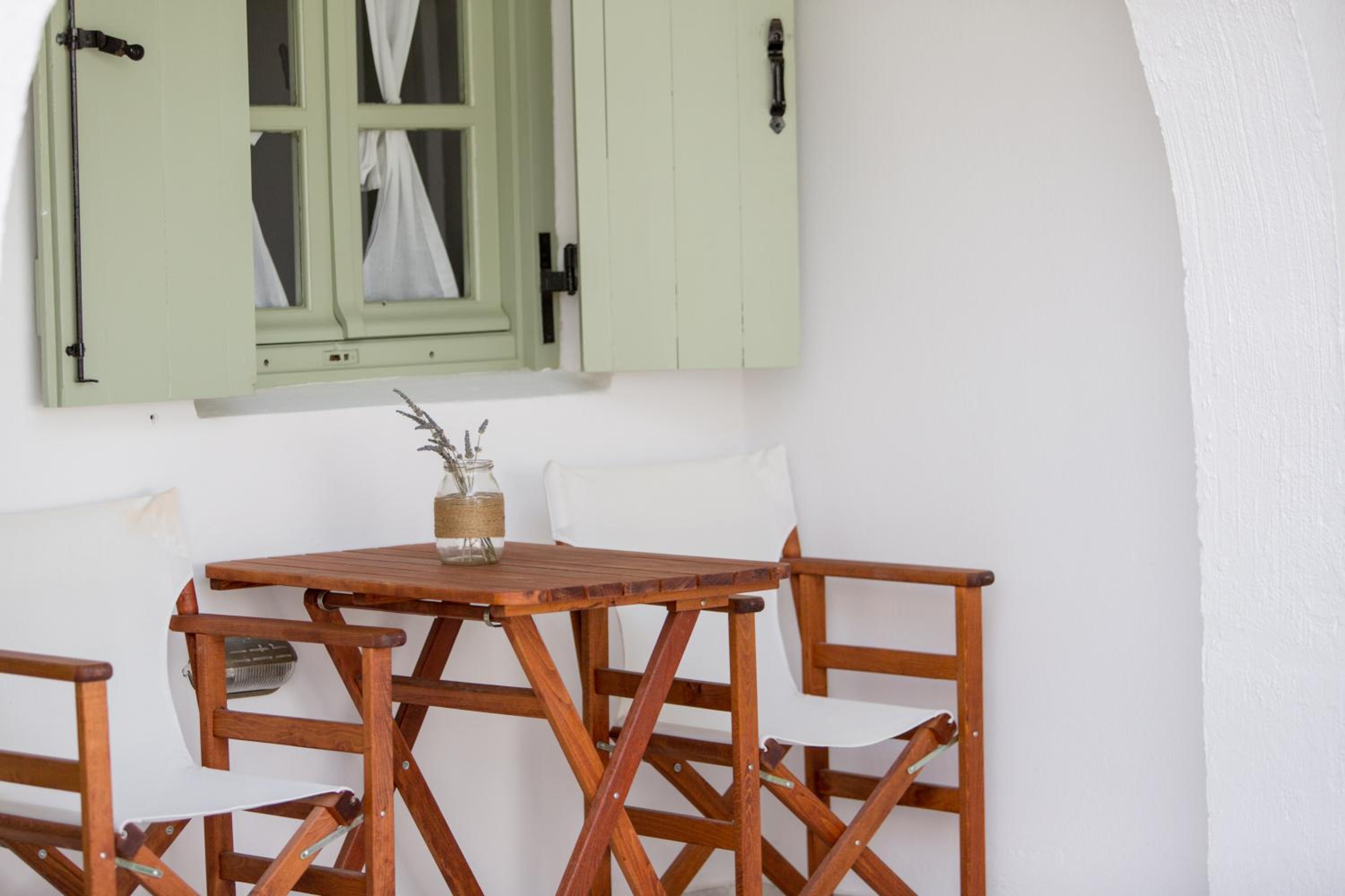 Close to restaurants and central Chora. Quiet area. Nice clean room. Very friendly and helpful staff.