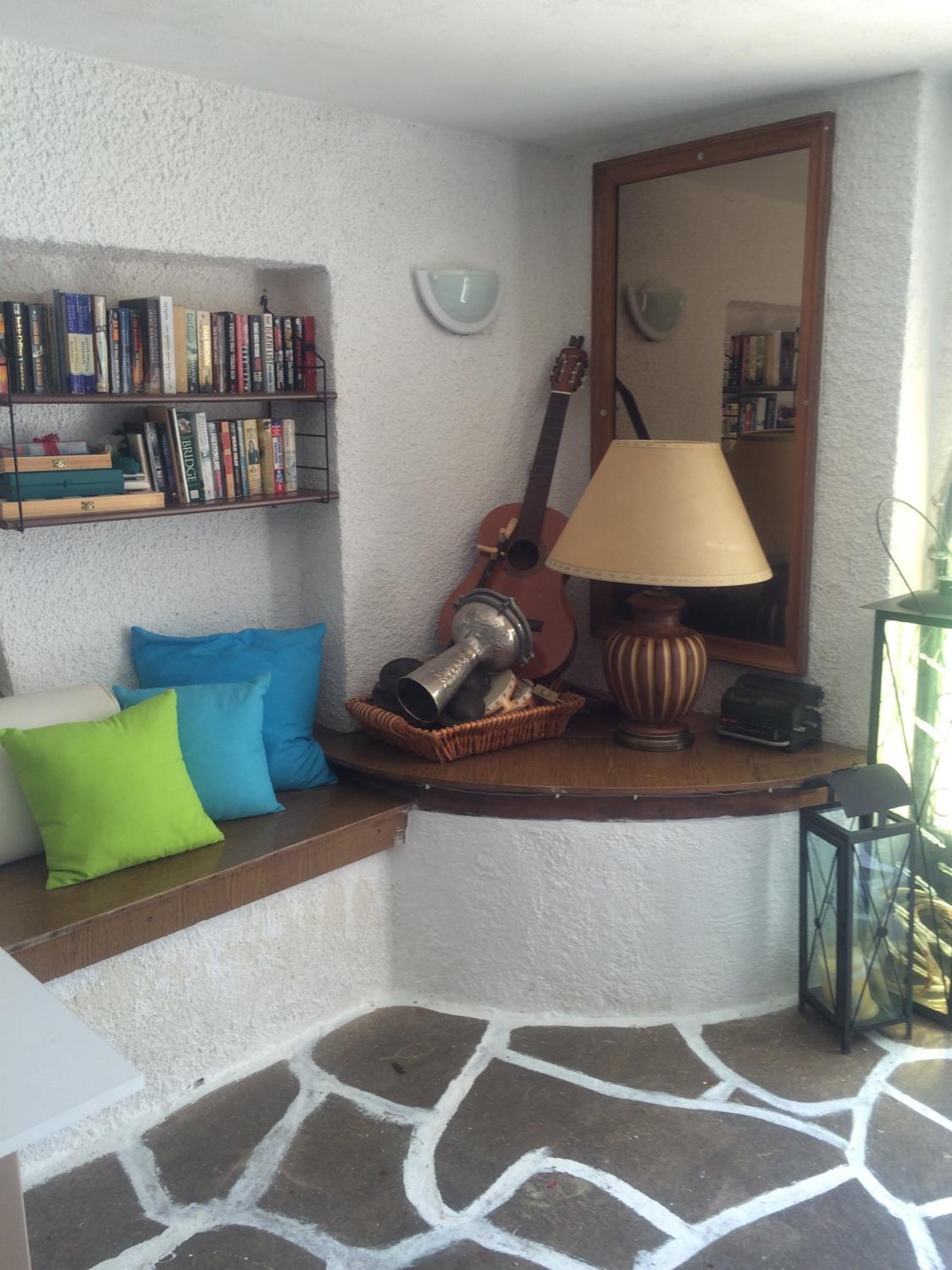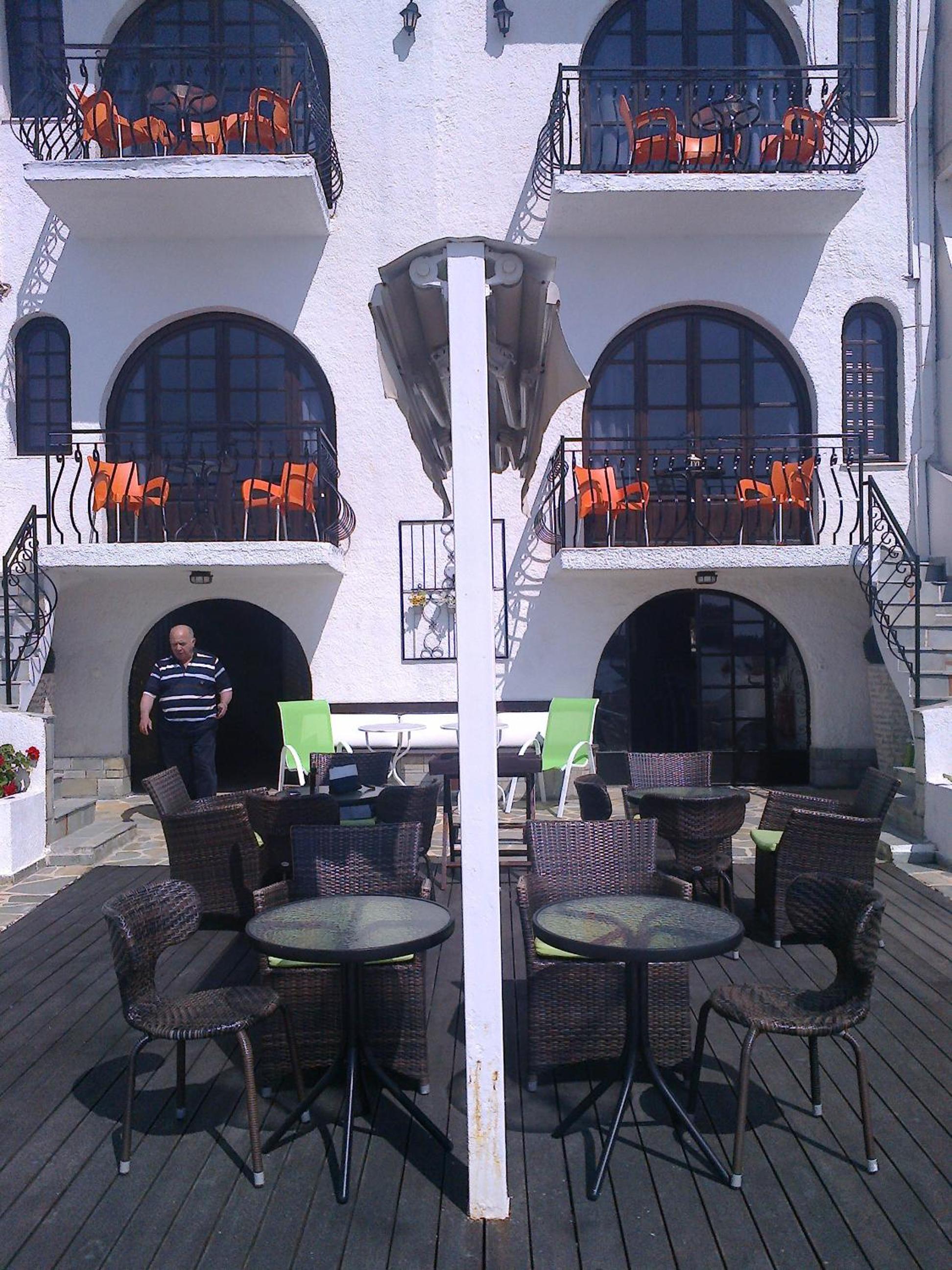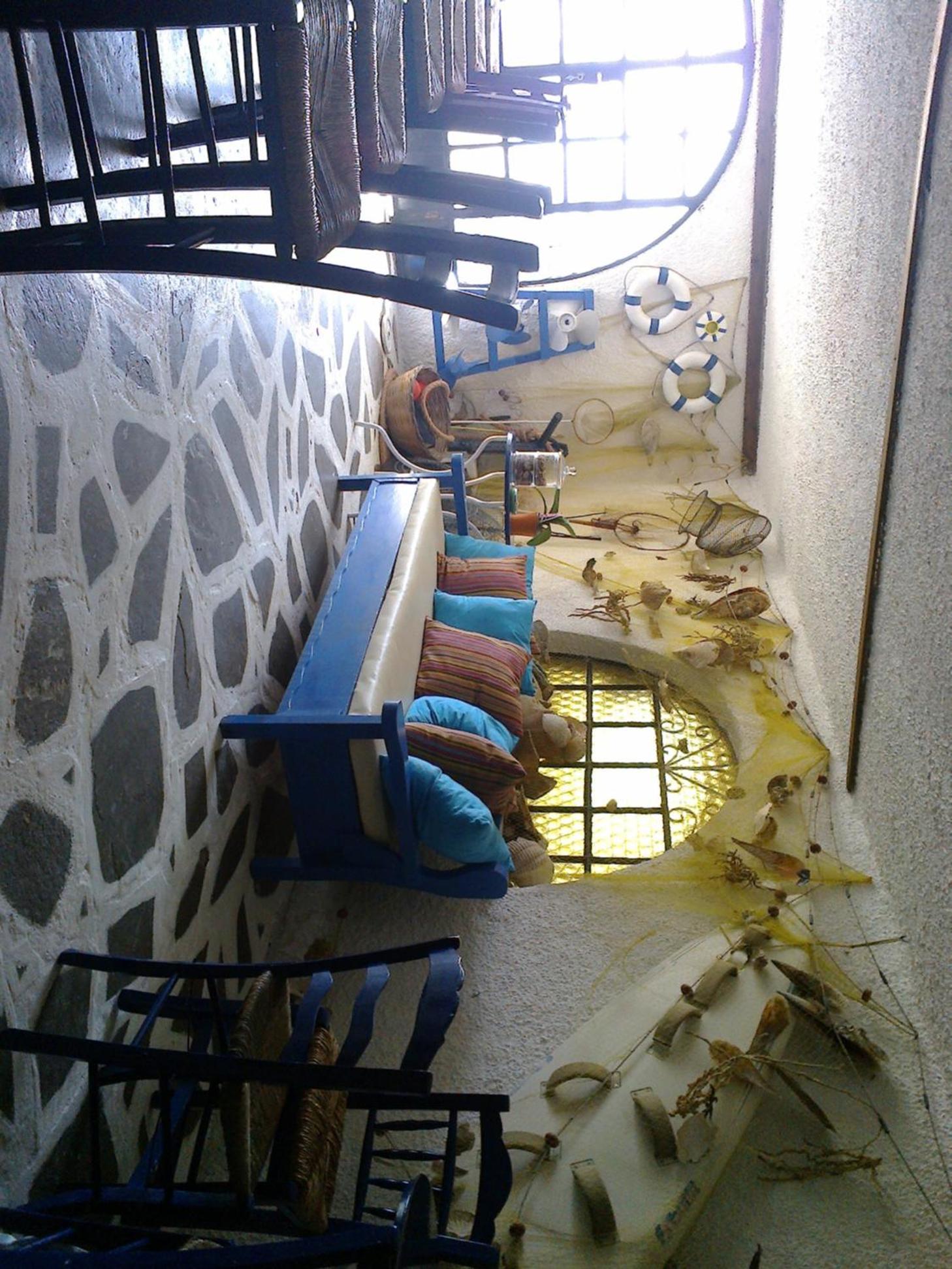 Nära till restauranger, mataffär, bad. Terassen med direktkontakt med havet. Möjlighet att låna badleksaker. Mysig inredning både i allmänna utrymmen som i rummet vi hade. Vi bodde i en studio utan havsutsikt men åt ibland både frukost och andra måltider på terassen.