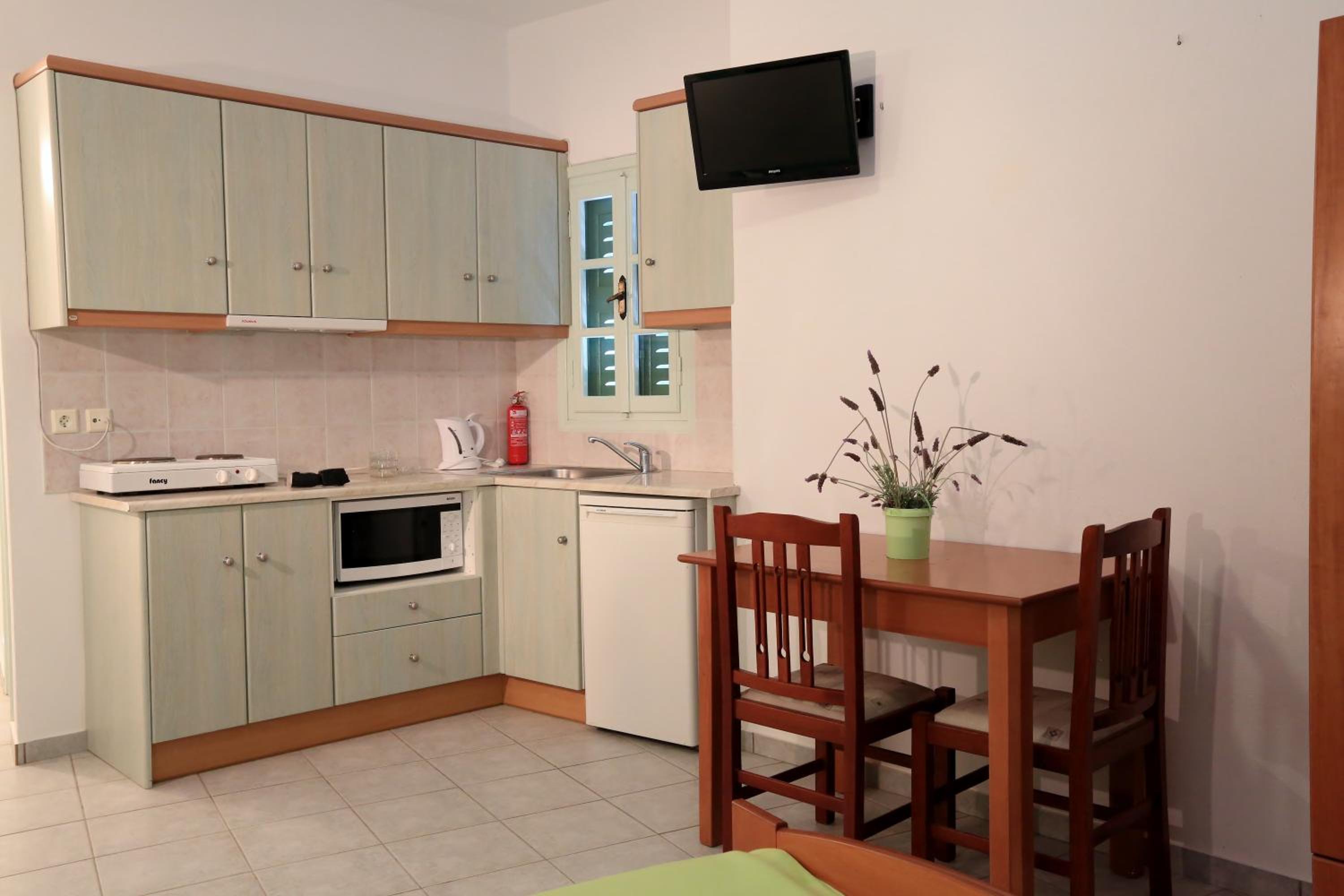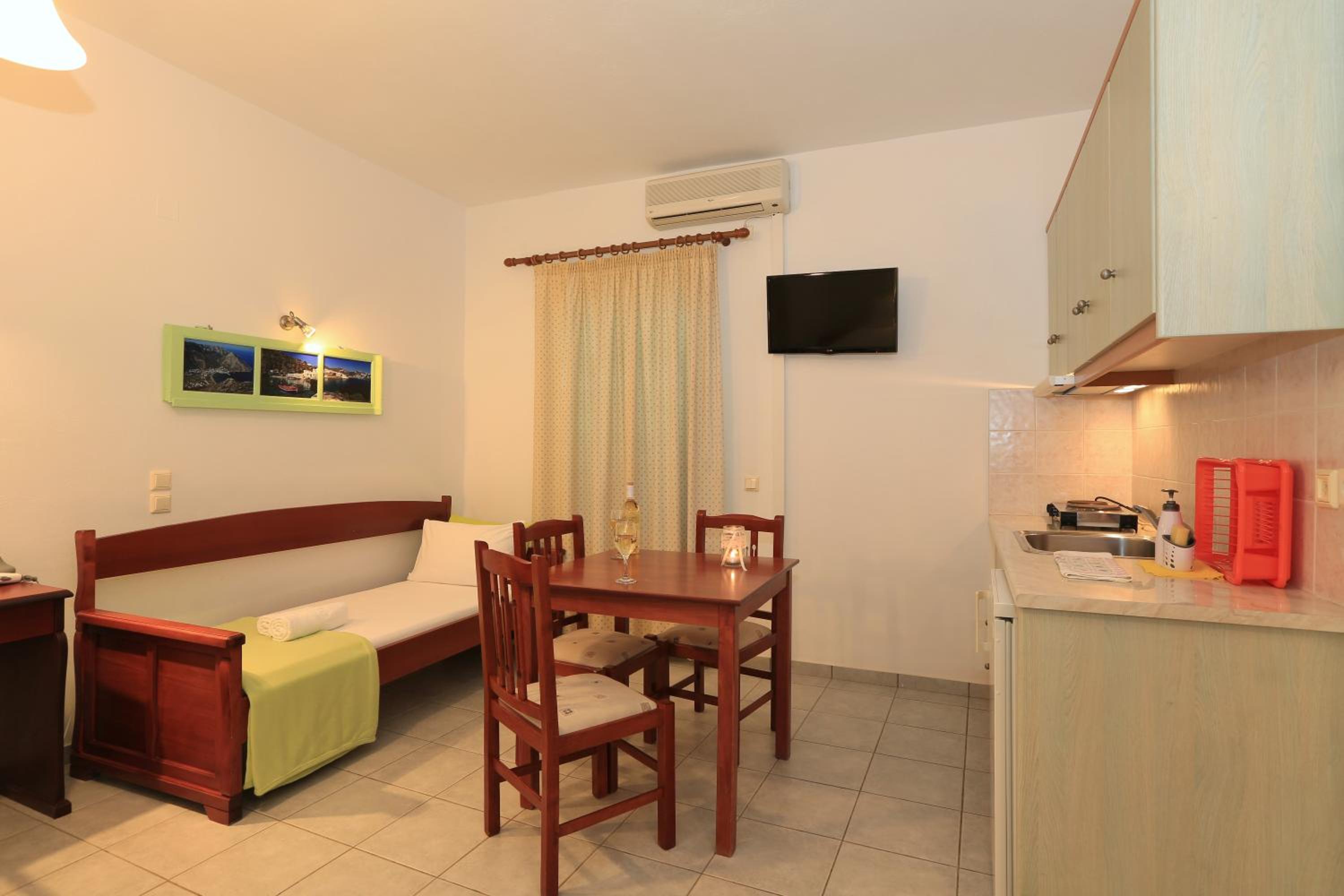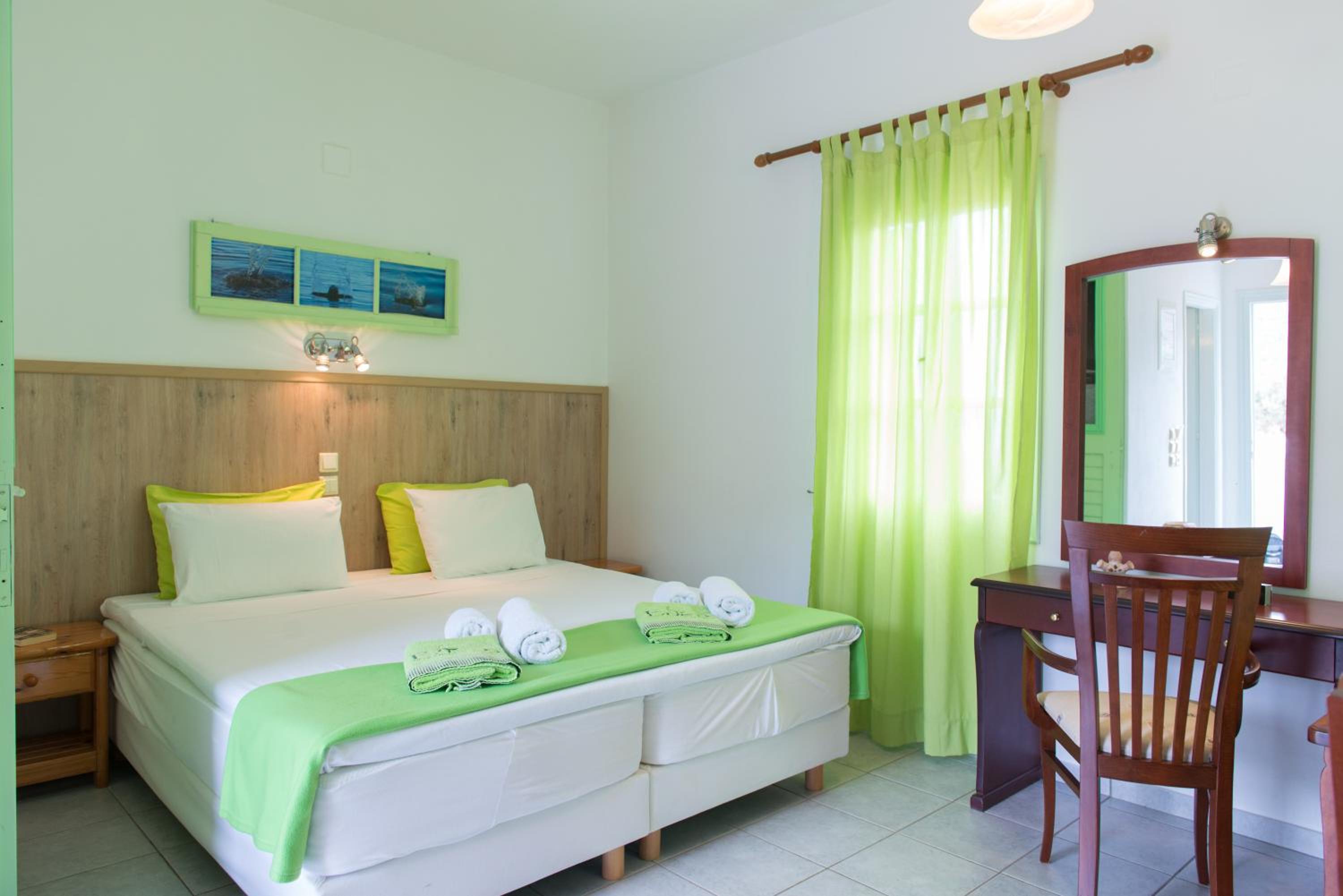Spectacular Views: Enjoy garden or sea views from your furnished balcony in our air-conditioned rooms, studios, or apartments.