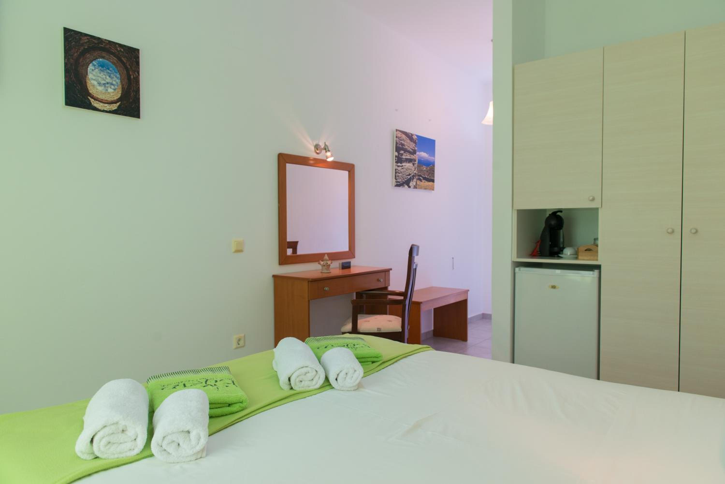 La gentillesse des hôtes, le fabuleux petit déjeuner, le confort du lit et l'espace de la chambre / terrasse. Tout simplement notre meilleur logement en Grèce !