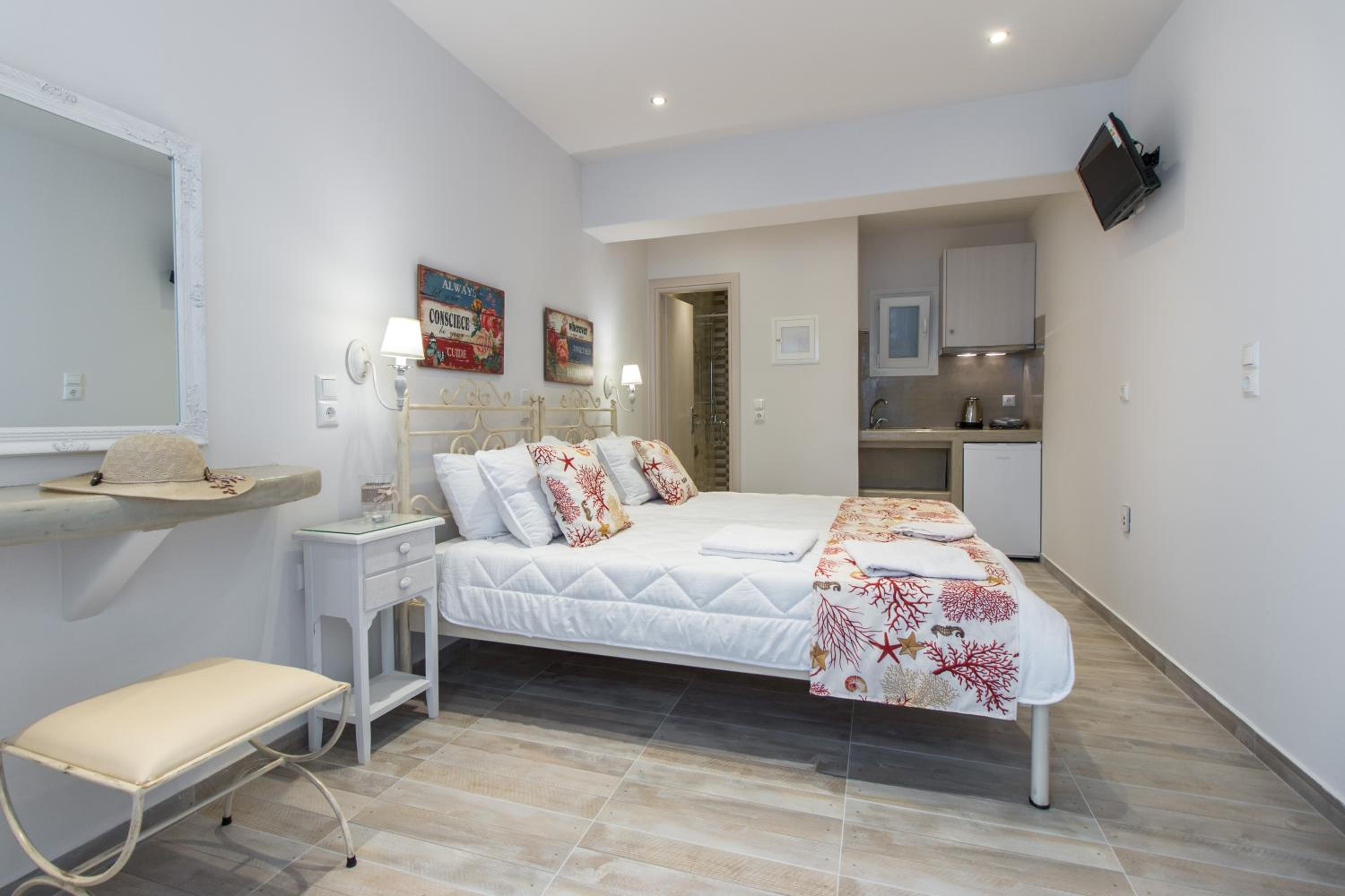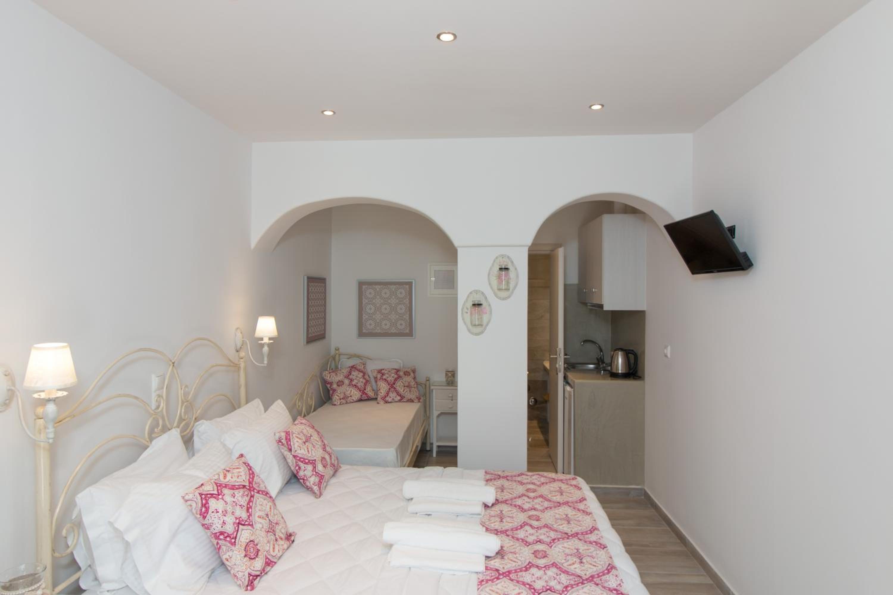 Beautiful and clean rooms also very beautifully decorated, quiet location and just a 10-minute walk from the port. There is also a market nearby and a bus stop that takes you on a tour around the island. Nikos is very kind, friendly and ready to help you. Highly recommended!