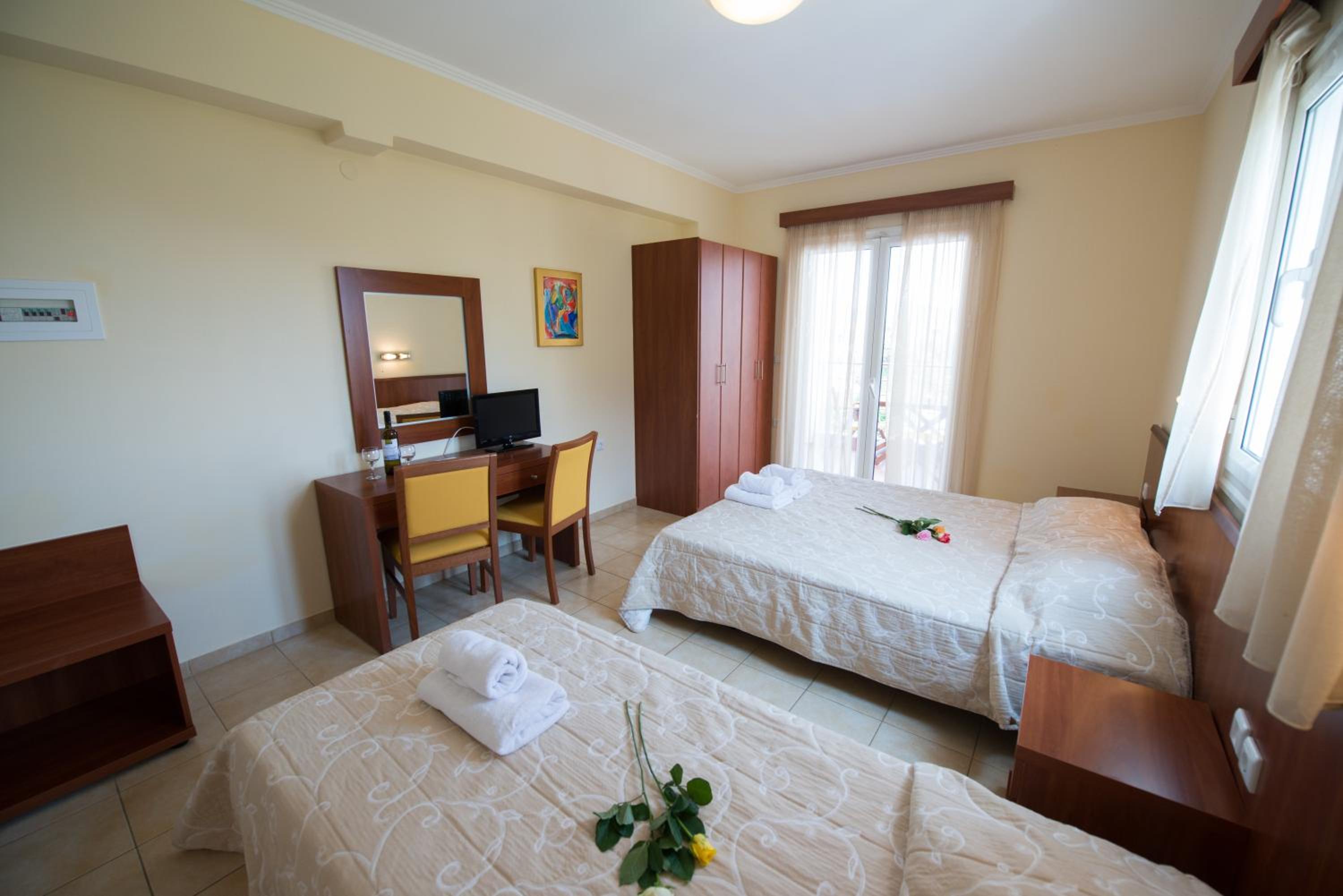 Summertime Inn, a newly built complex, offers modern and clean accommodation just steps away from the beach and the center of Nikiana. Each room and studio comes with private balconies, air conditioning, fridge, and satellite TV, ensuring a comfortable stay.
