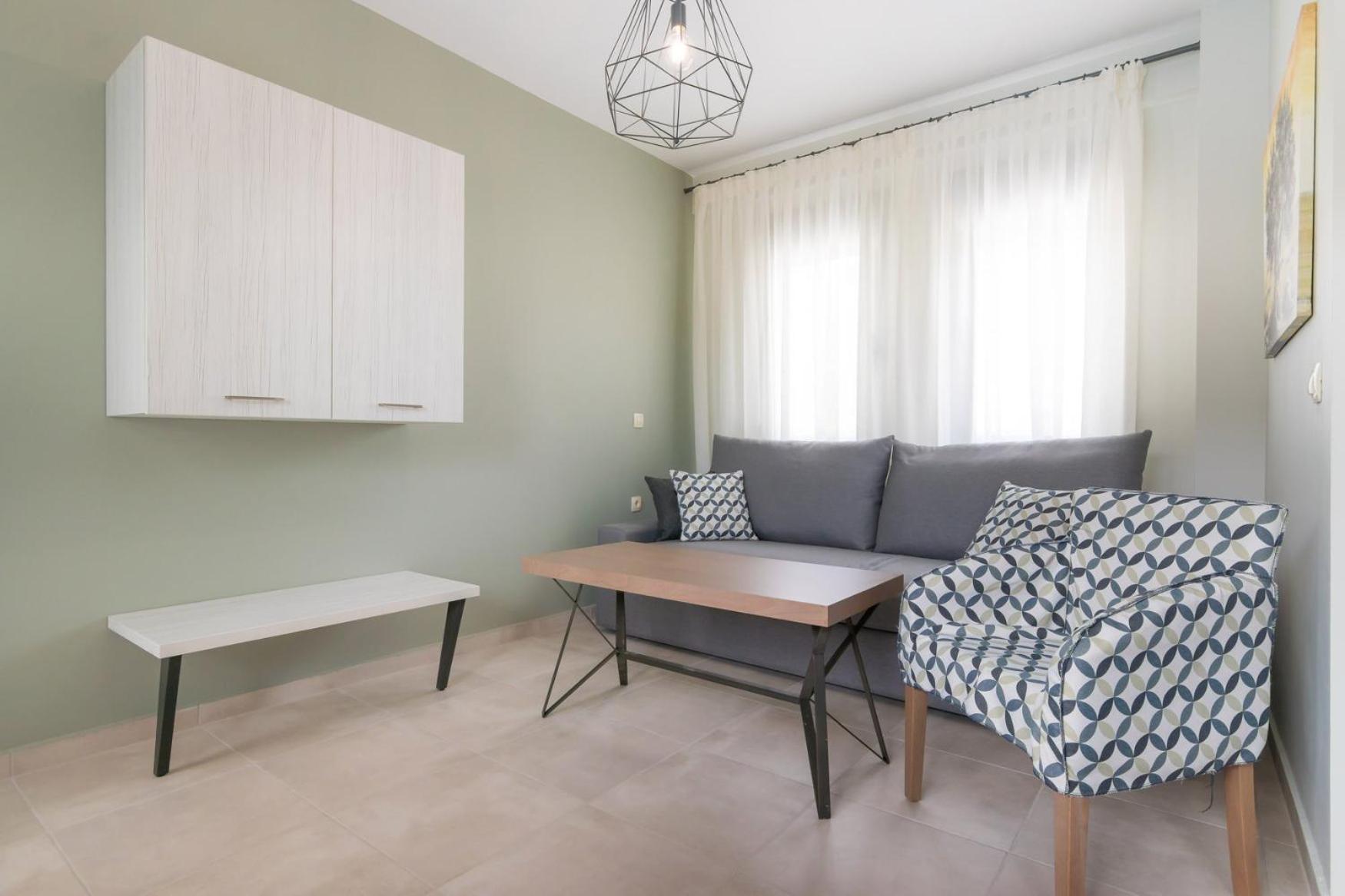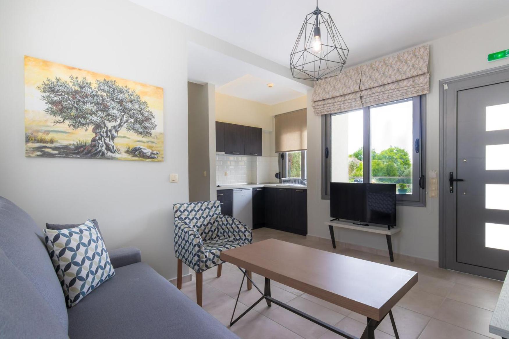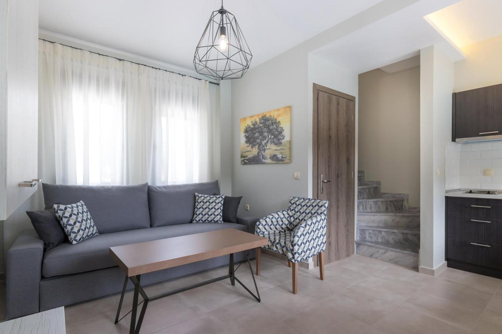 The hospitality of all the staff: the manager, the reception staff (especia that cute girl), the cleanig staff, all of them.The location with all the comforts (large apartment, large balcony and the pool).The owner's availability to help you and to give information. And last but not the least, the daily cleaning, the daily changing of towels, both, beach and personal. Litle things like wellcome's gifts (coffee or drinks, a wine botle in the room) or othes like such as those on departures (coffee and water). Next year,if it will be Grece, i would definitely choos them if they are available.