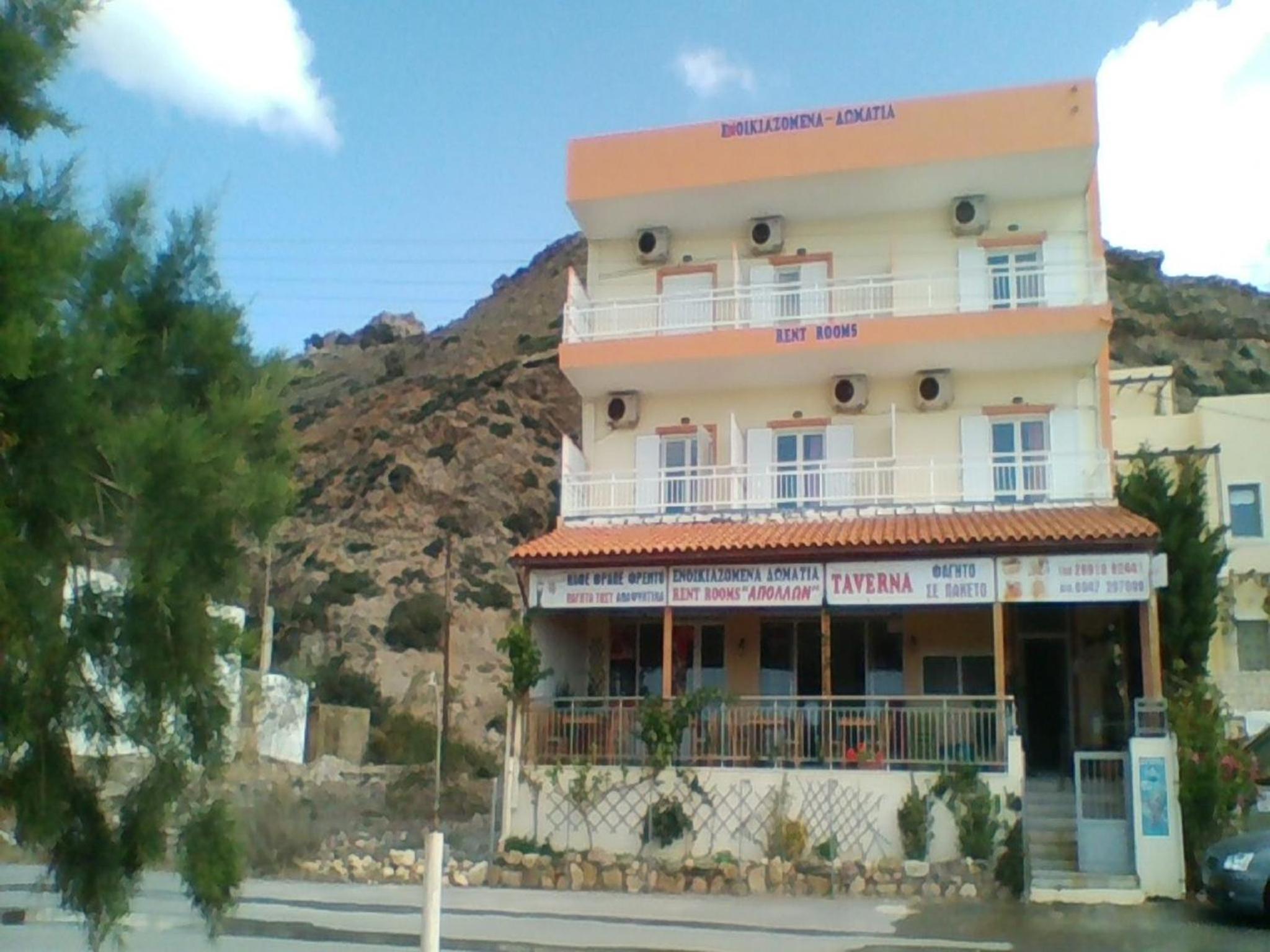 Apollon is an old style “rooms to let” type of place. So the furnishings look a bit dated but everything is in good shape and kept spotlessly clean. The mini kitchen was fully equipped. The rooms are large and have nice balconies. The couple that run it are very friendly and helpful and made me feel at home. The wifi was also surprisingly good :)