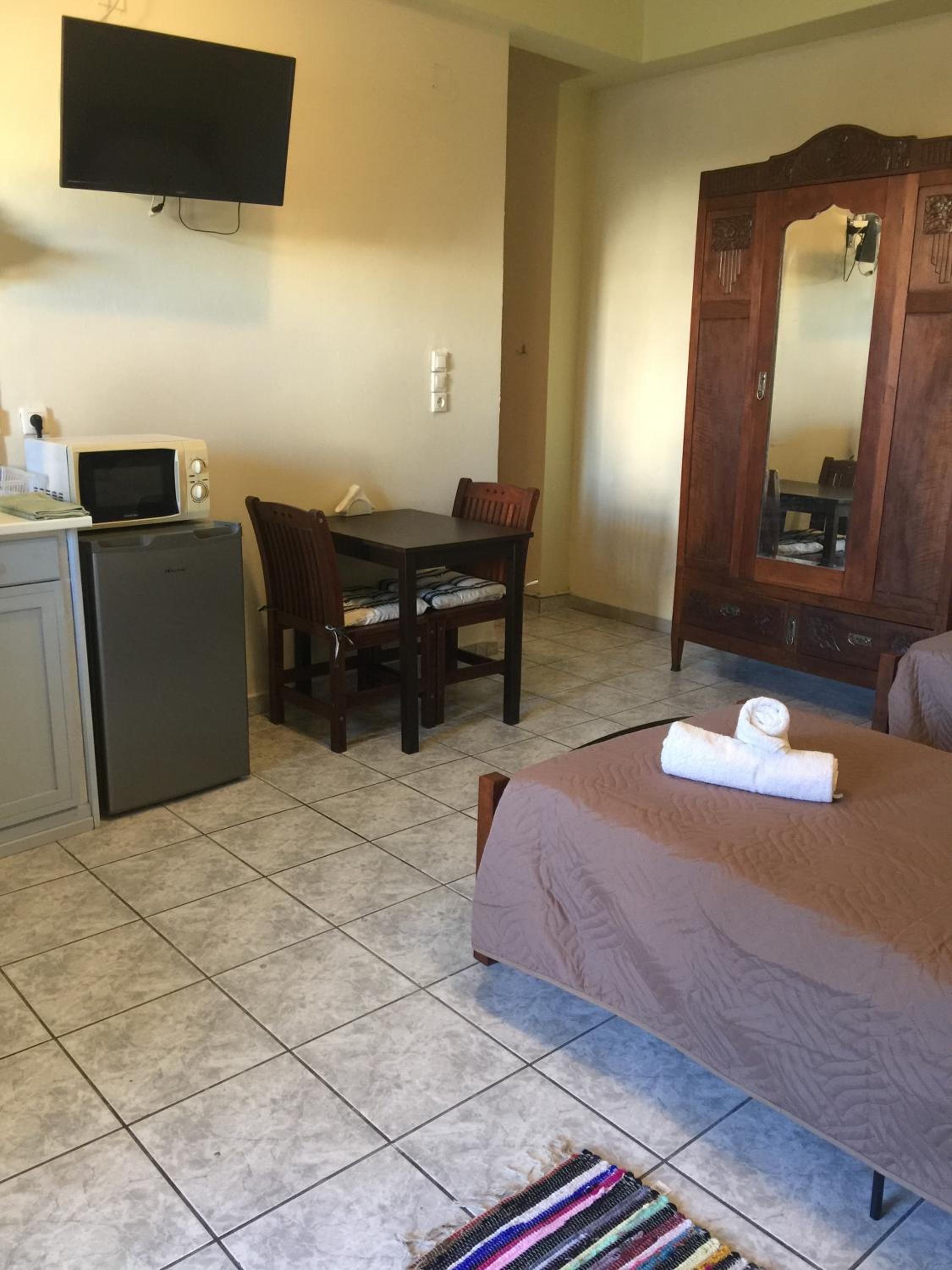Μείναμε στο δωμάτιο που είναι στο ισόγειο, ακριβώς μπροστά στο δρόμο. Μία πολύ τίμια επιλογή για τα χρήματα που δώσαμε. Το δωμάτιο είναι άνετο και έχει πολύ μεγάλο λουτρό.