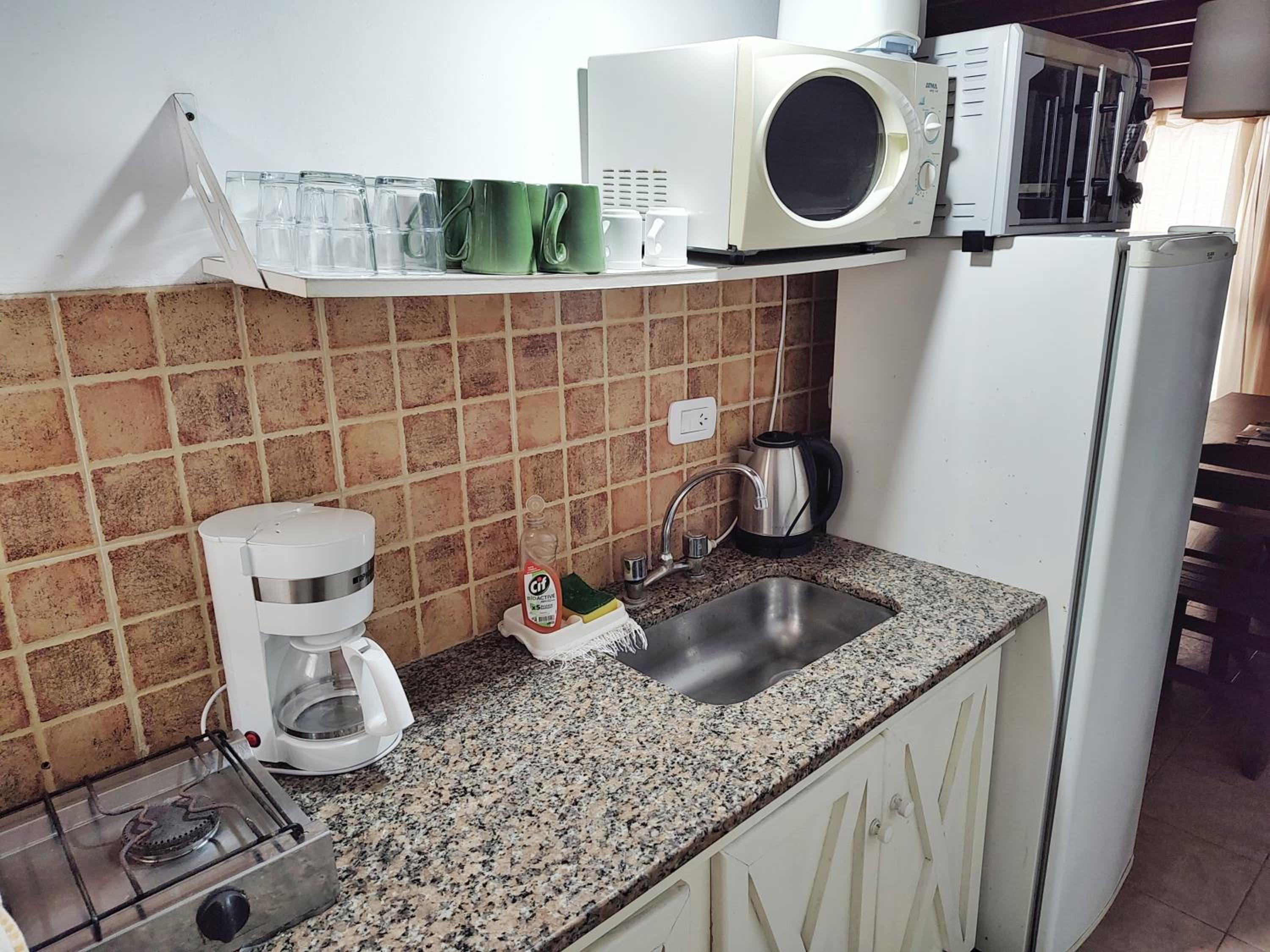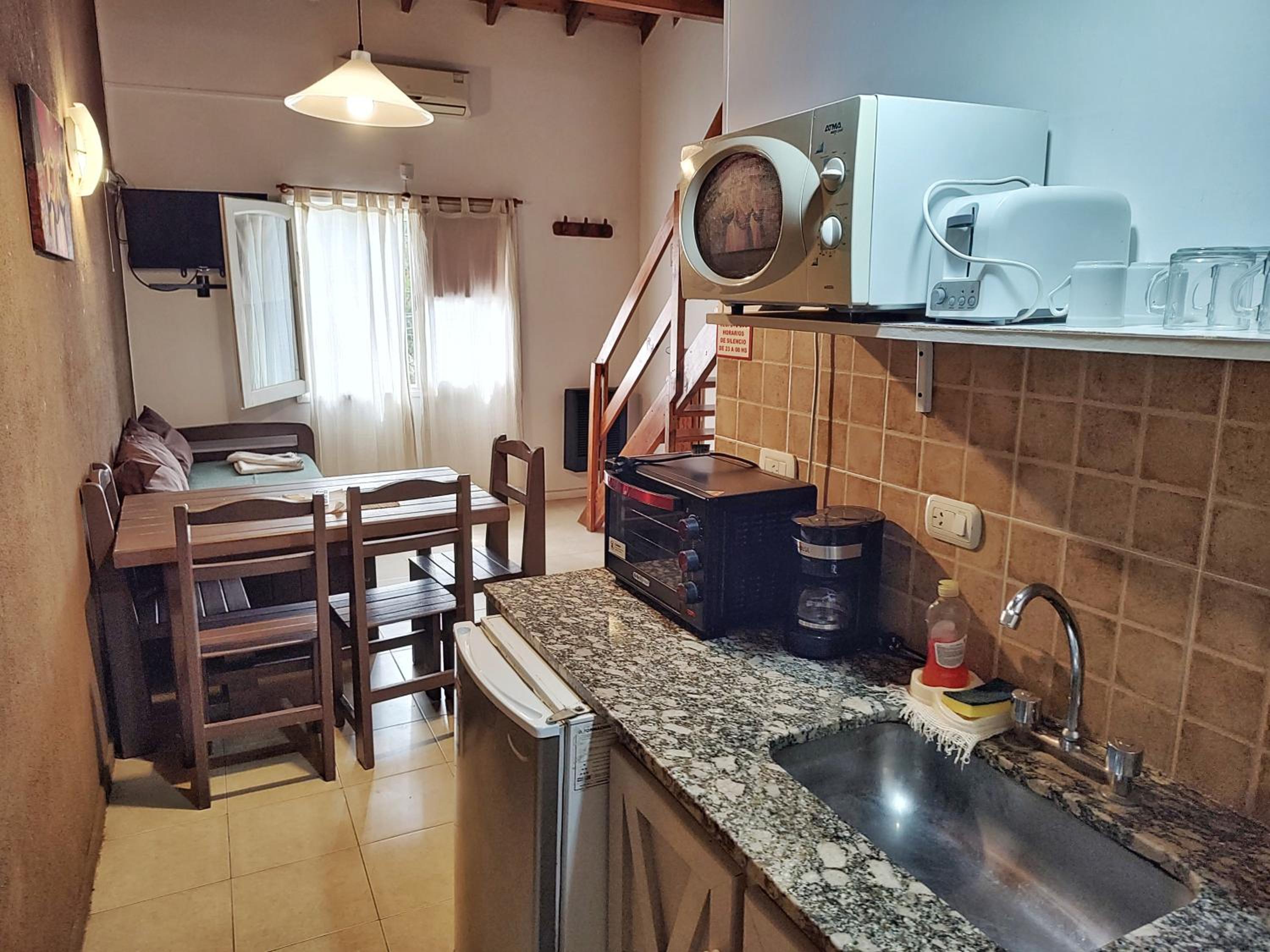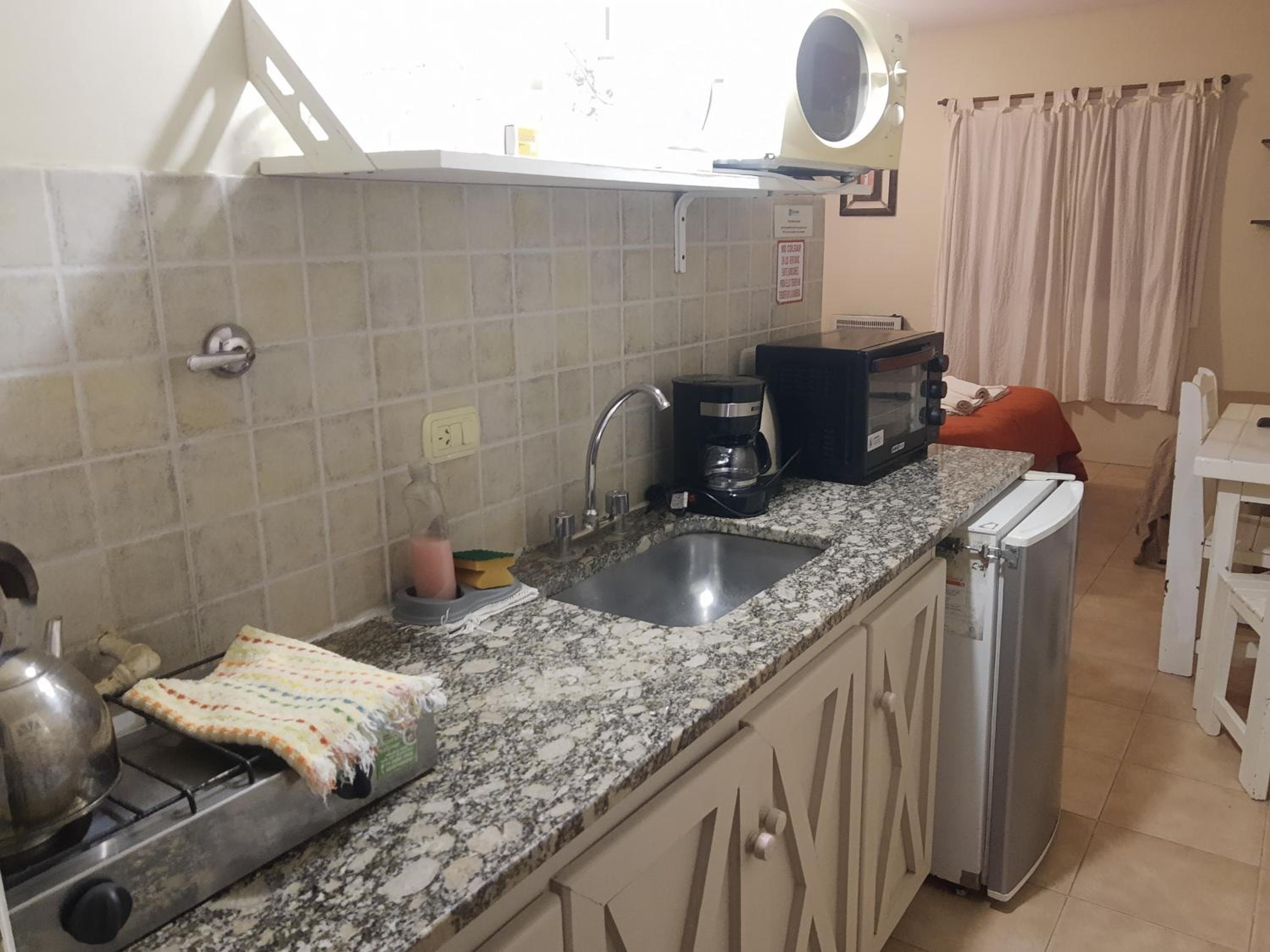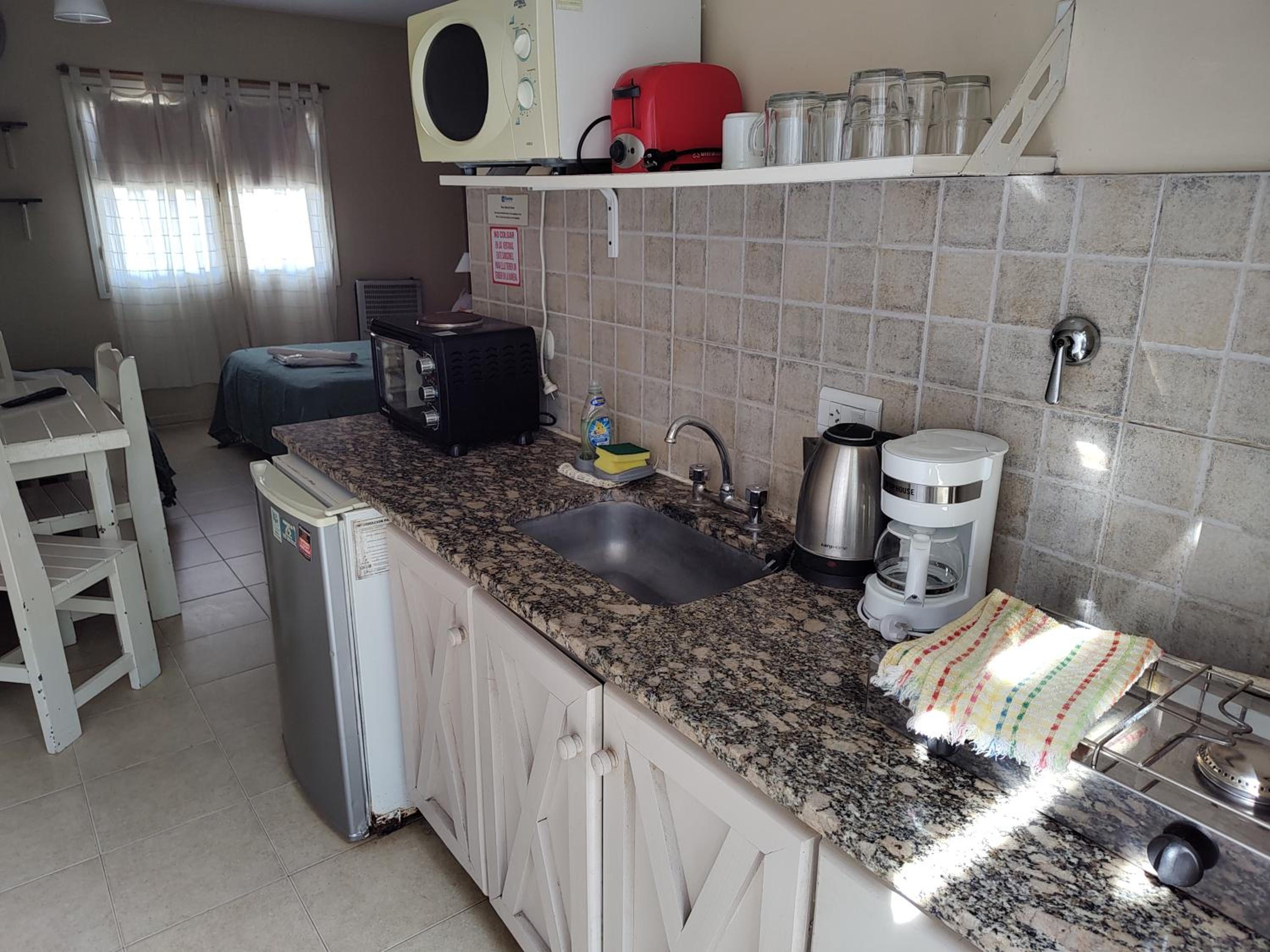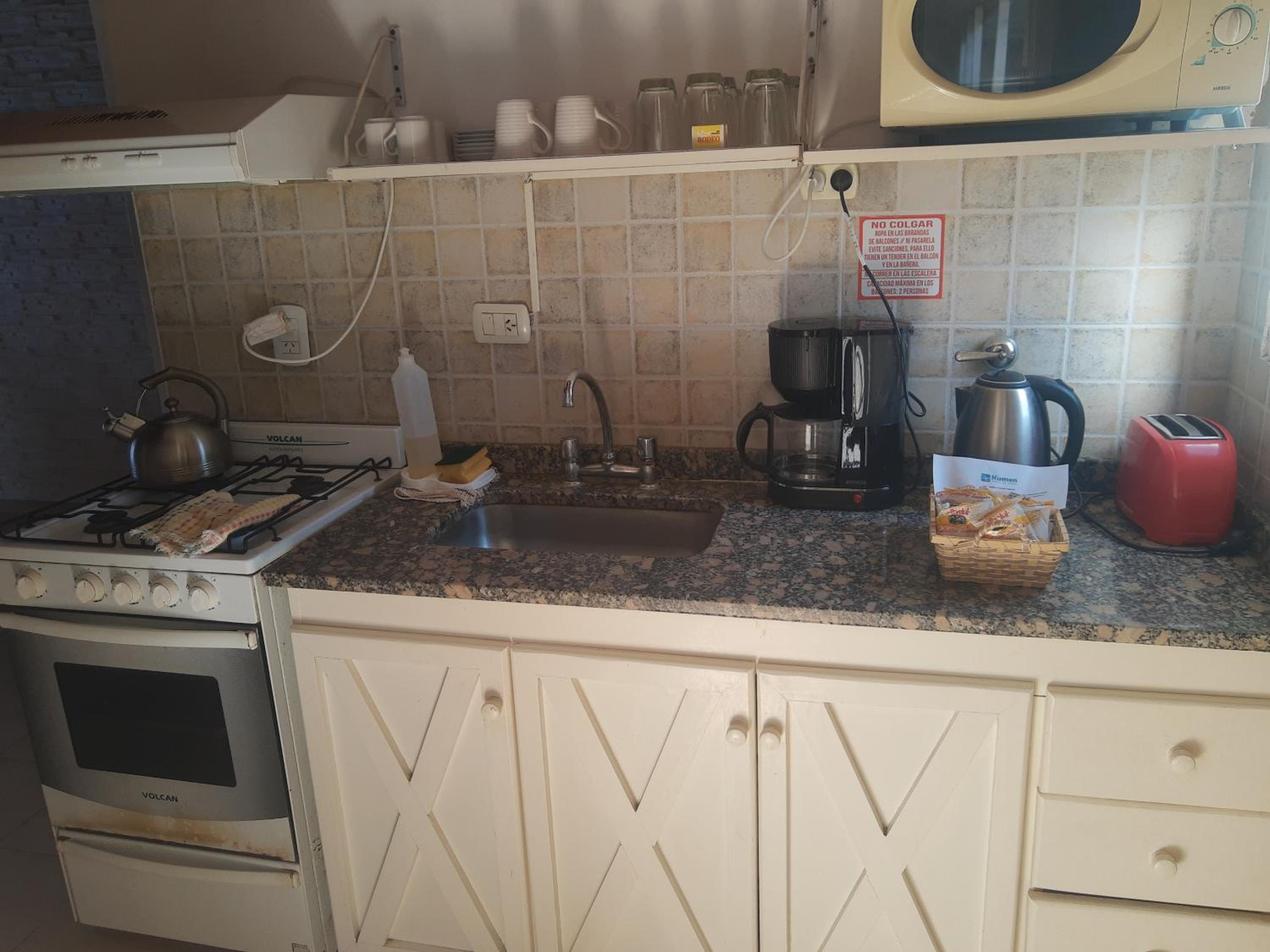 Para sumar desde mí punto de vista habría que mejorar la cocina, es muy básico, limitado lo que tiene en cuanto a lo que es utensilios, vajillas y demás. Lo que limita bastante las opciones para cocinar. Por otro lado algunos platos , ollas , cubiertos estaban mal lavados, parece que no se controla bien eso.