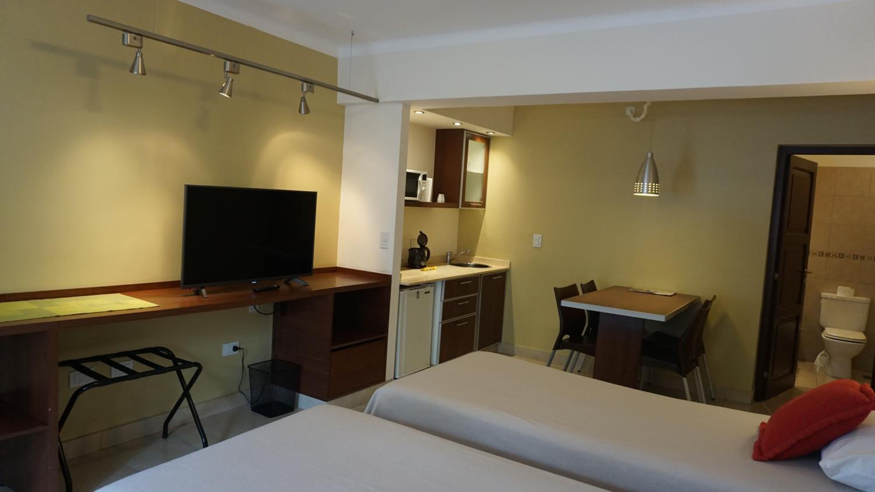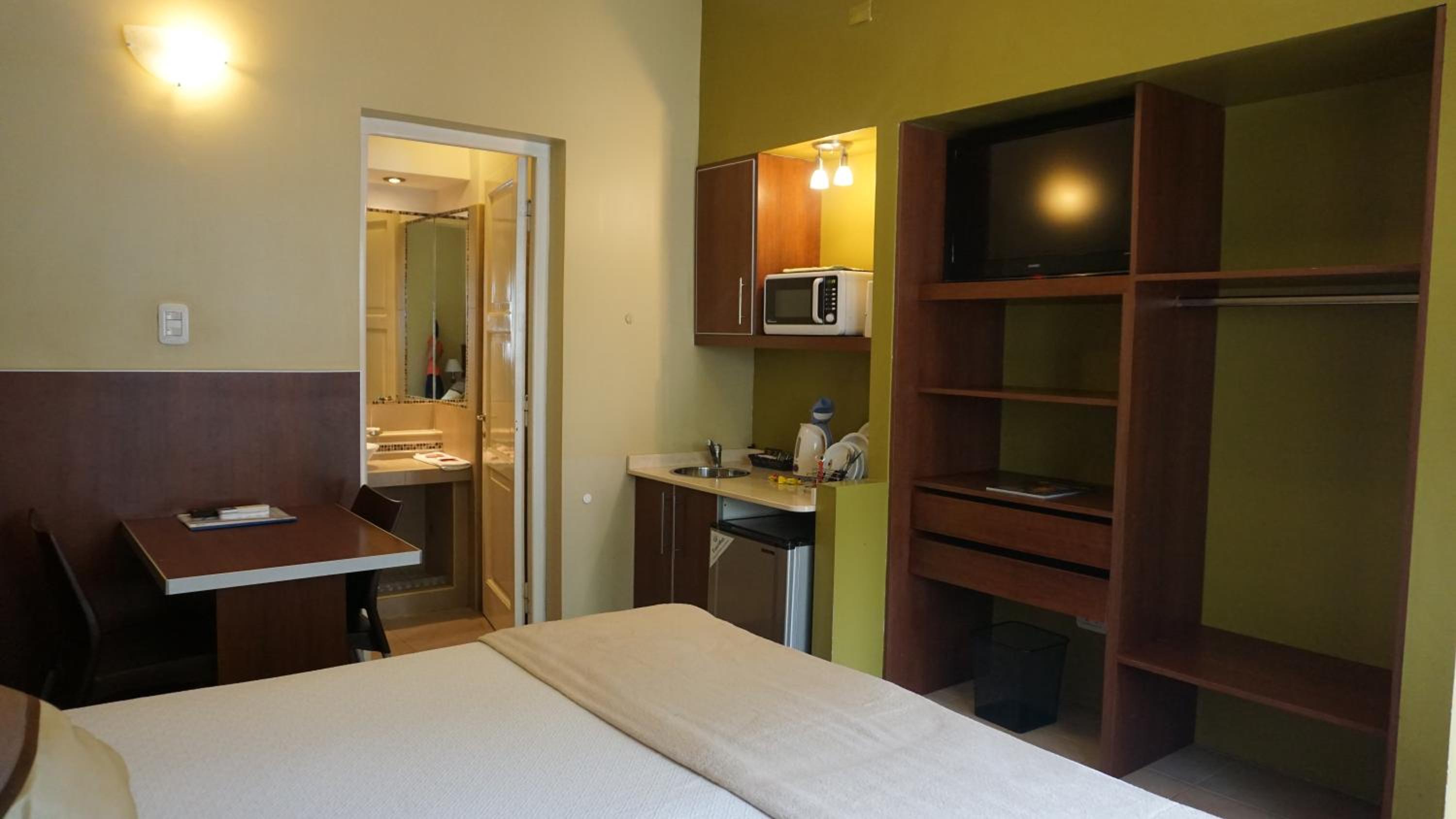 Experience air-conditioned units with essential amenities like a desk, microwave, and flat-screen TV. Private entrance, bed linen, and towels are standard in all units.