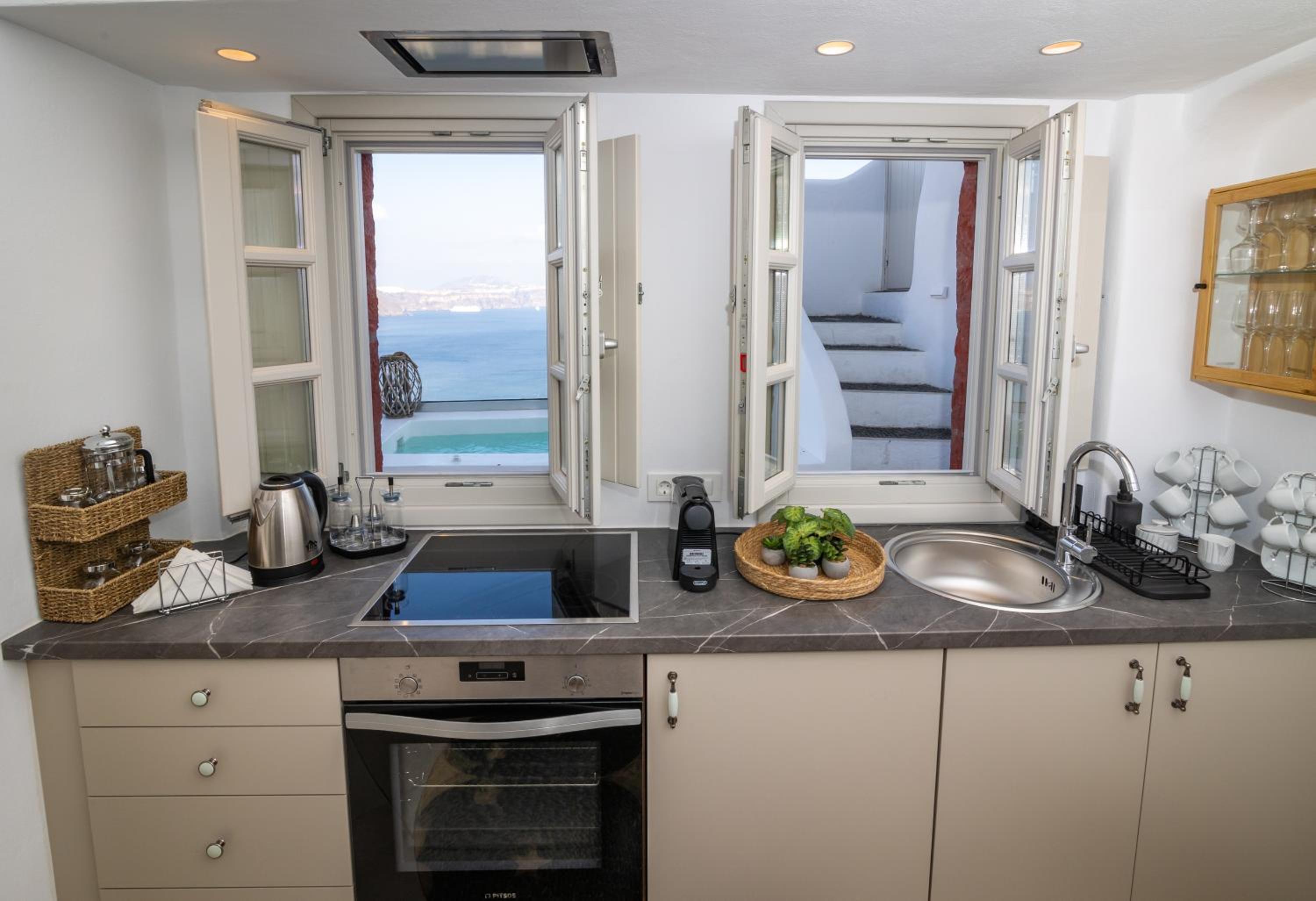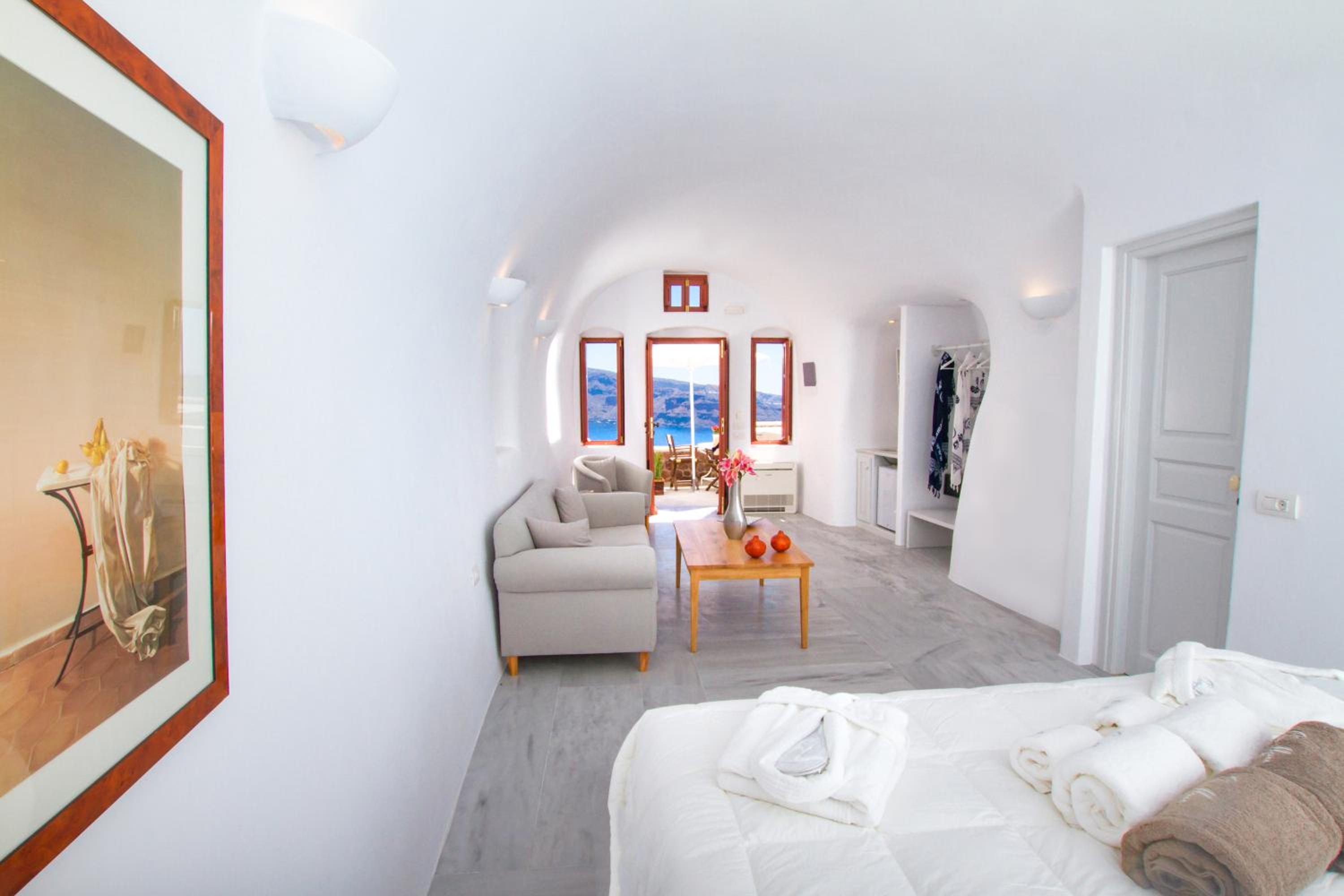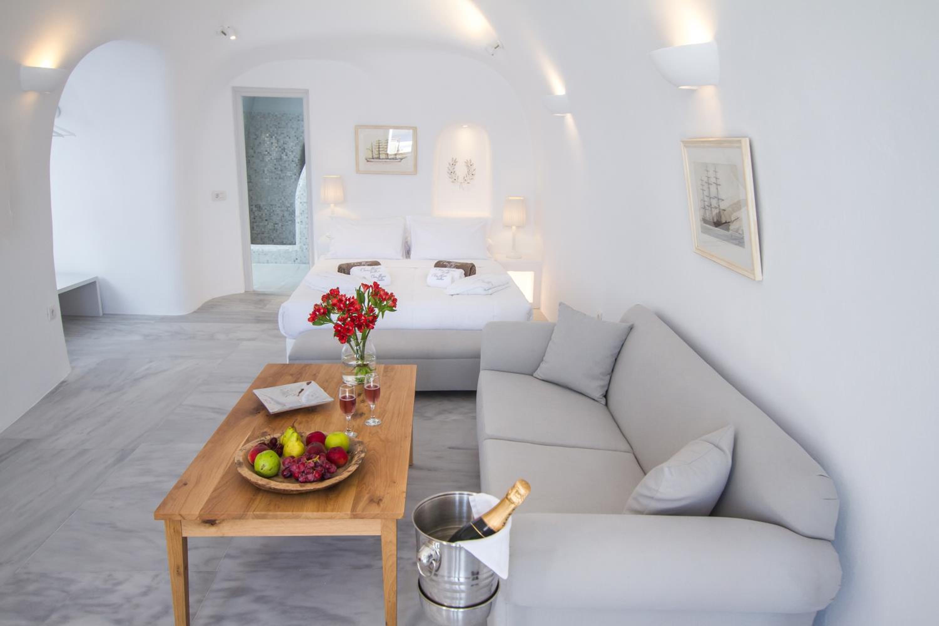 We booked the Volcano View Suite with Hot Tub and it was nothing short of AMAZING! The staff Allah, Abu, and Vasili were all incredible! The suite is right off the main street in Oia and very easy to get around to everything! Allah went above and beyond and got us an amazing dinner reservation with the best view for the sunset! Both rooms were spacious and immaculately clean! Worth the price and hope to come back some day!