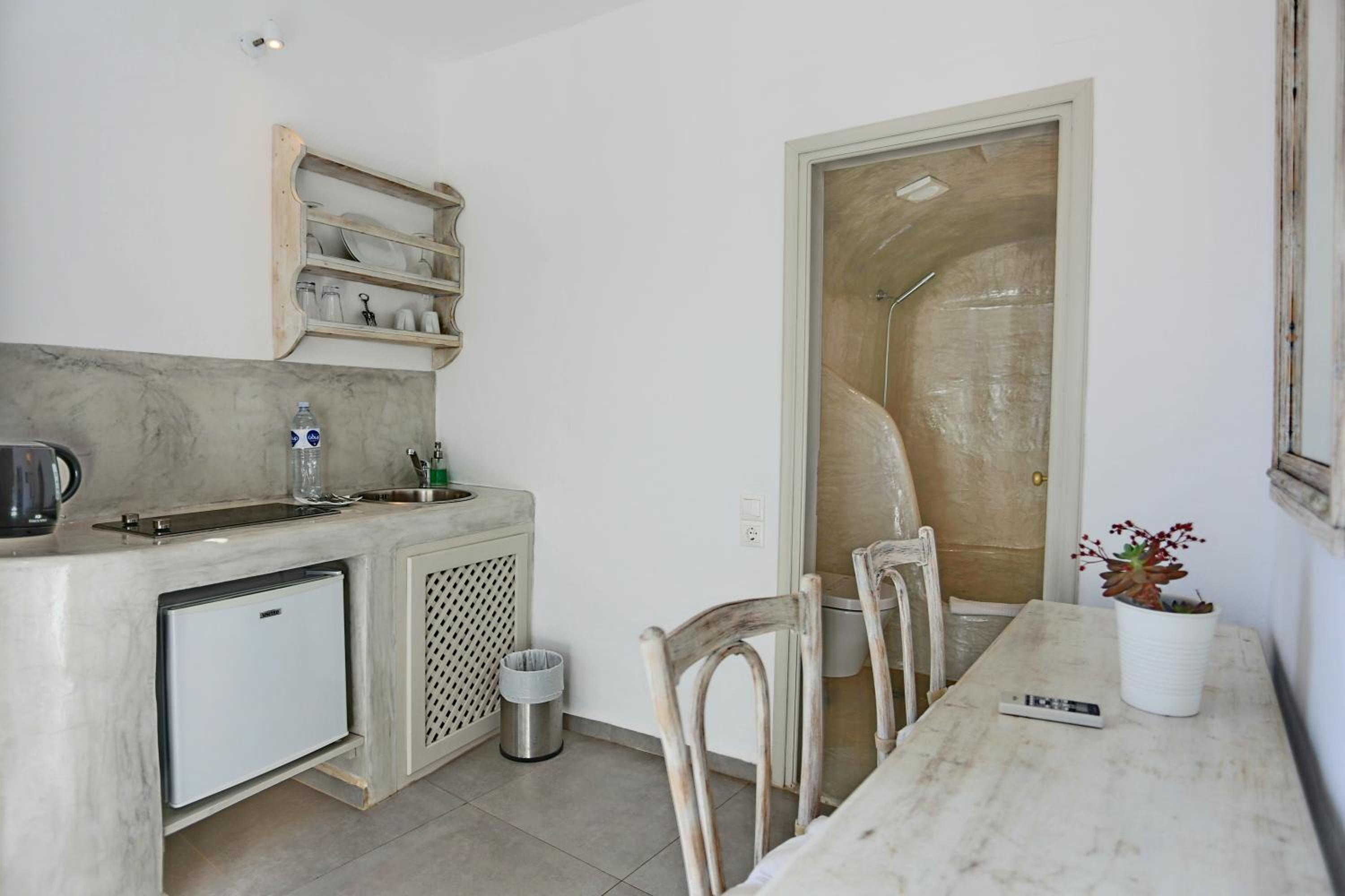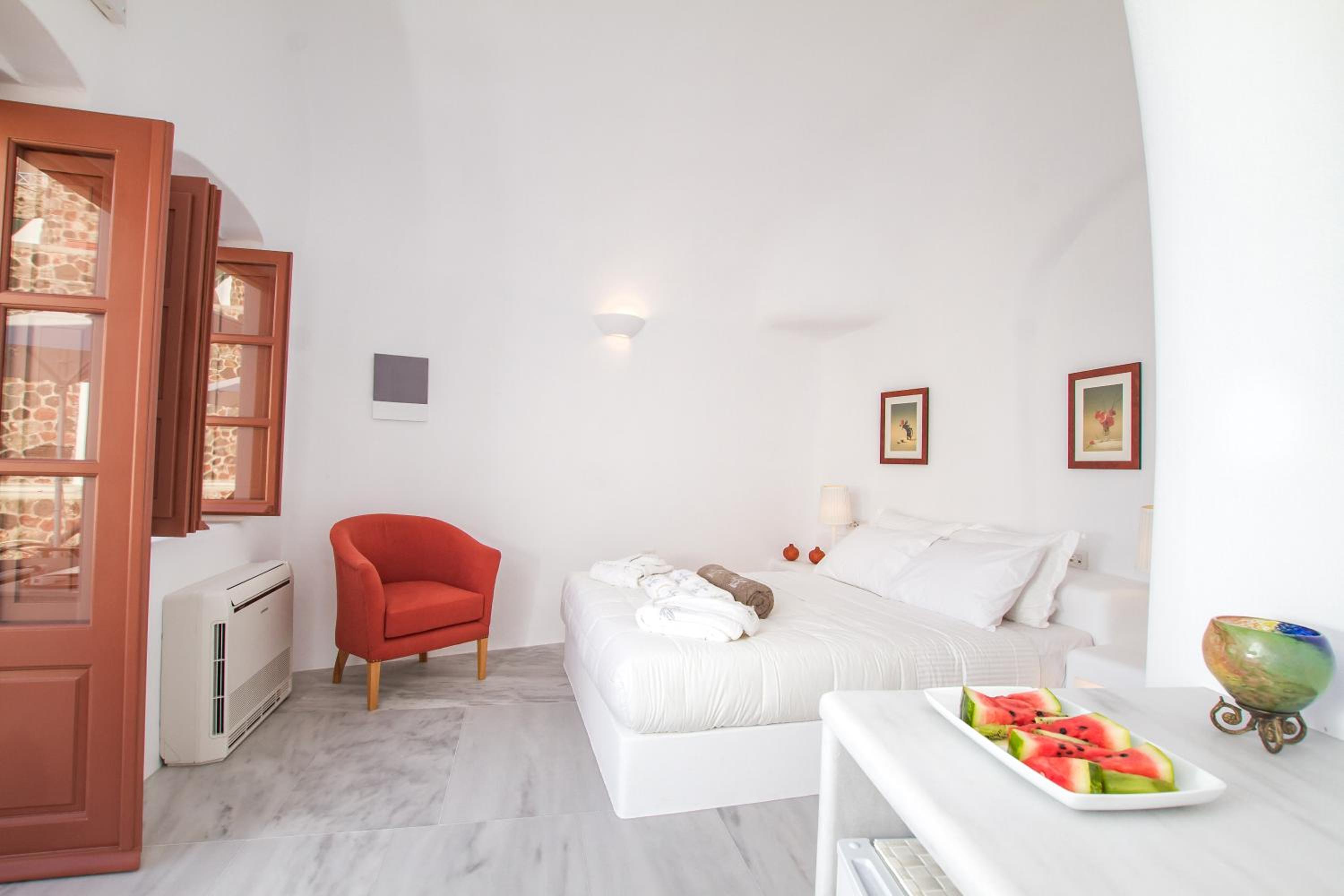 Experience the unique charm of cave-style accommodations at Oia Mare Villas, complete with air conditioning, free WiFi, and private balconies or terraces overlooking the sea. The white-washed units with minimal decoration and handmade furnishings stay true to the island's style.
