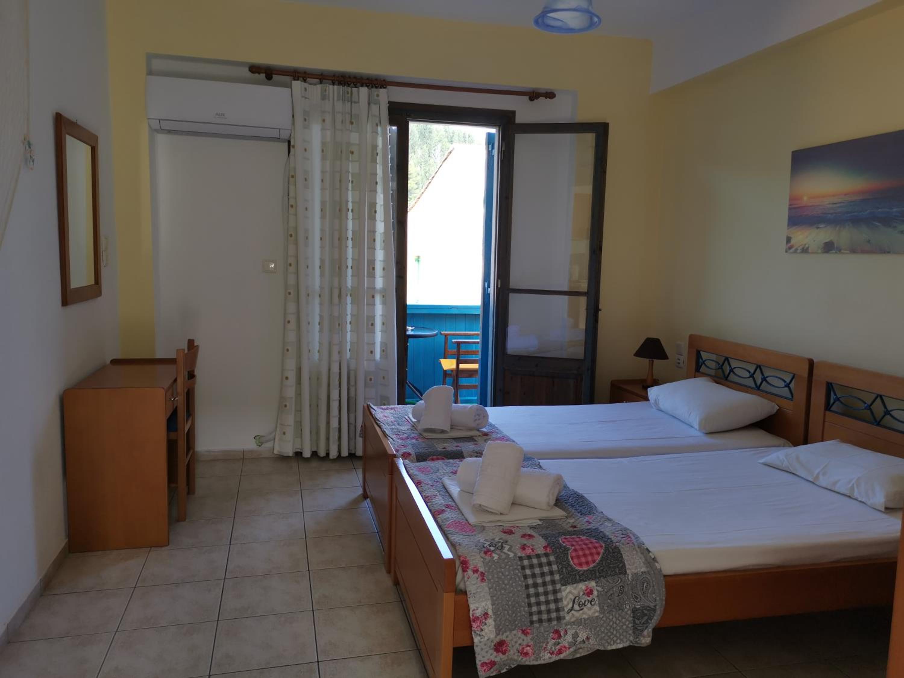 We really liked the accommodation. The room is cleaned every day. The balcony is beautiful and offers a view of the sea and the hill that leads to Milos beach. It has a very nice garden where you can have a drink. The owner is friendly like everyone else so we will definitely visit this place again.
