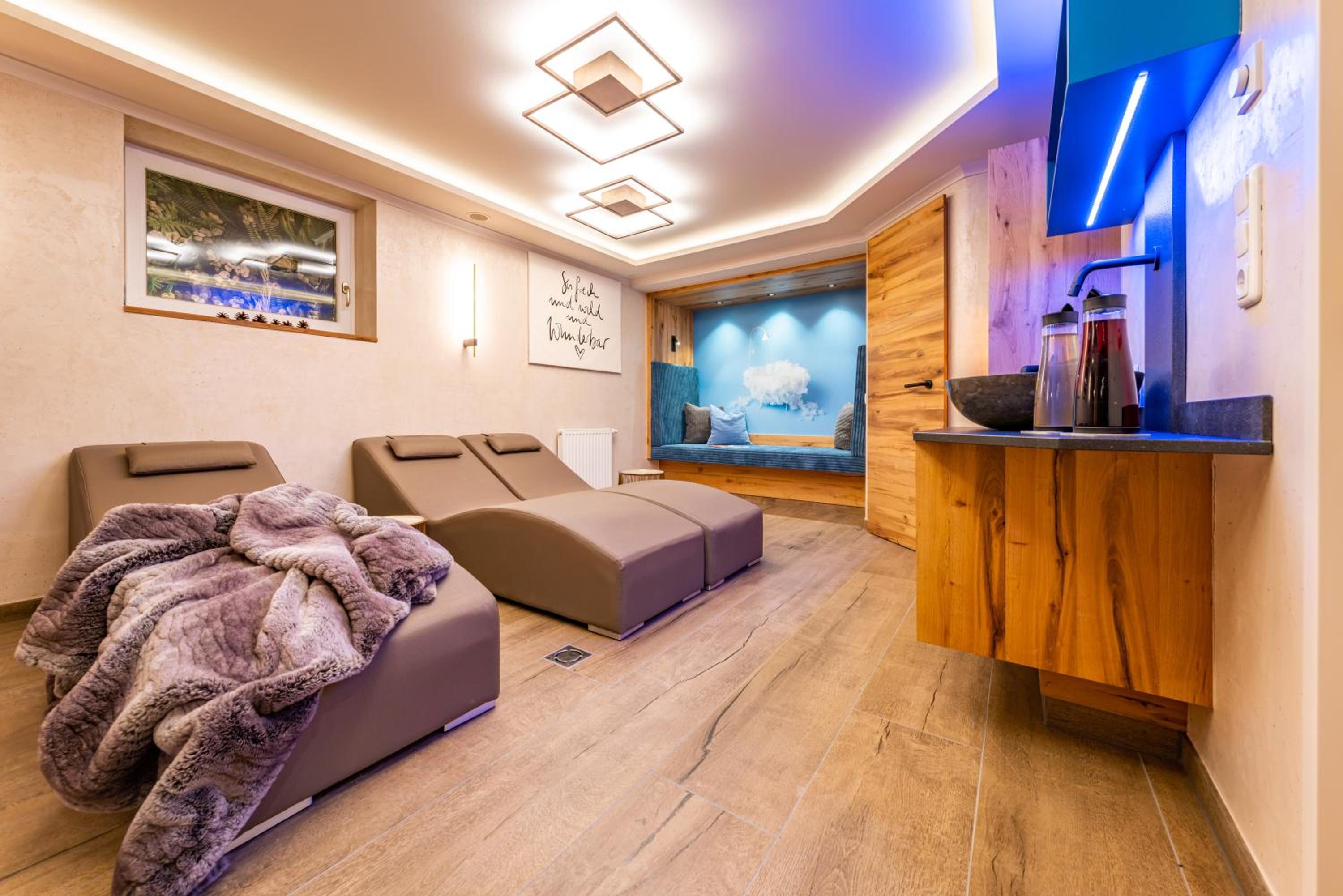 Indulge in relaxation at Apparthotel Sonnenhof's spa area, featuring a sauna, solarium, and a peaceful relaxation room. After a day of exploring the picturesque surroundings, unwind and rejuvenate in these soothing facilities.