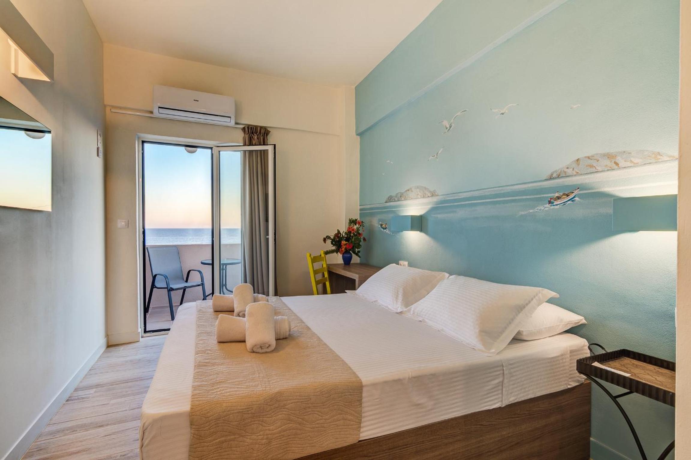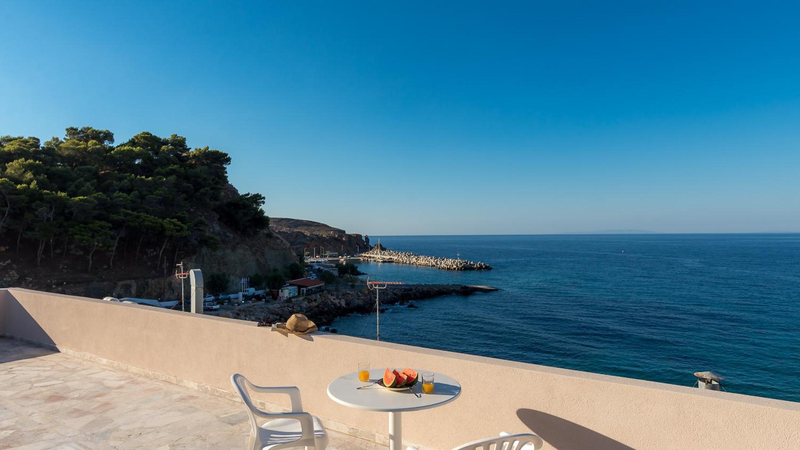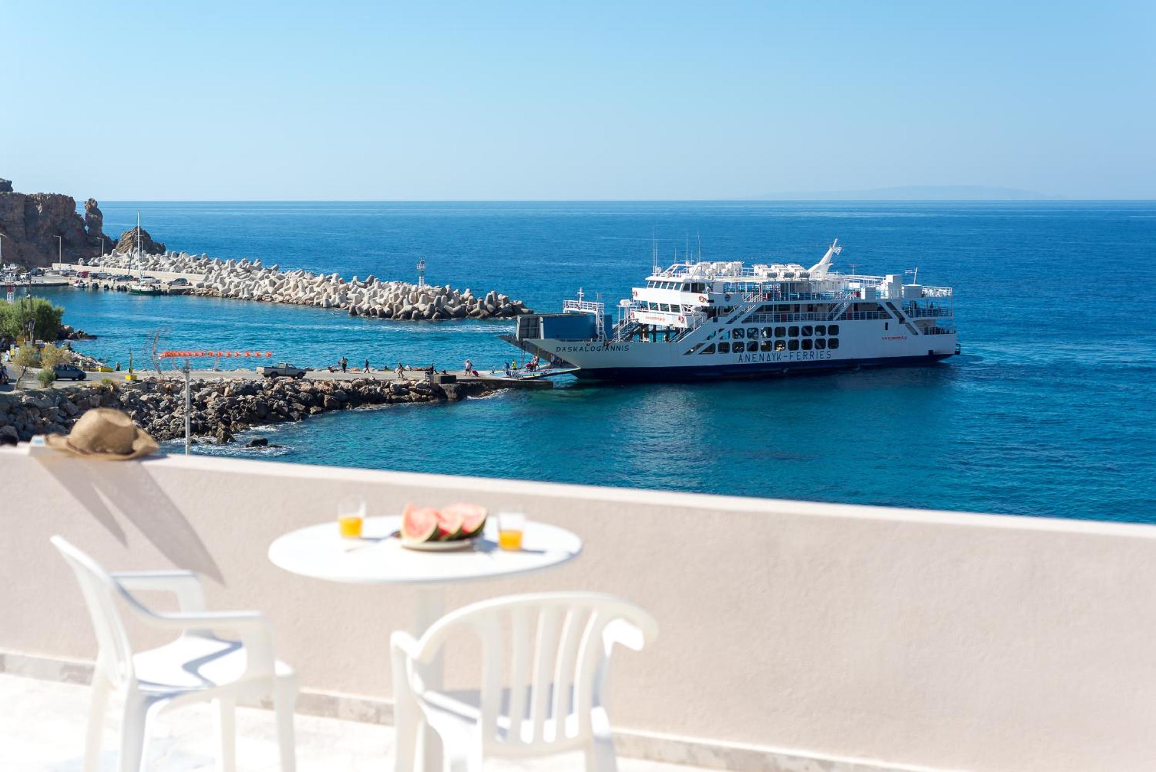 Small hotel very convenient to the south coast ferries, local bakeries and tavernas in town. Offers free parking close to hotel. Owners are exceedingly kind and helpful. Request top floor room for harbor views.