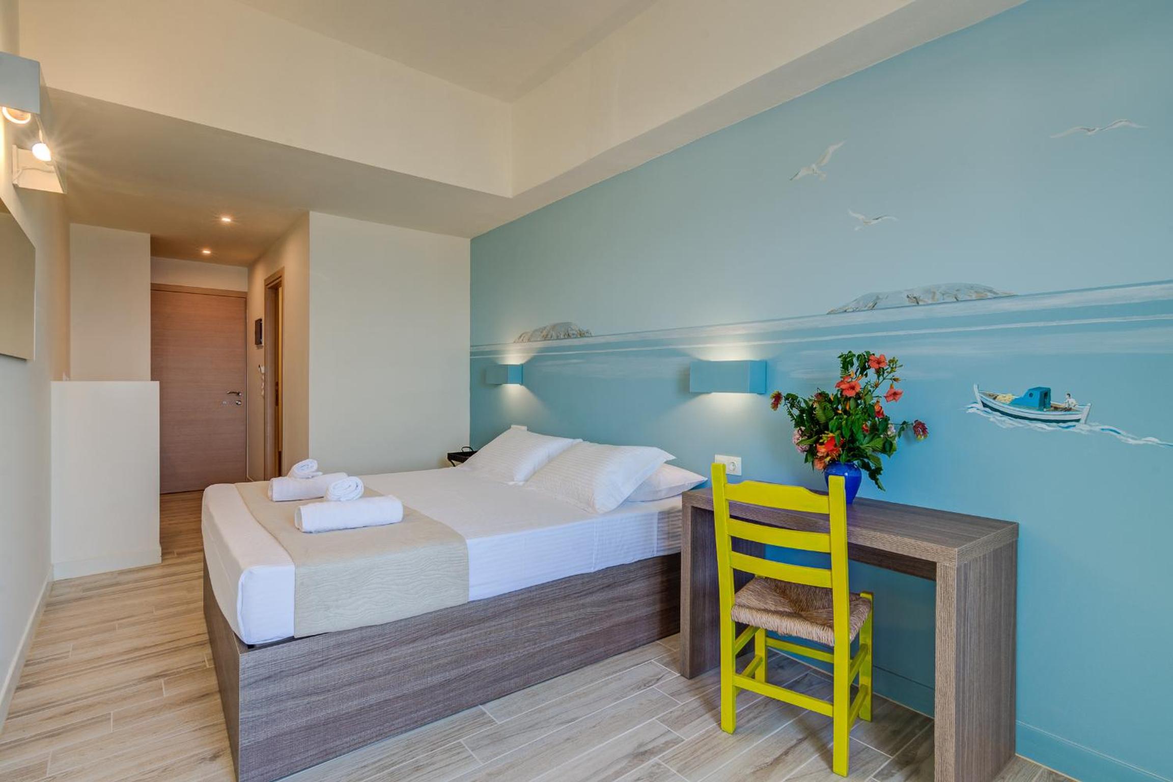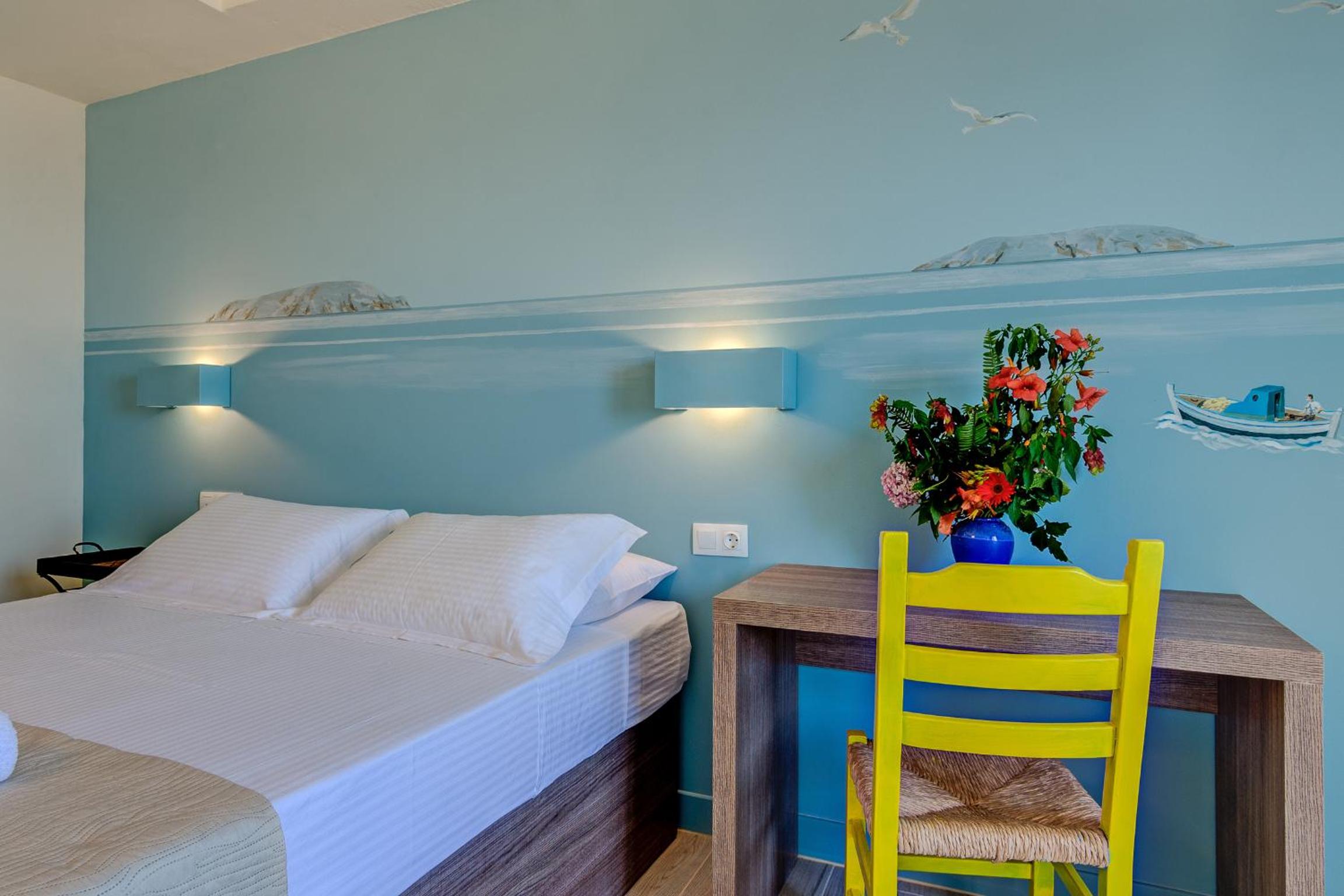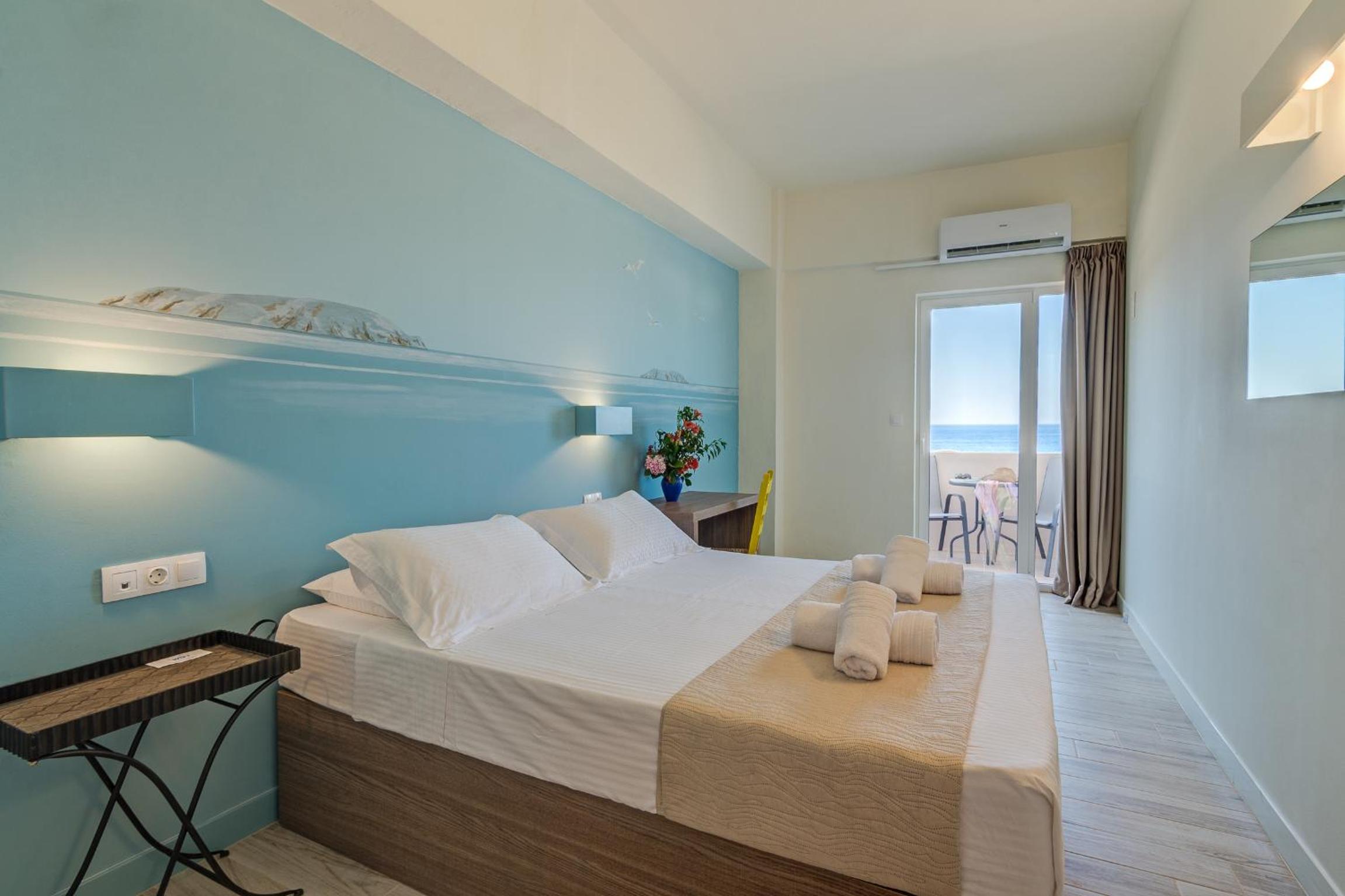 Small hotel very convenient to the south coast ferries, local bakeries and tavernas in town. Offers free parking close to hotel. Owners are exceedingly kind and helpful. Request top floor room for harbor views.