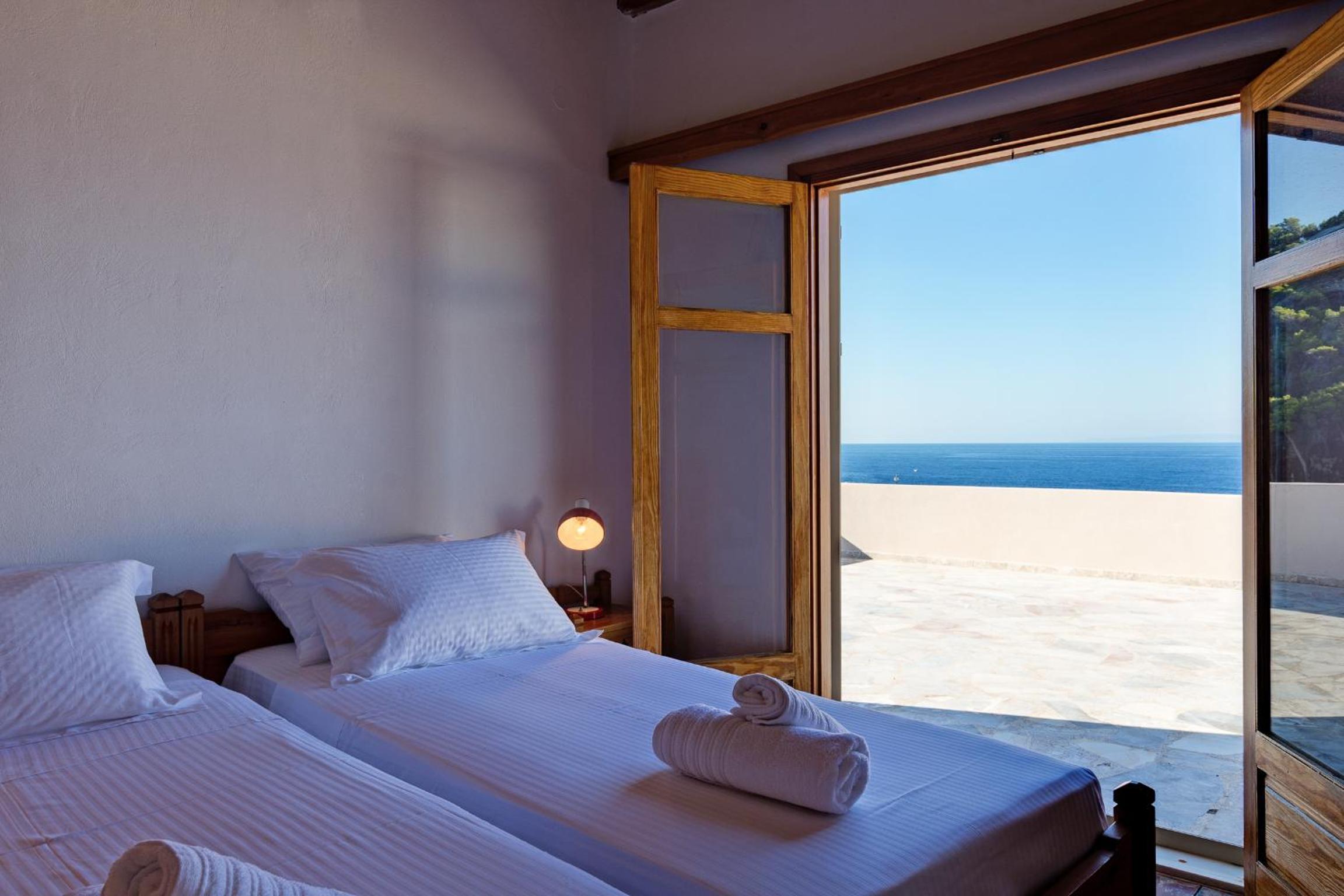 Beautiful view of Sfakia Harbour, seen from your bed. A very comfortable room kept extremely well cleaned.