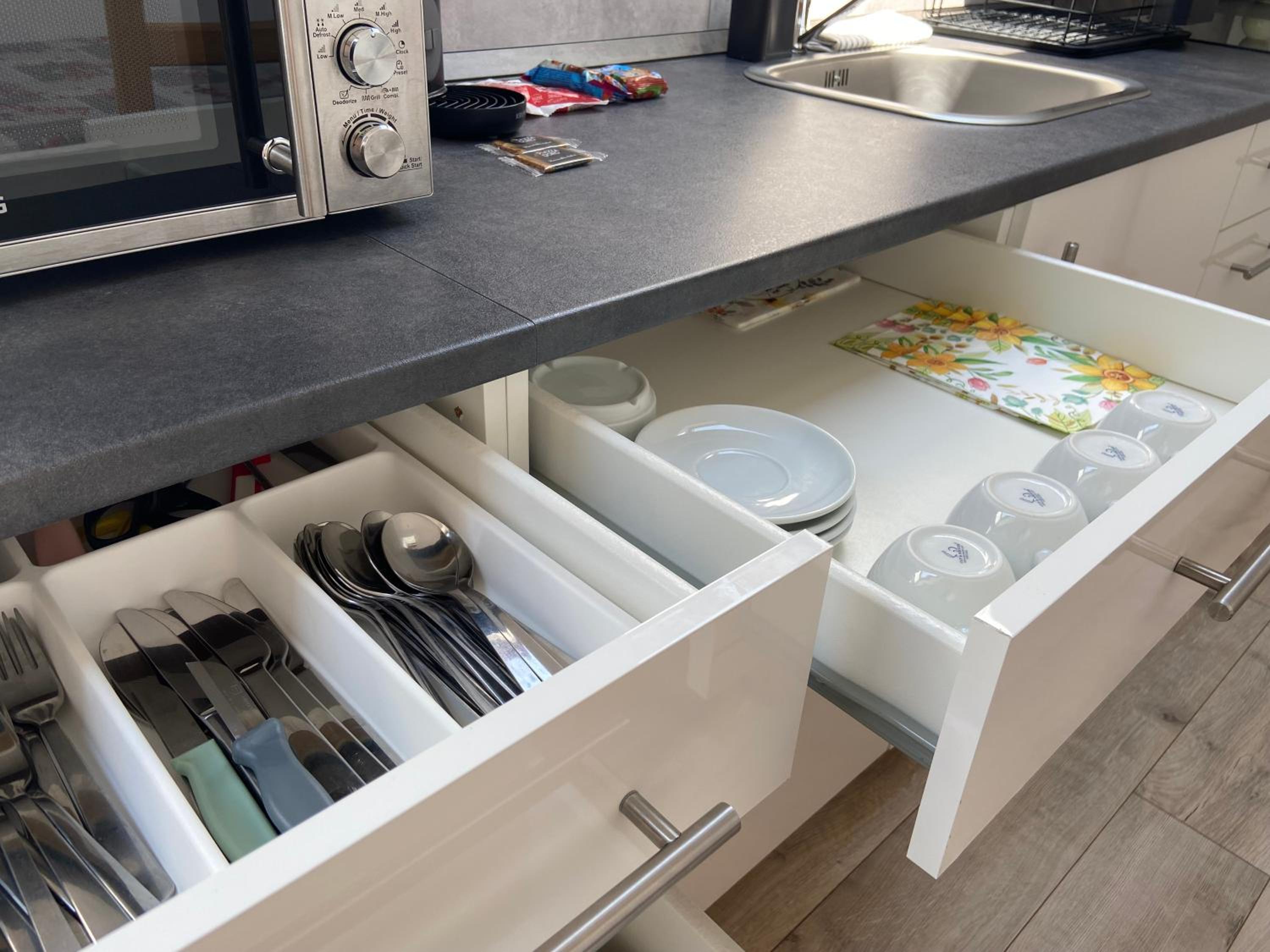 Snad jen hukot ledničky která je hned u čela postele.