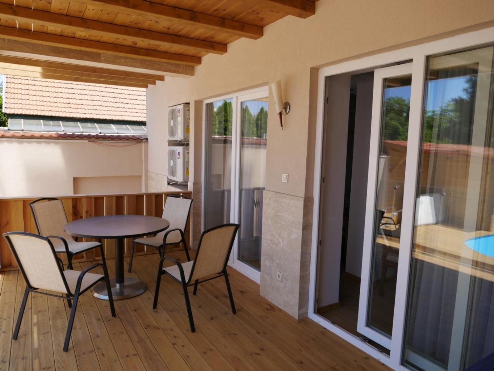 Szintes apartmanunk volt , az alsó szinten padló fűtés , a felső klímával volt felszerelve