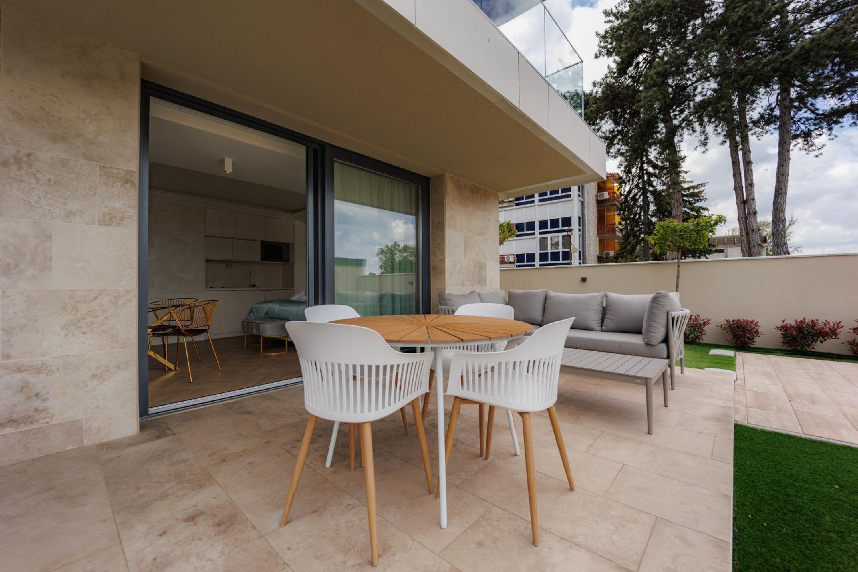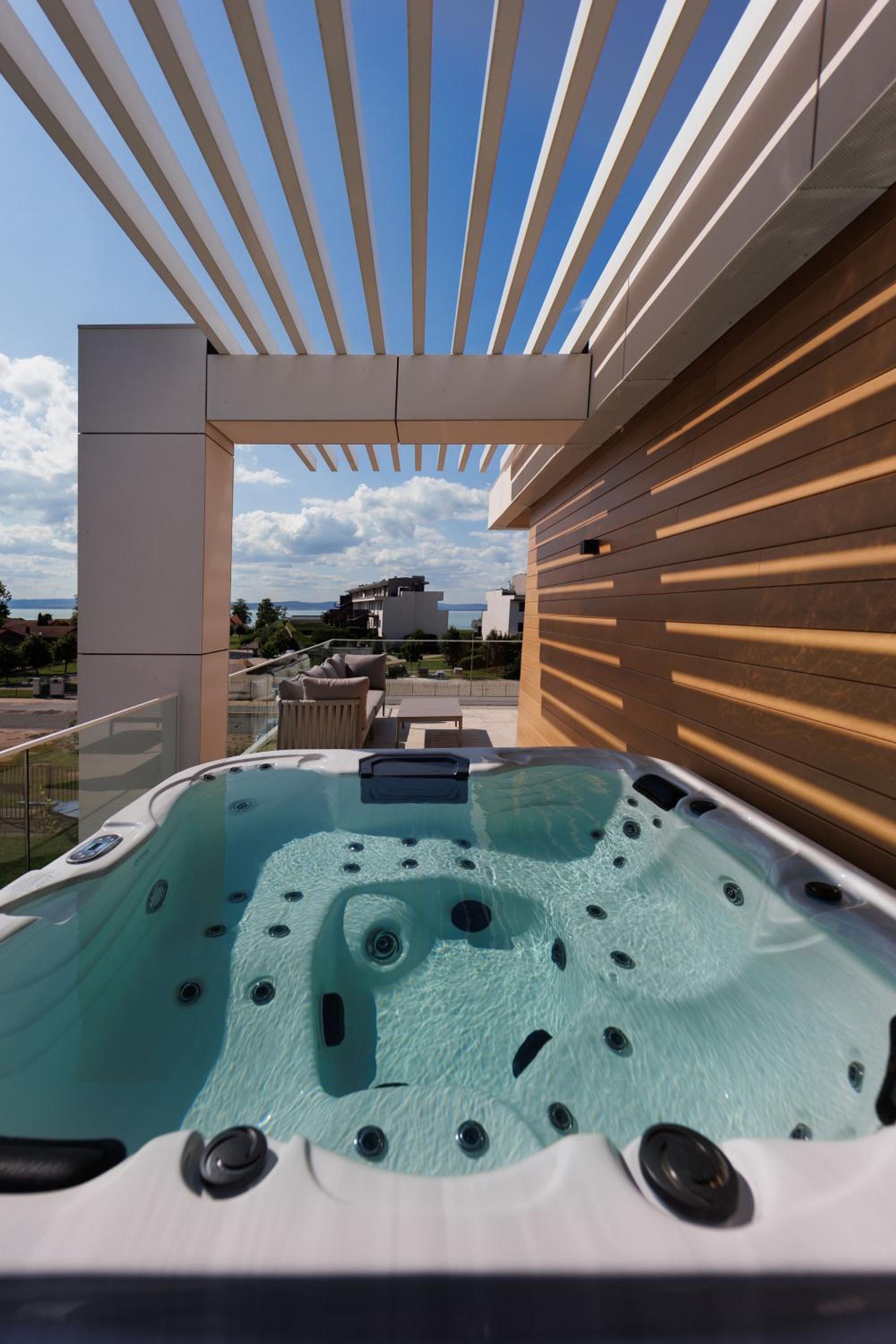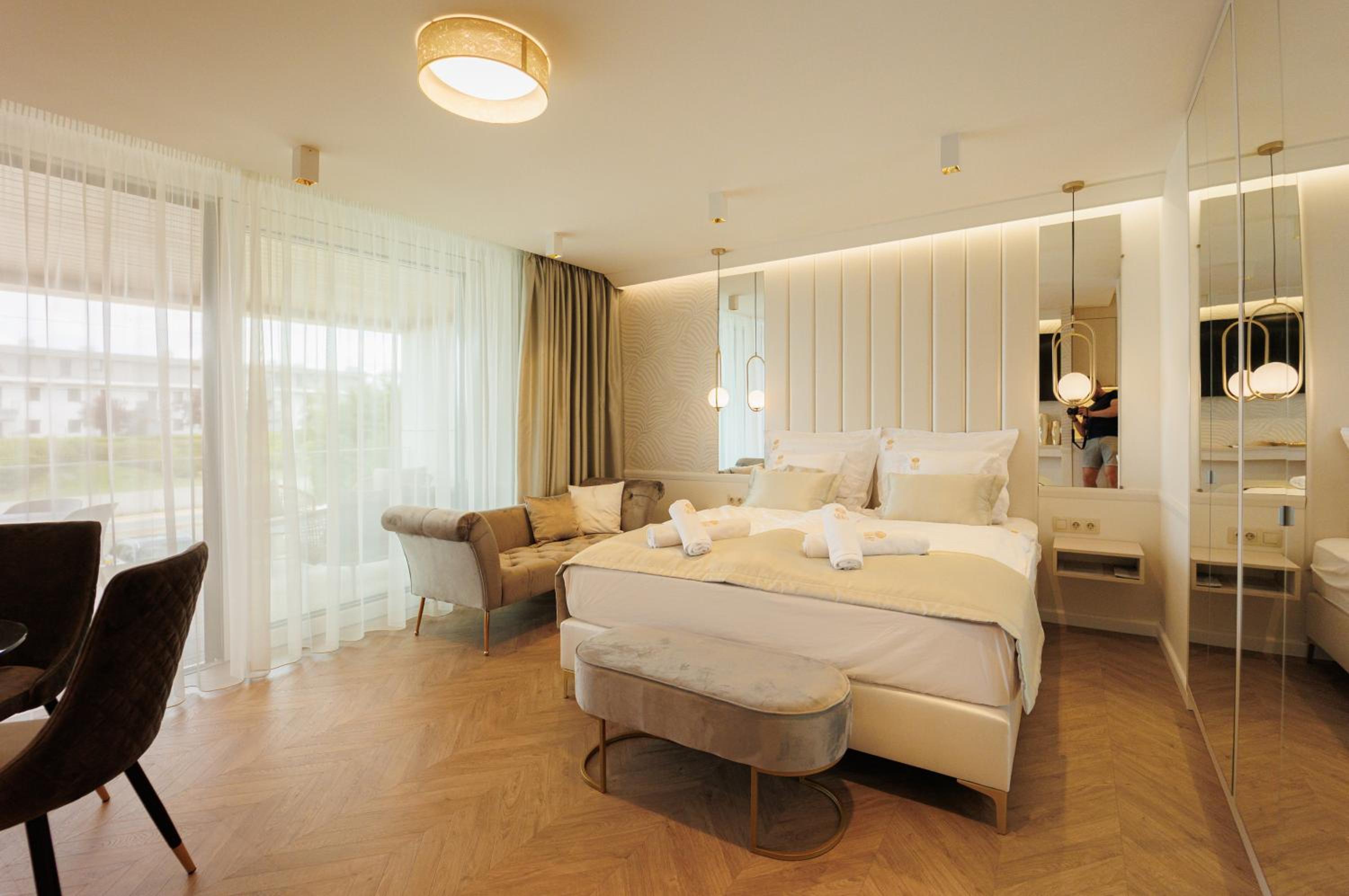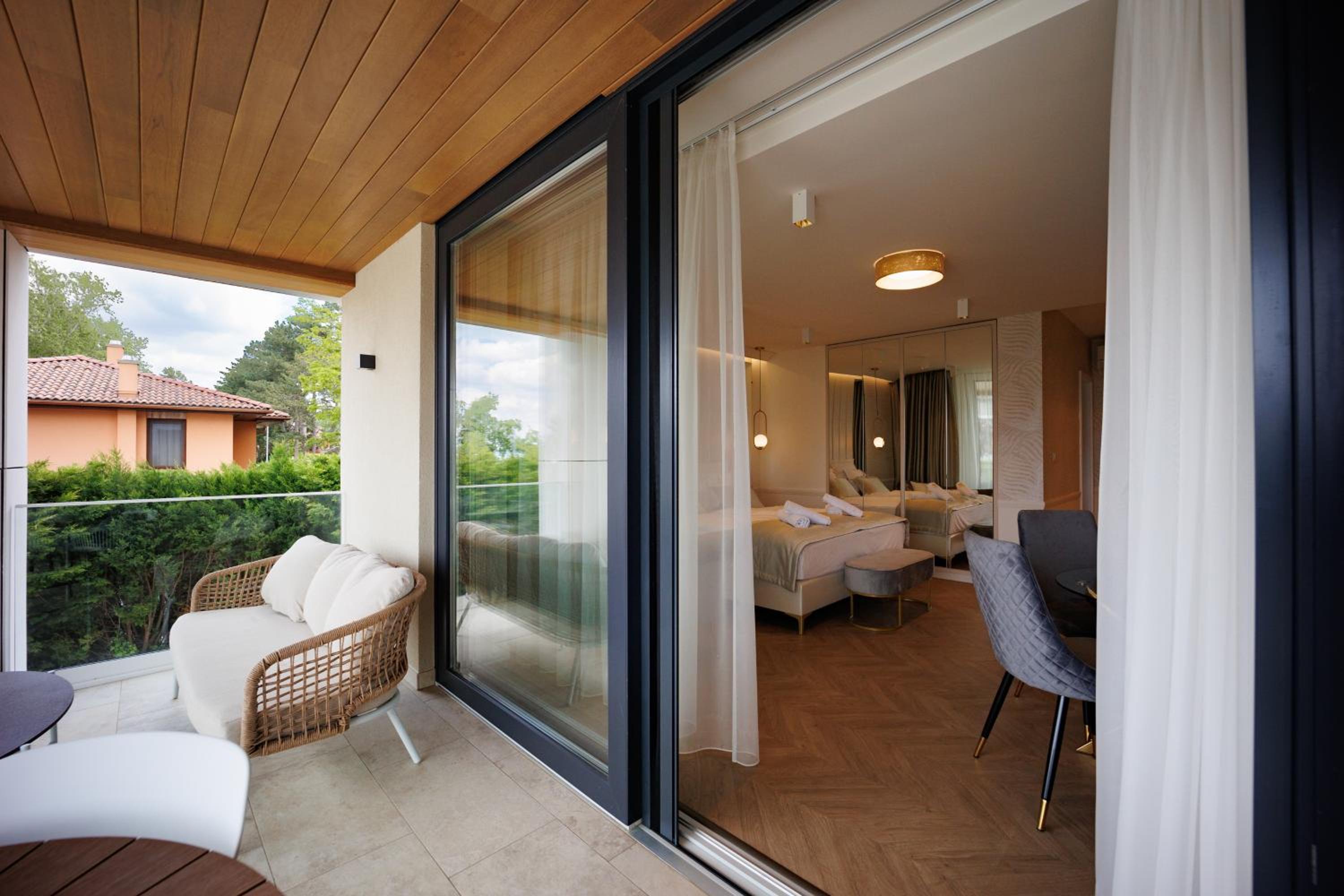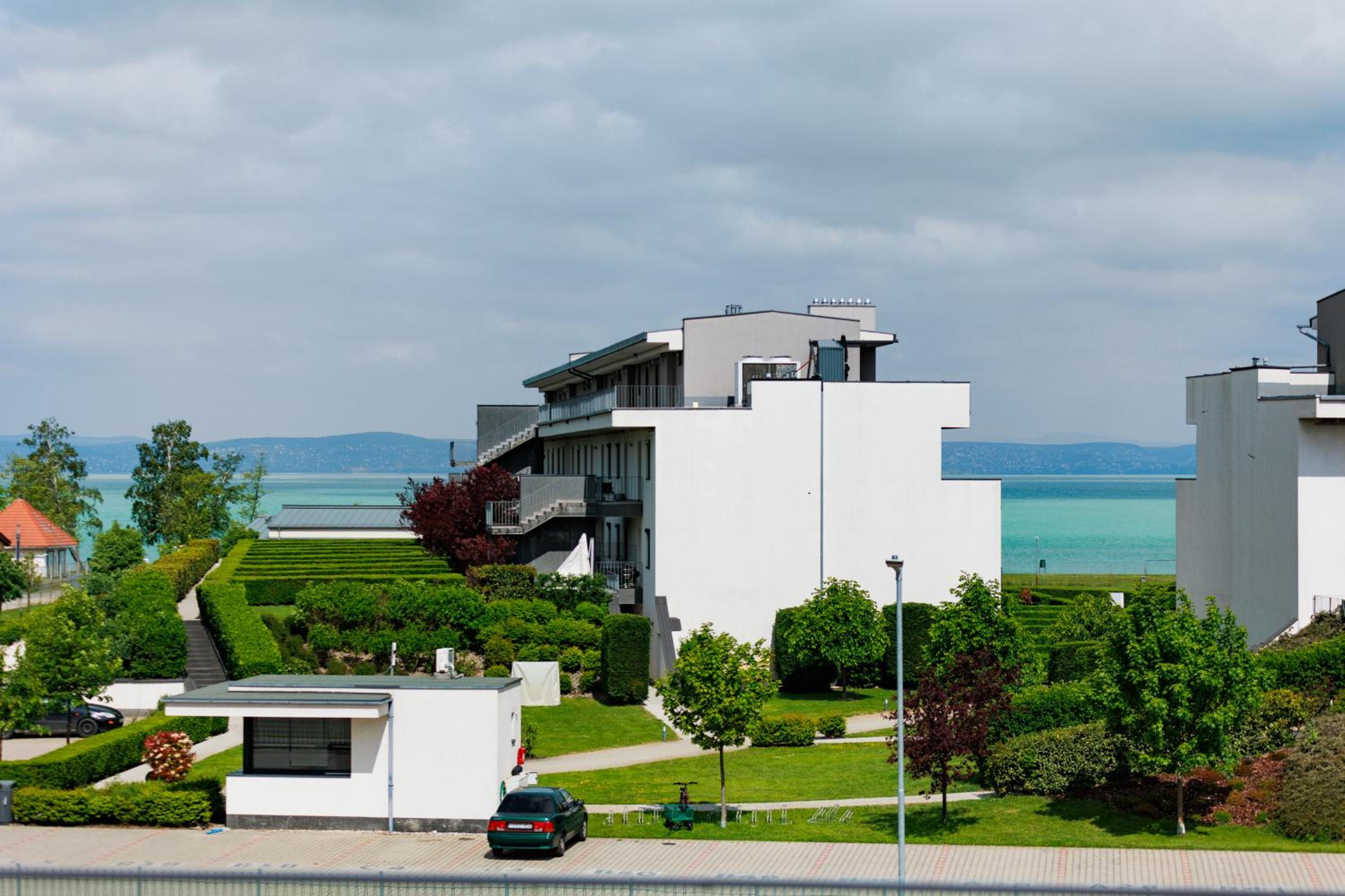Gold Wave Apartments offers 5-star sustainable aparthotel living in Siófok, with stunning garden and lake views. The air-conditioned units feature modern amenities like a flat-screen TV, terrace, and fully equipped kitchen in selected rooms.