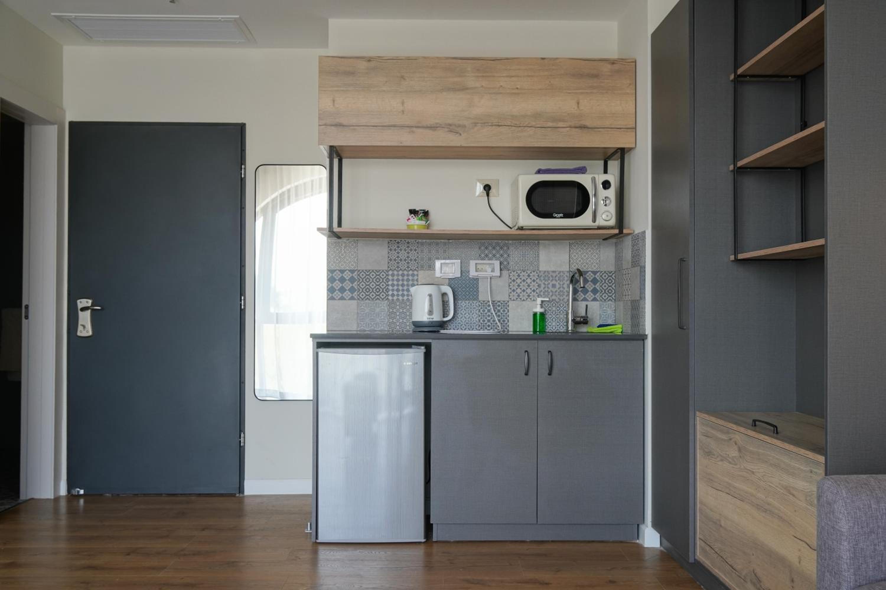 Experience a comfortable stay in our sustainable aparthotel offering well-equipped units with kitchenettes, flat-screen TVs, and modern amenities like free WiFi and air conditioning.