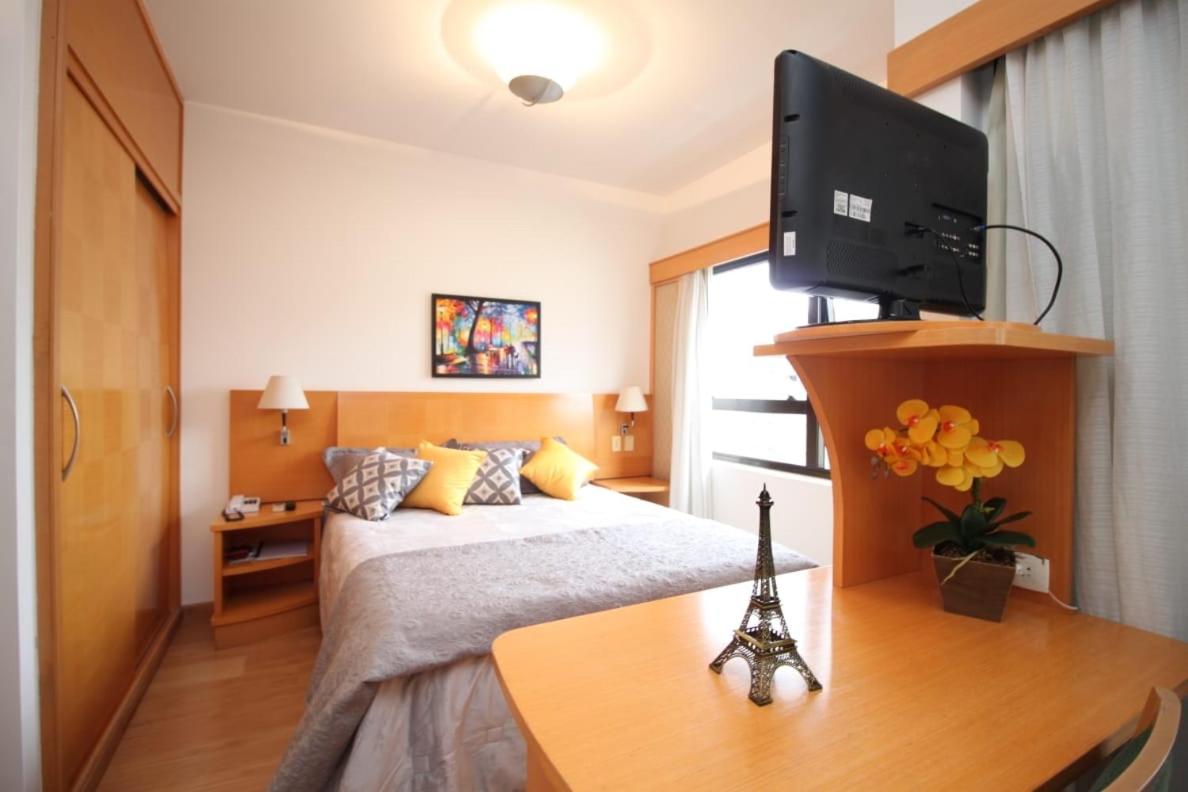 Flat 4 Estrelas Jardins in Sao Paulo offers a luxurious stay with a private pool and top-notch amenities. The air-conditioned aparthotel features a fully equipped kitchenette, a balcony with stunning city views, and a flat-screen TV for entertainment.