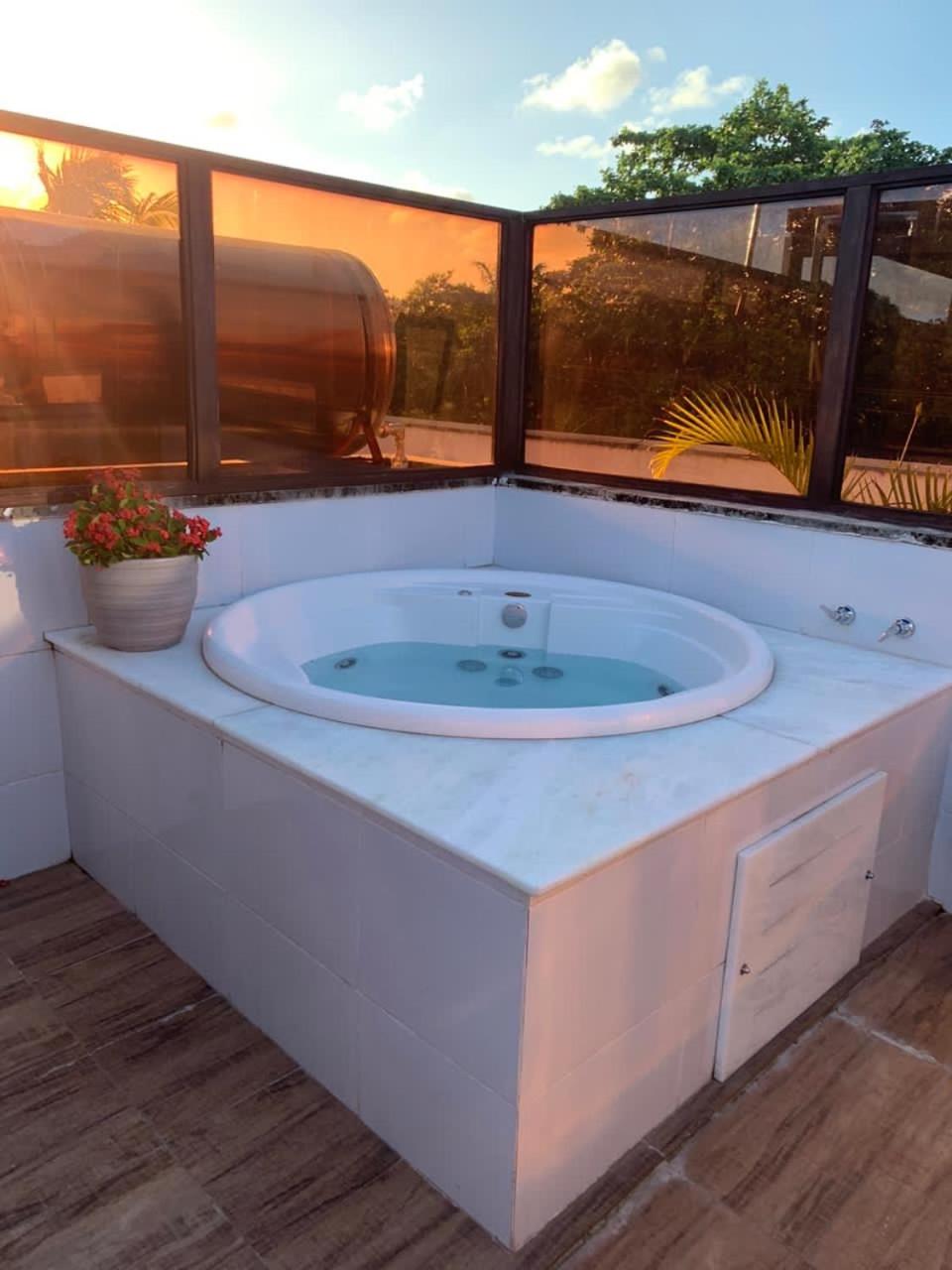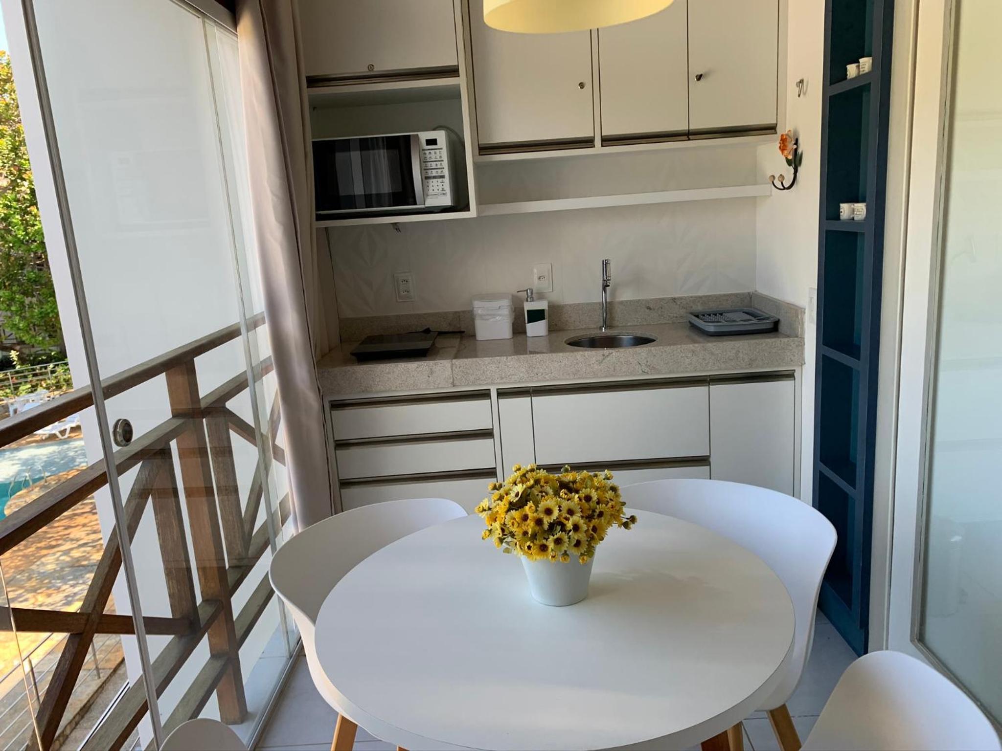 Otima estrutura e bom condomínio. A piscina é otima, o flat está muito bem equipado. O Solarium é muito bom! Uma dica sobre ele seria colocar um adesivo ou algo que deixasse ele como um espaço ainda mais reservado.
