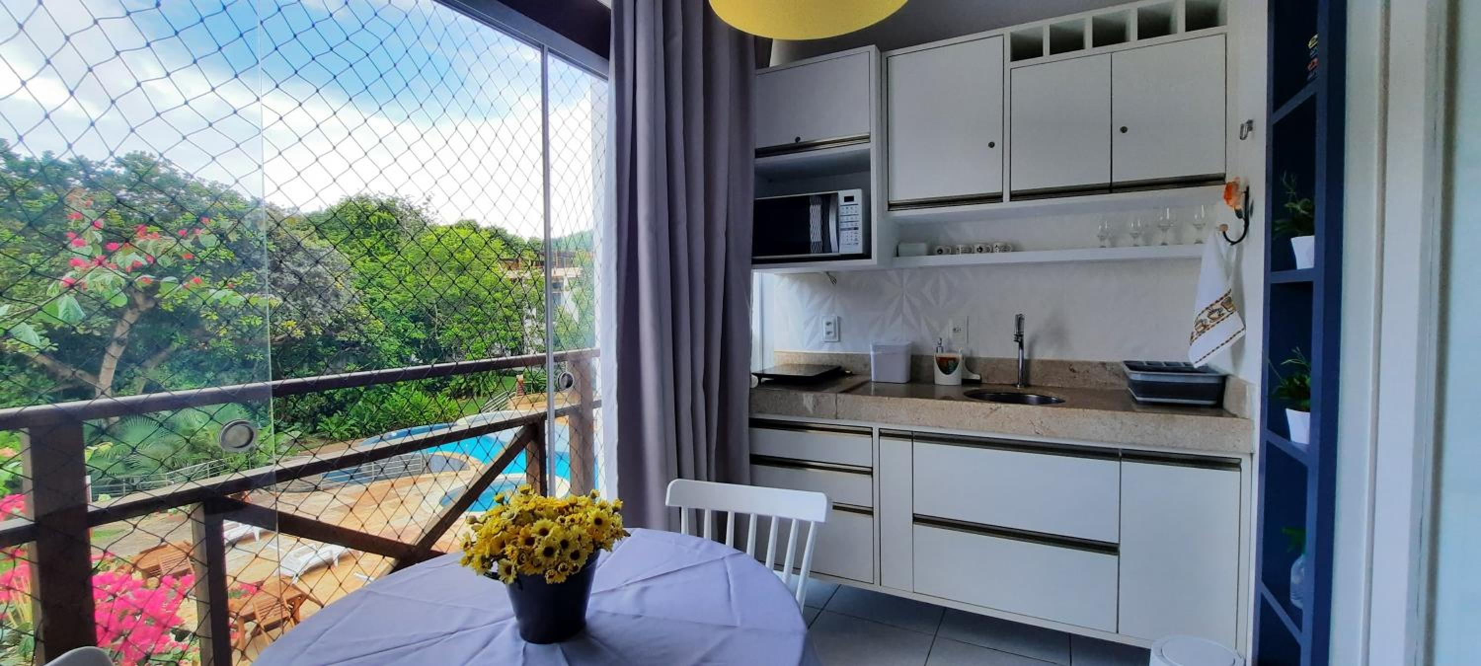 A hospedagem foi maravilhosa,os quartos confortáveis,cozinha com utensílios que facilitaram bastante nossa estadia,a piscina é perfeita,a área do solariam muito boa,o condomínio é uma paz,ambiente familiar.