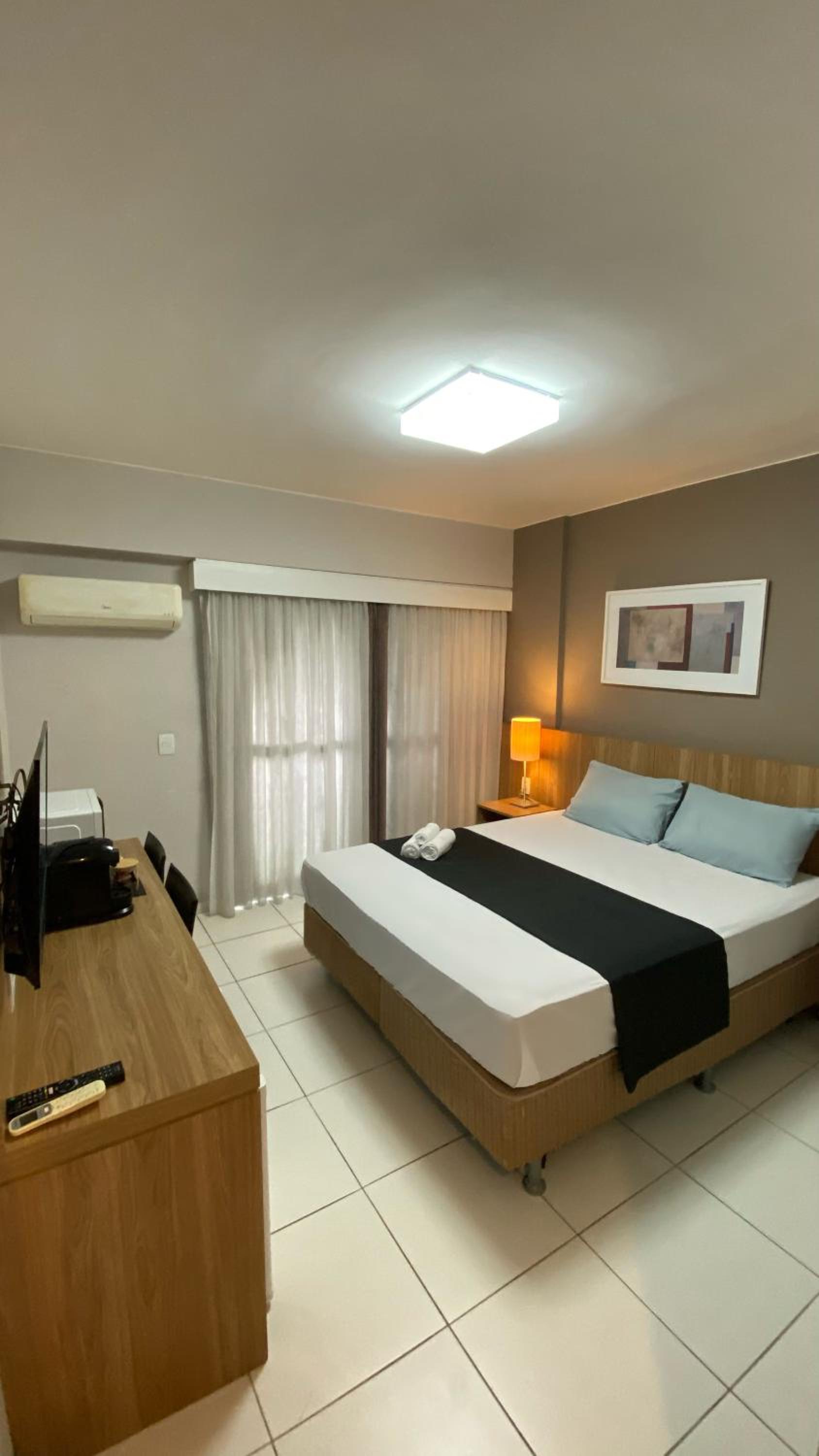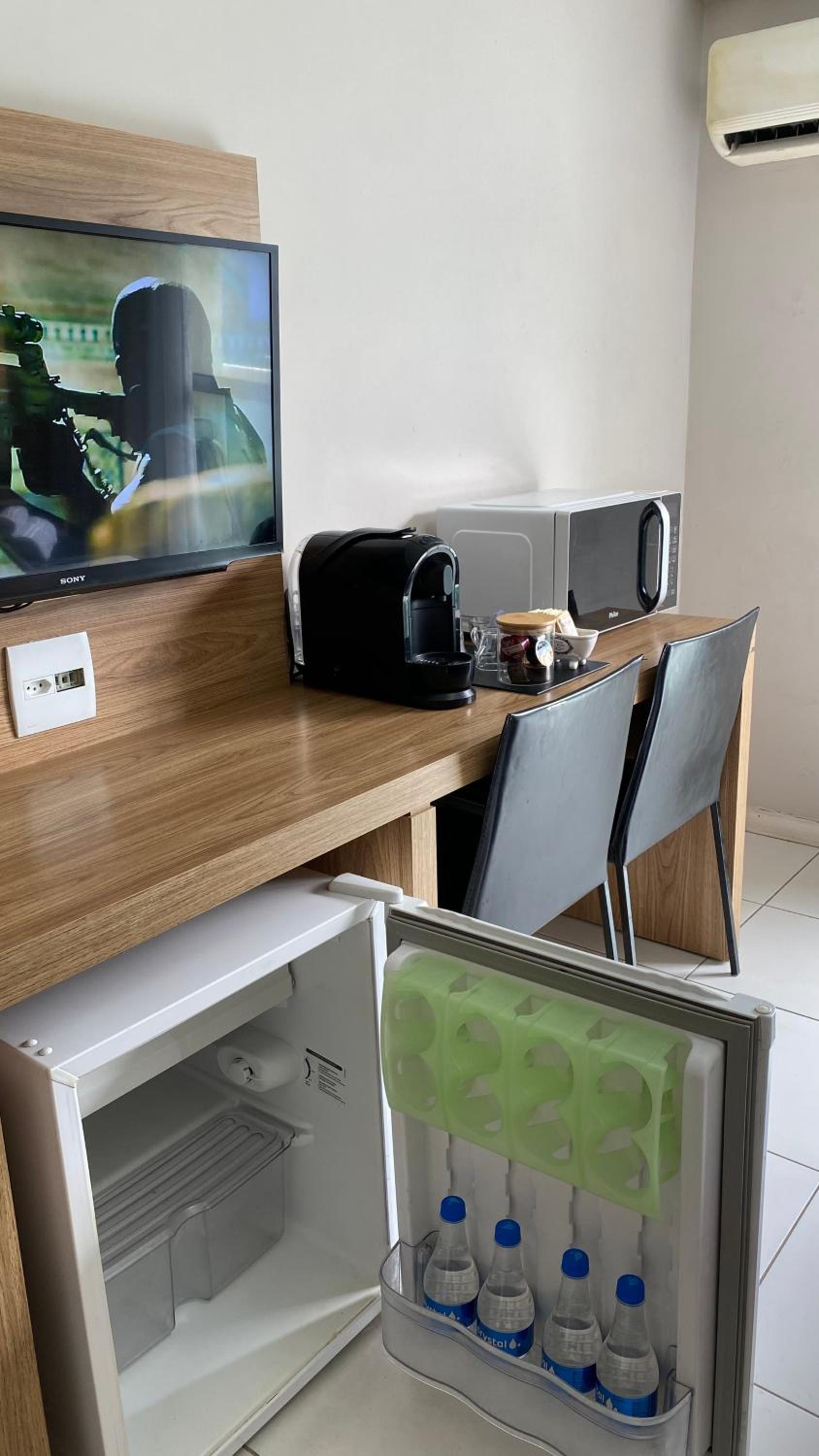 O apartamento está bem conservado, A cama é boa e o banheiro também. Pedimos uma cama extra, e foi colocado um colchão, o que atendeu a nossa necessidade. O único ponto de atenção, que poderia ser melhor, é que existe um restaurante, que serve café (R$ 40,90), mas o local fica aberto e tem muitas moscas. Proprietária, respondeu a todos os meus pedidos e dúvidas de forma rápida e efetiva. Recomendo o local!! Existe tb um mini mercado, com bastante variedade de produtos.