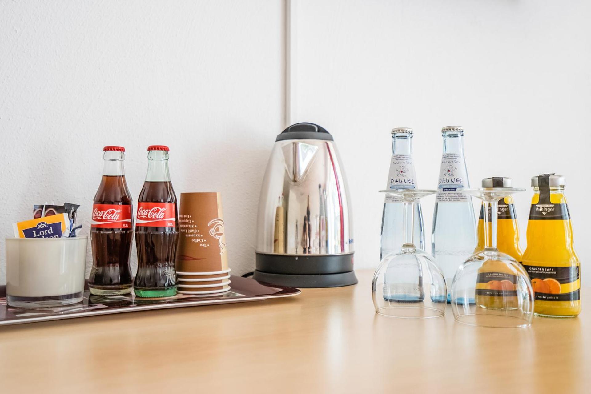 , kettle in room, but no cups, Tea or coffee or anything, not even a glass of water