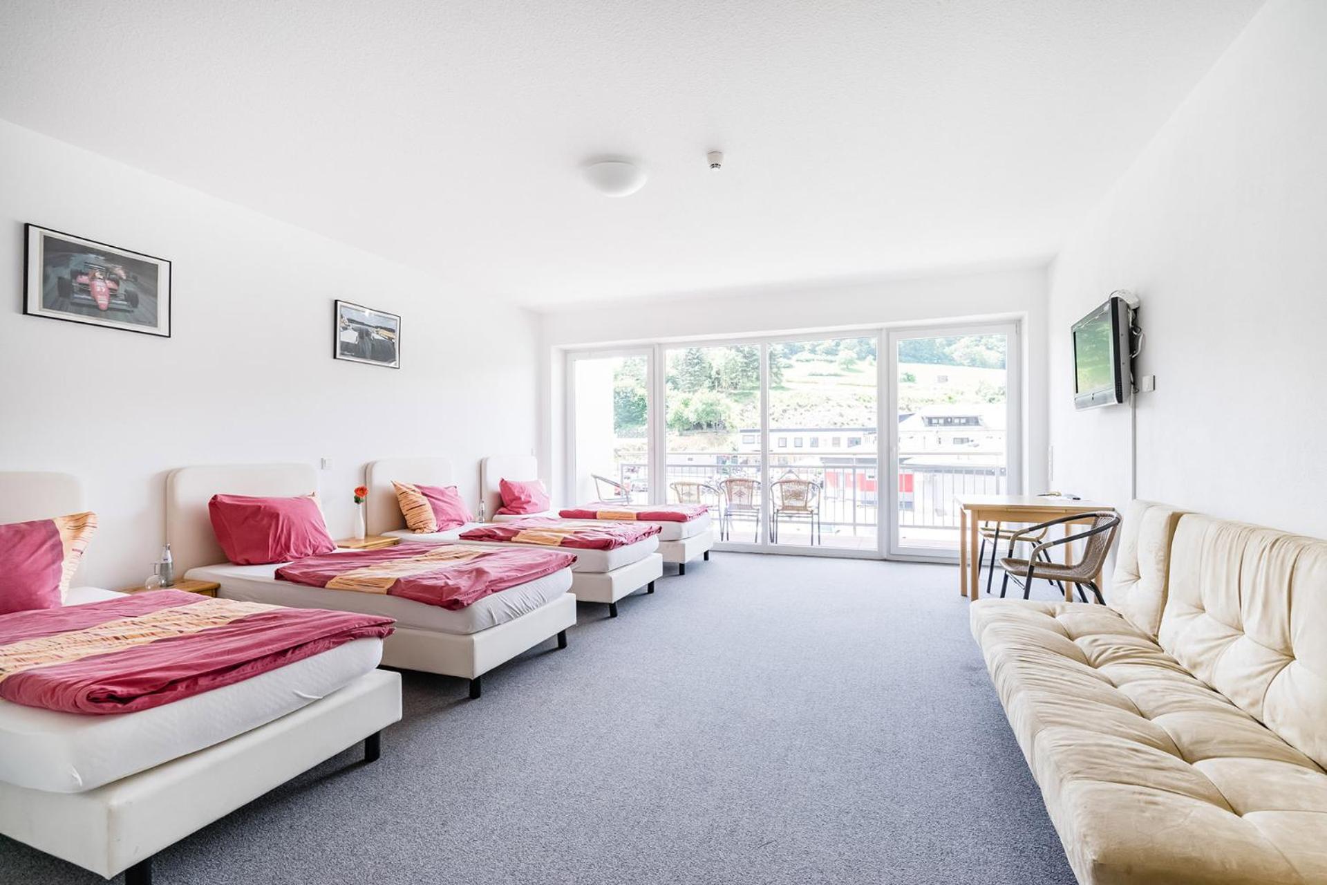 Spectacular Views: Enjoy spacious balconies with stunning views of the Eifel countryside and the Nordschleife track from most rooms and all apartments.