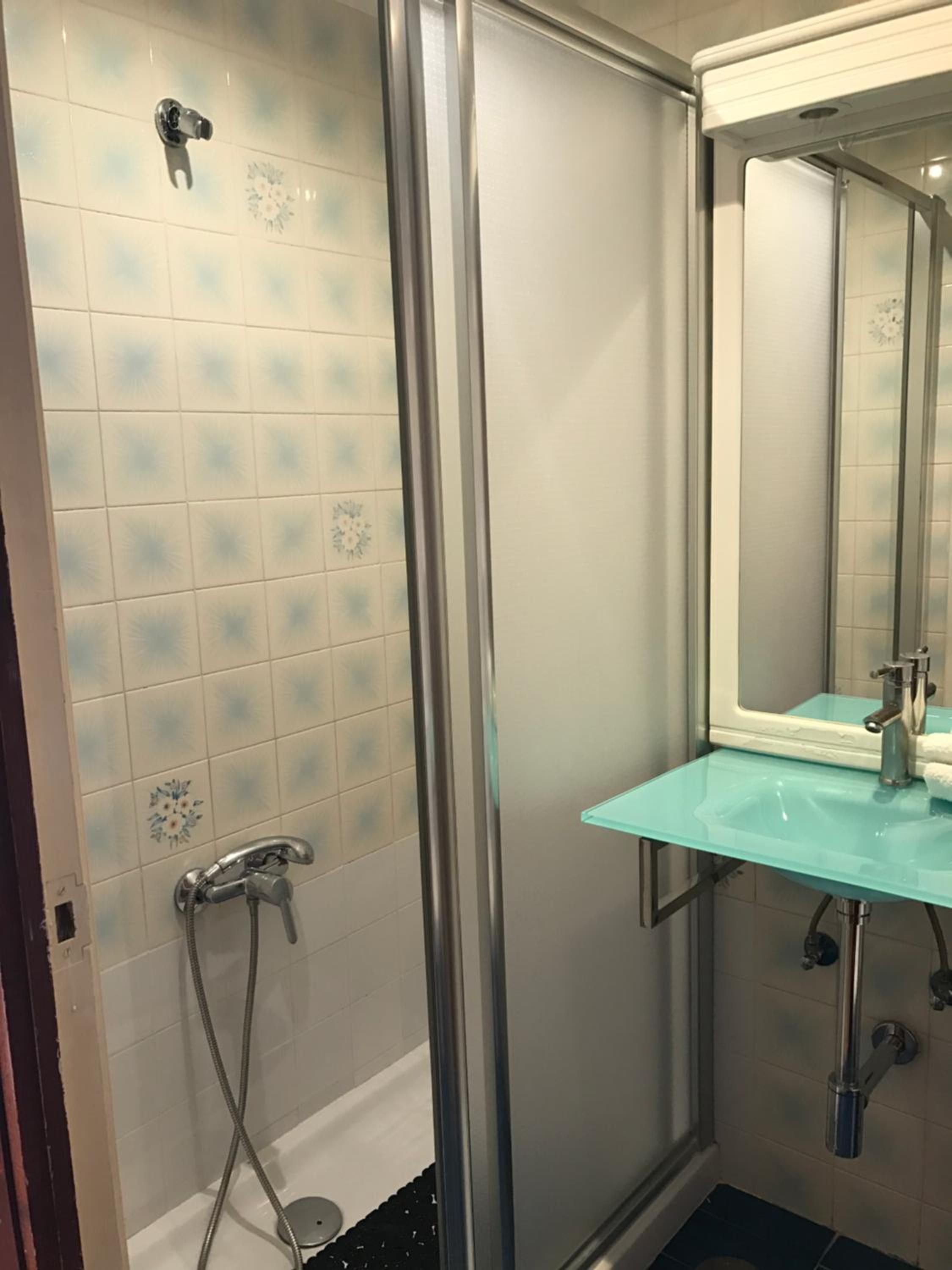 El cuarto de baño pequeño y la mampara de la ducha no cerraba bien