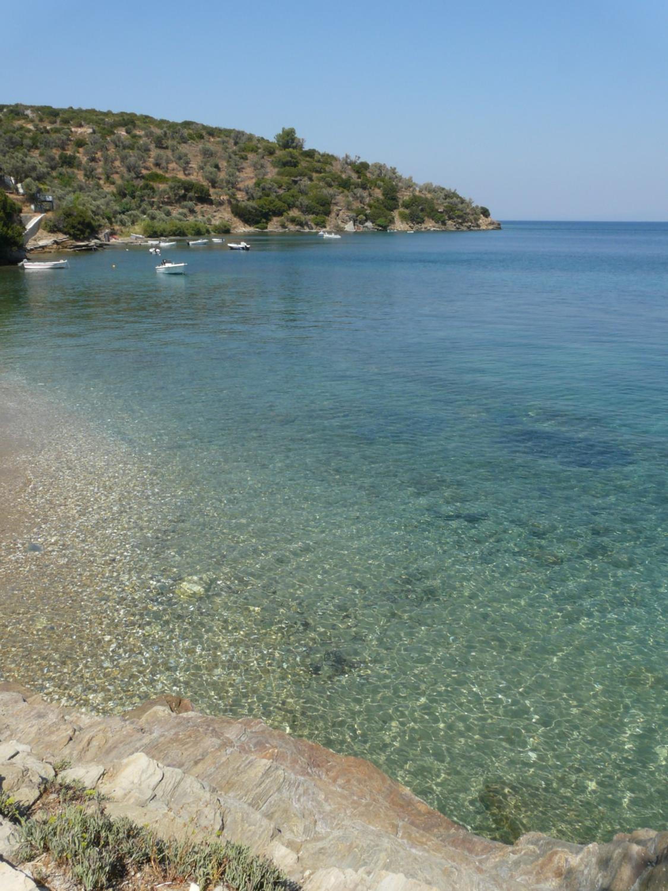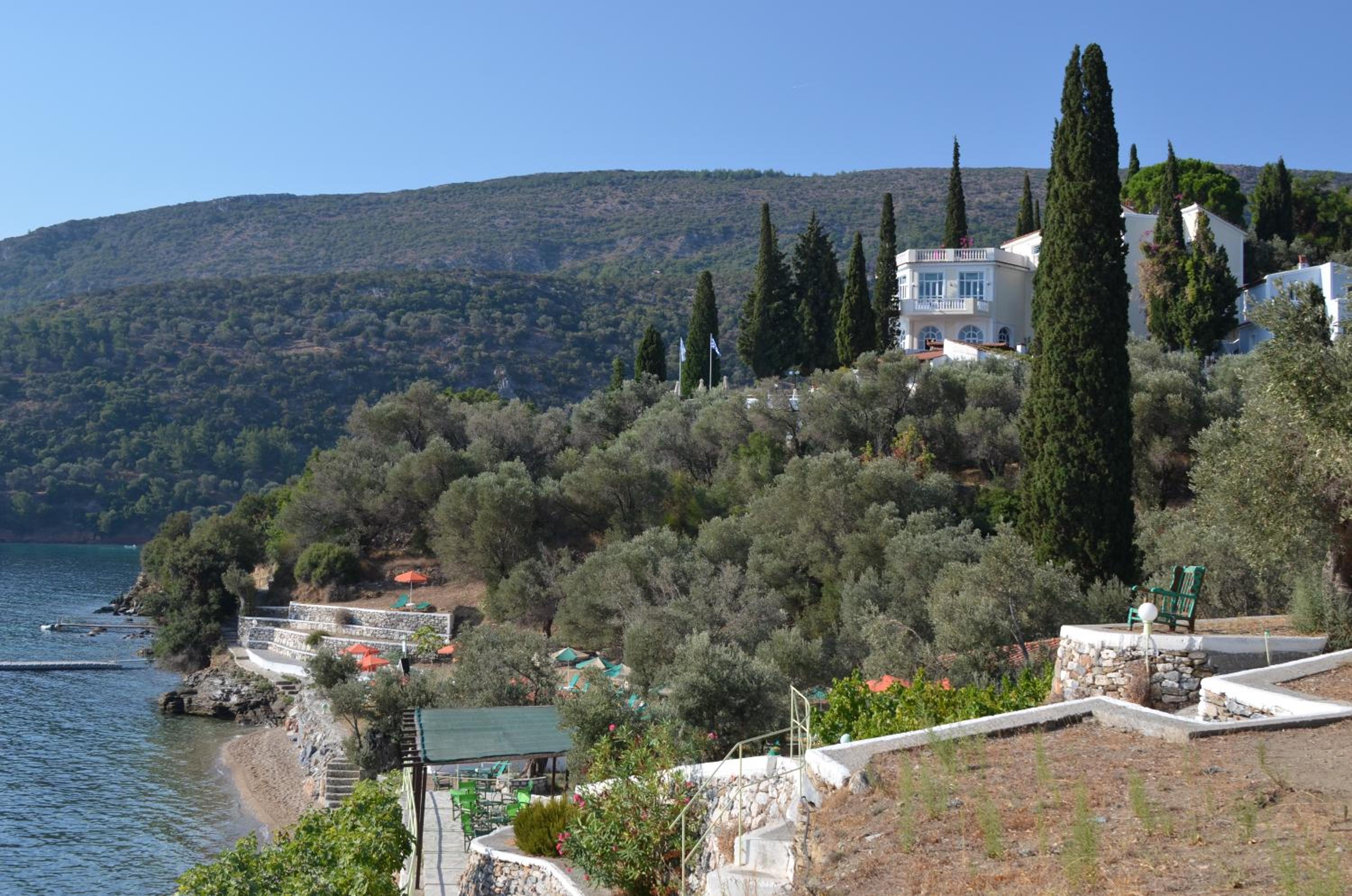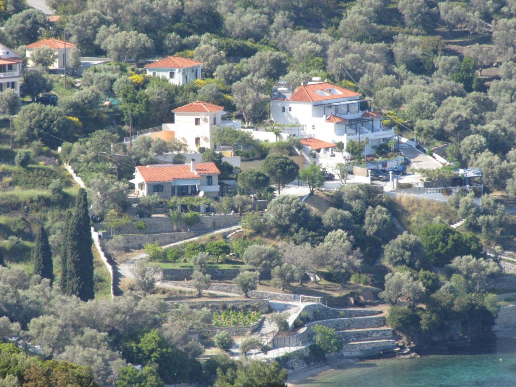 Georgos and Irini are generous, friendly hosts. Their property is in a beautiful location on a slope overlooking the sea towards Turkey, with beautiful olive groves, lemon and orange trees, and flowers all around. We were there at springtime--it was stunning. The slope is steep, which we quite liked, as it added to the stunning scenery. But it would be difficult for anyone with mobility issues. It's not overbuilt. The houses are arranged in a way that provides privacy and a view. We loved being in a place where all we could hear were birds, waves, and the wind! The beach below the property is rocky but very clean (we saw an EU sign down the road at Kerveli beach that cleared the bay as absolutely pollution free) and very swimmable. We came early in the season so we were not able to try out the beach bar, but with these hosts, we're sure it's great.