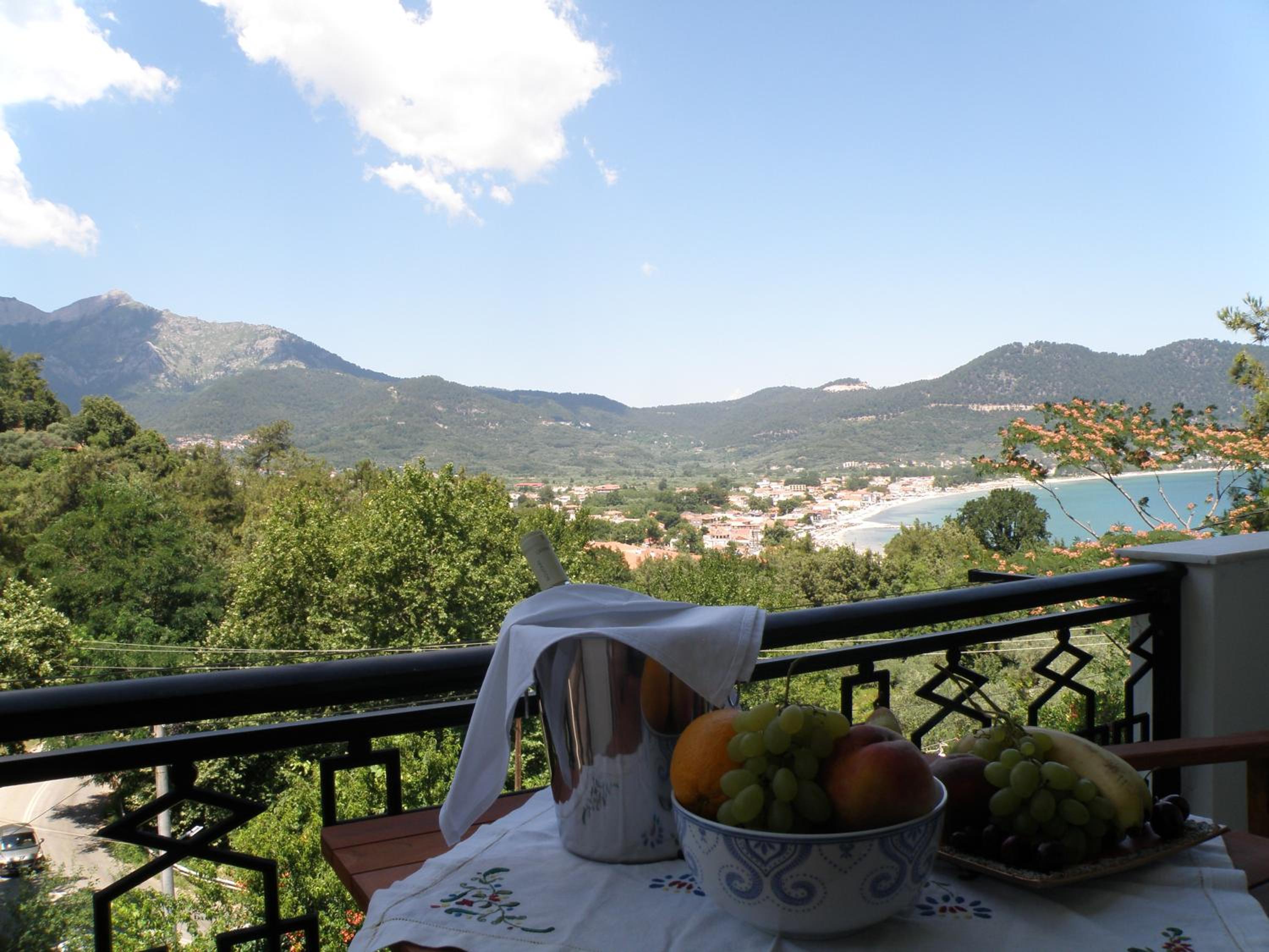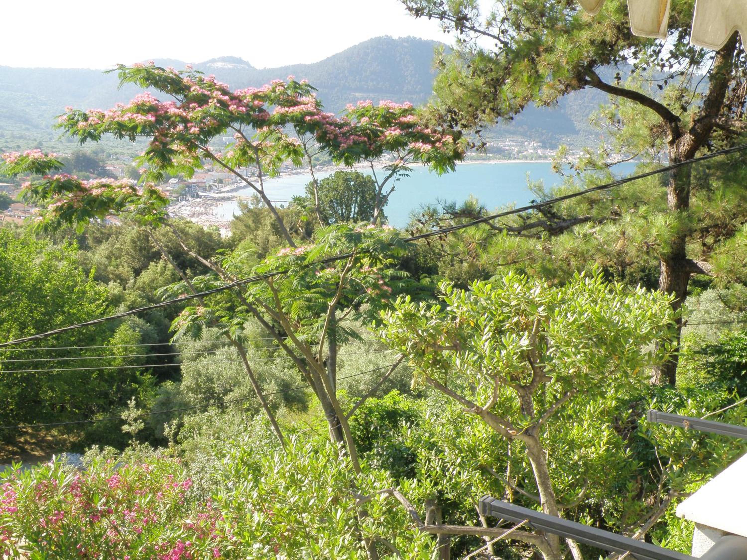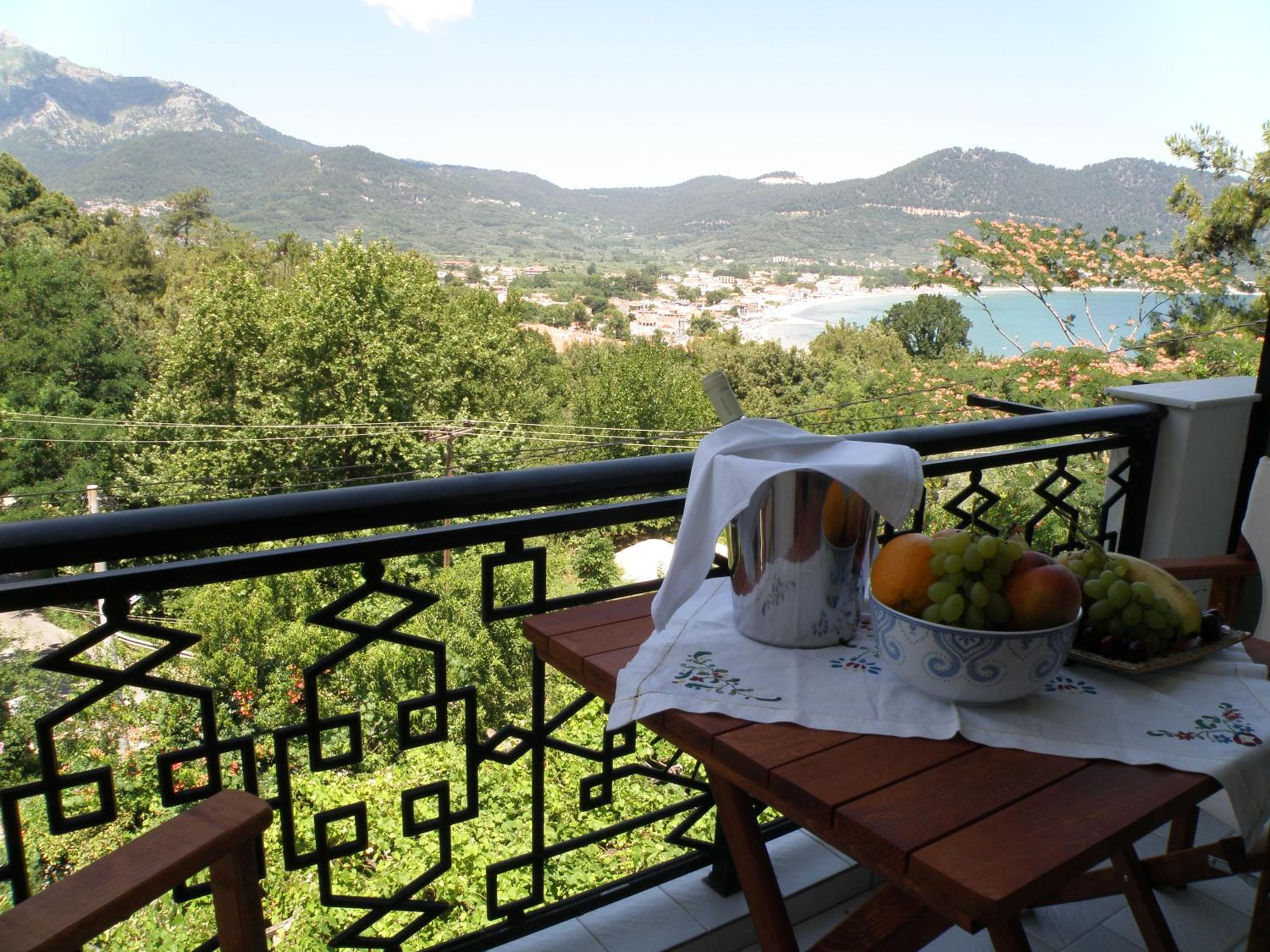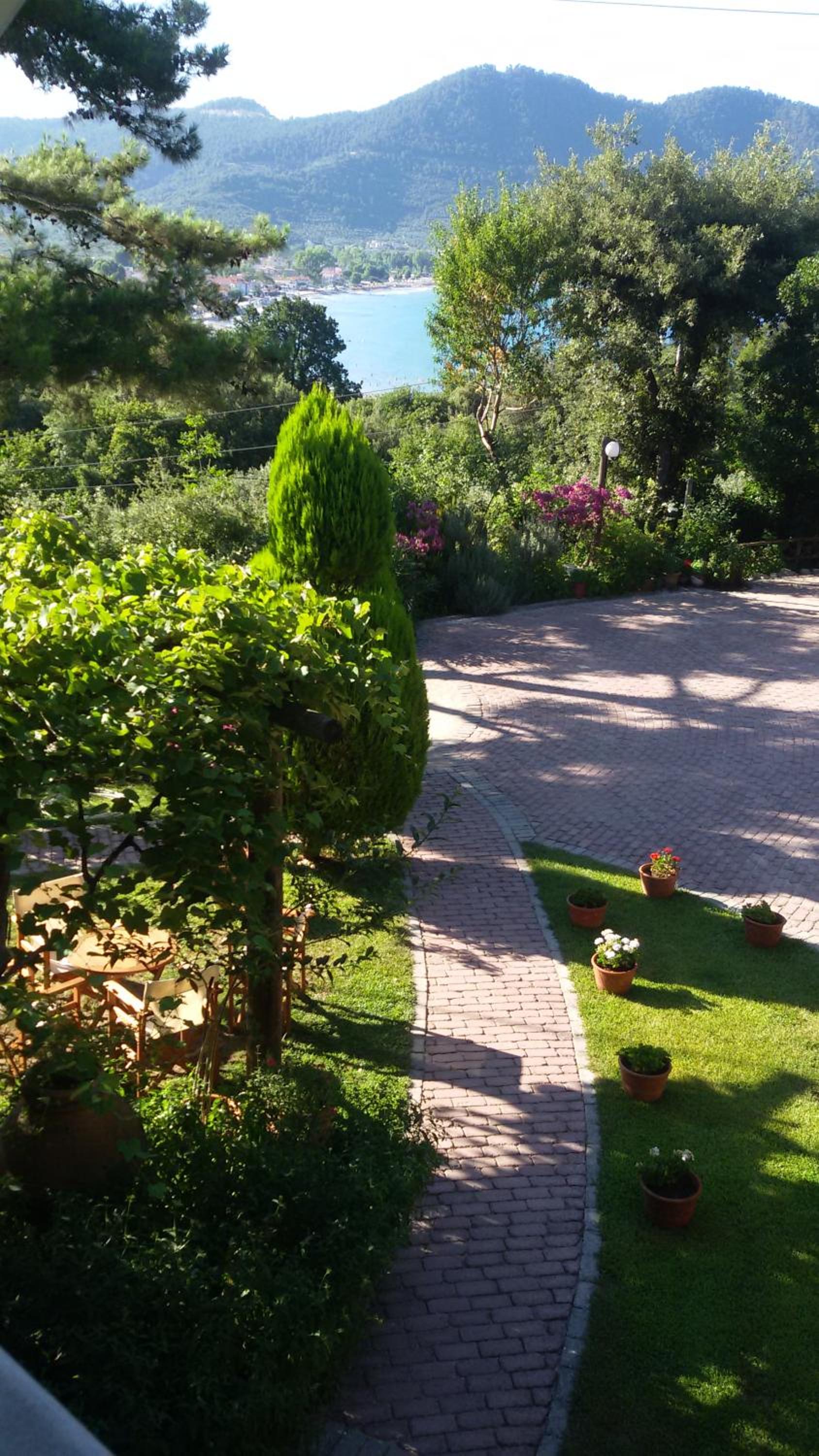 Locația este de vis – înconjurată de multă verdeață, pini și grădini îngrijite, cu o priveliște superbă asupra muntelui Ipsarion și a golfului din Skala Potamia. Diminețile sunt magice, cu răcoarea munților și sunetul valurilor în fundal, iar serile te surprind cu un peisaj de poveste.