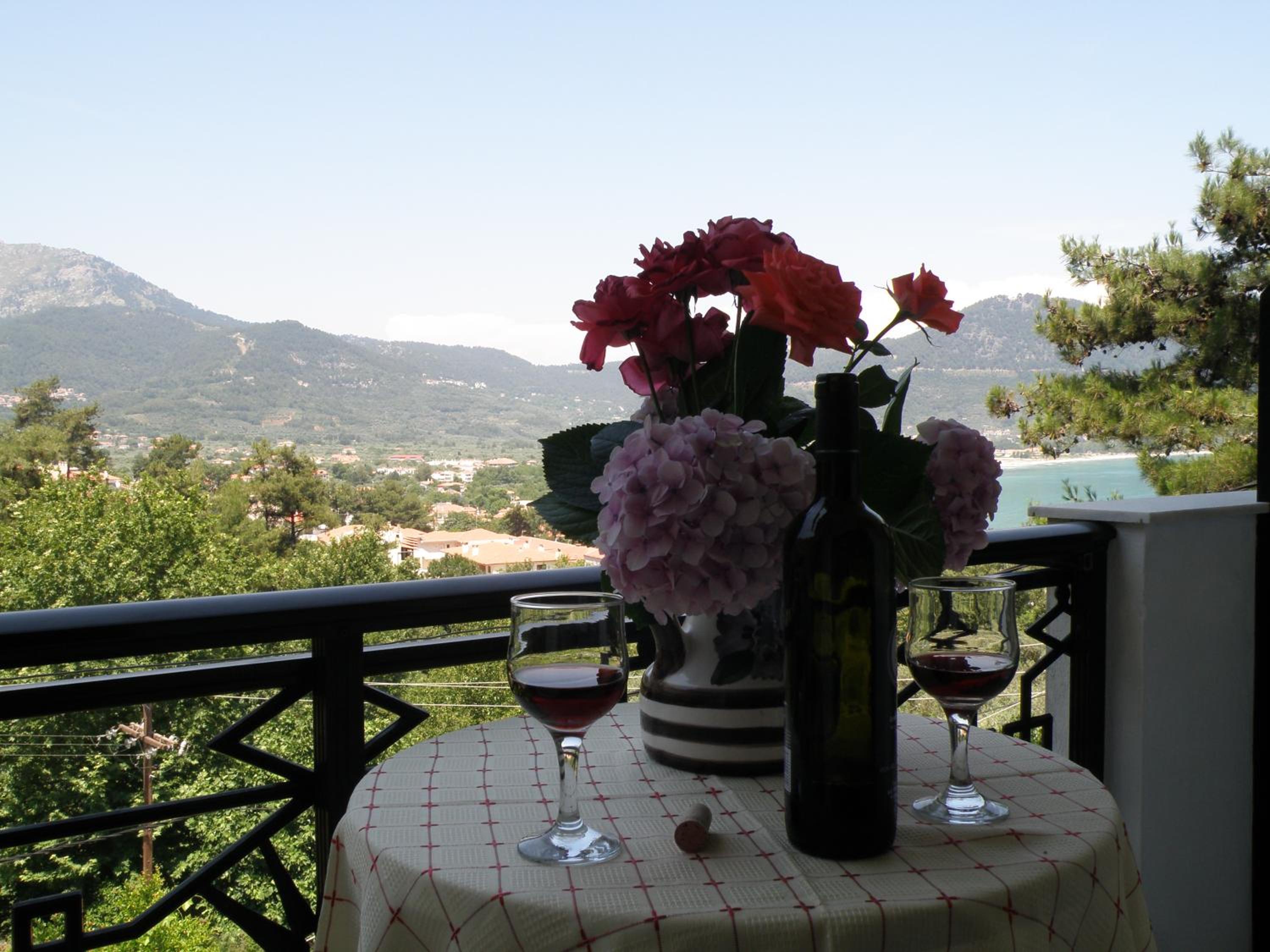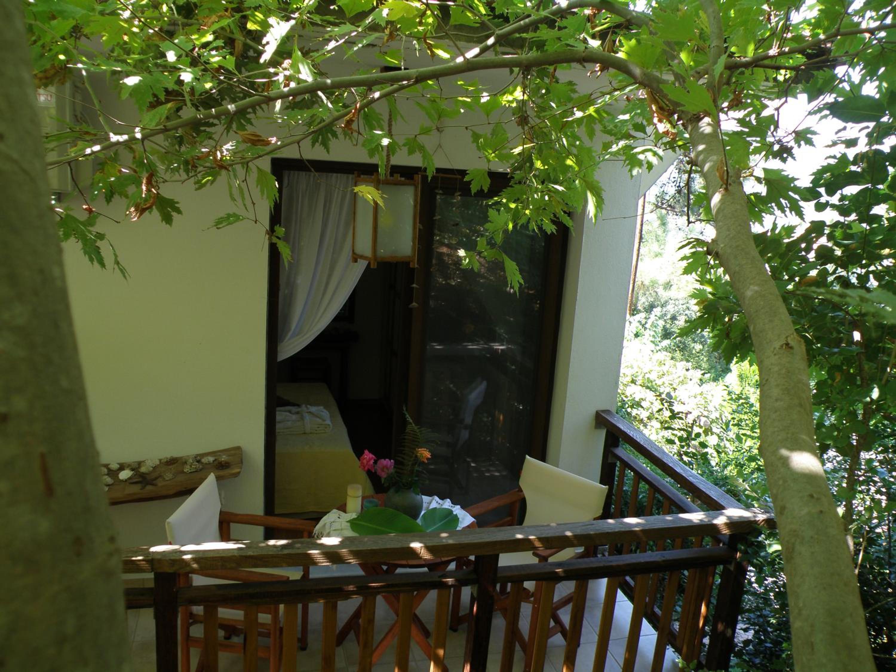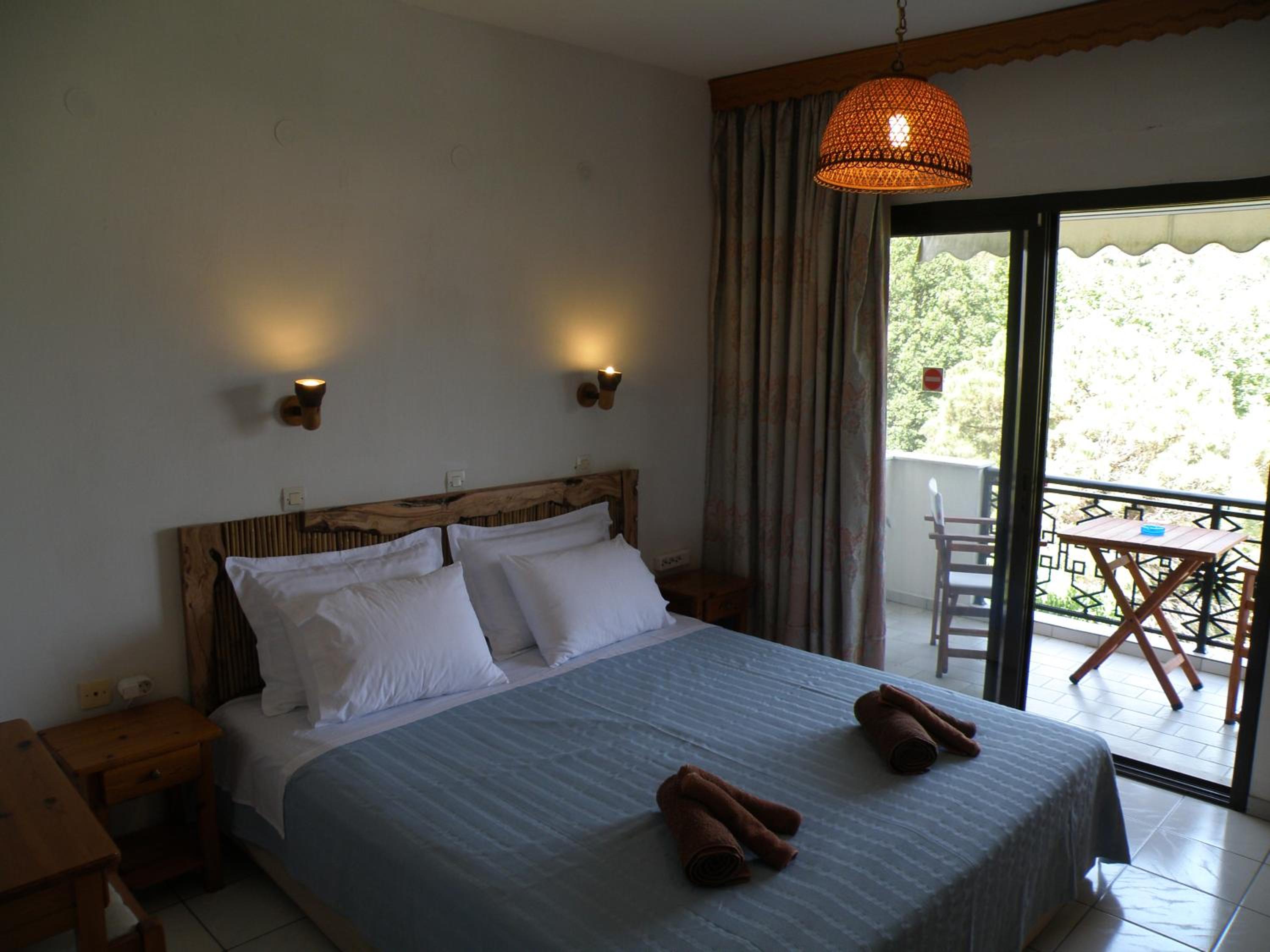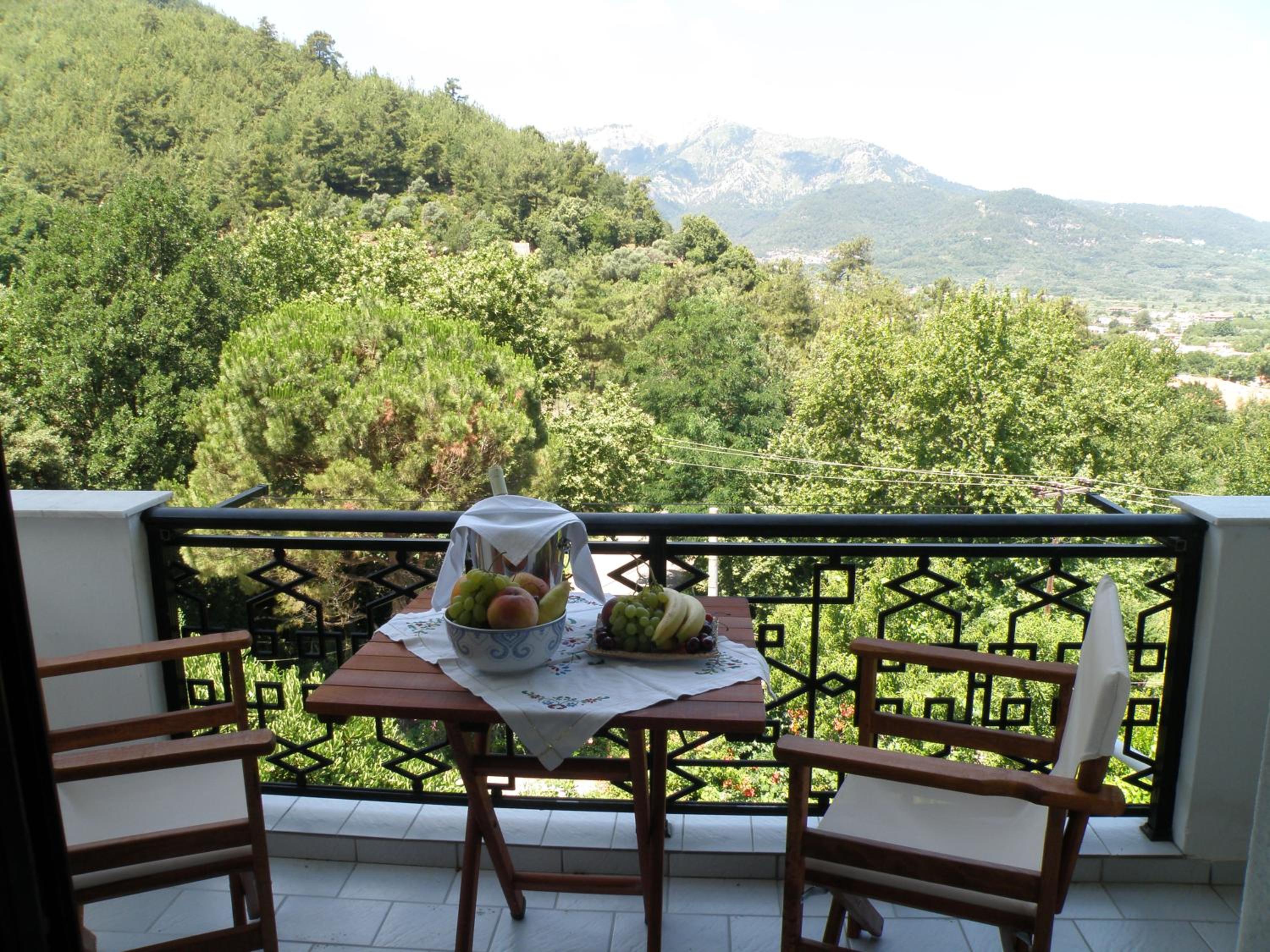 Locația este de vis – înconjurată de multă verdeață, pini și grădini îngrijite, cu o priveliște superbă asupra muntelui Ipsarion și a golfului din Skala Potamia. Diminețile sunt magice, cu răcoarea munților și sunetul valurilor în fundal, iar serile te surprind cu un peisaj de poveste.
