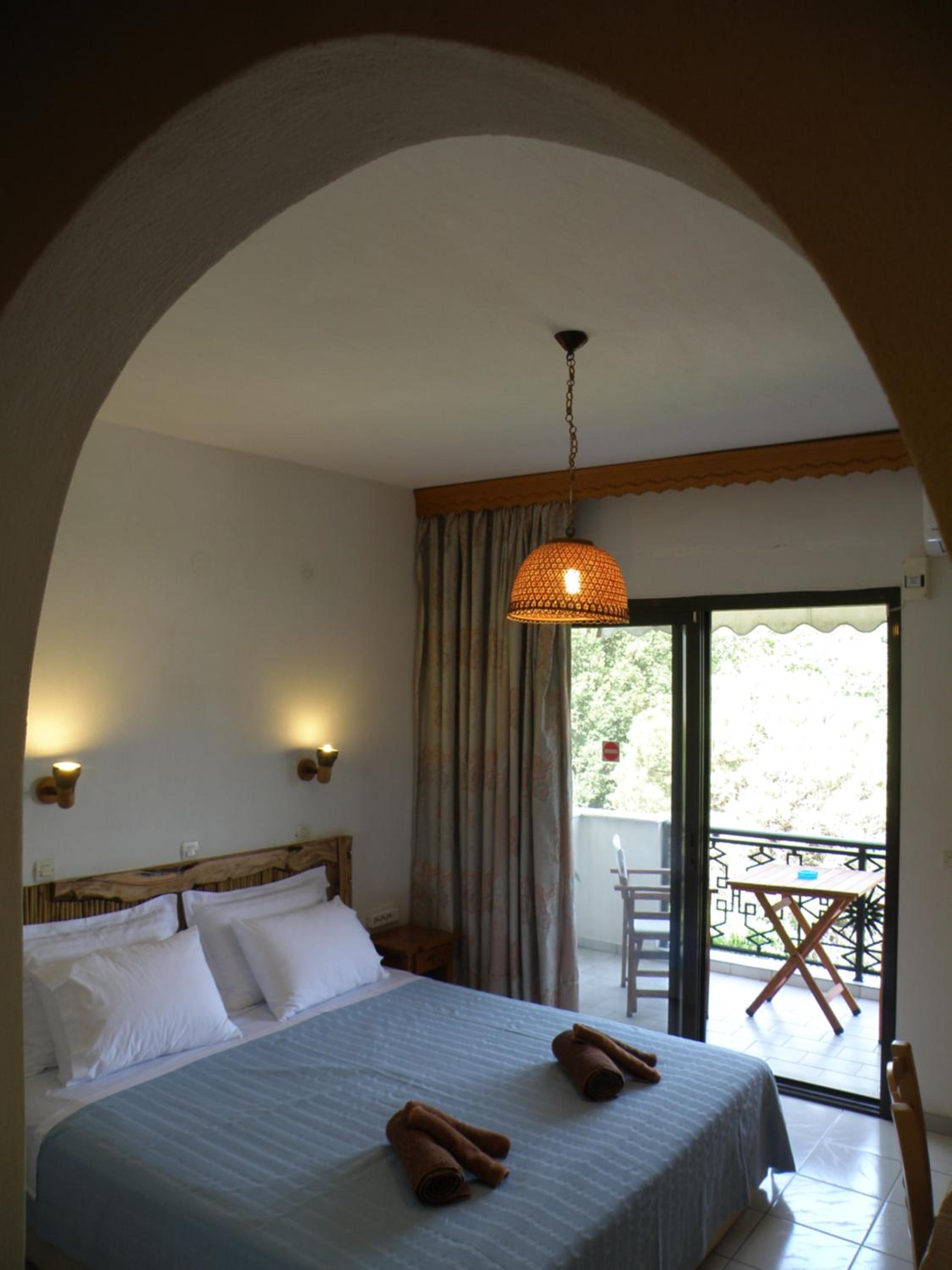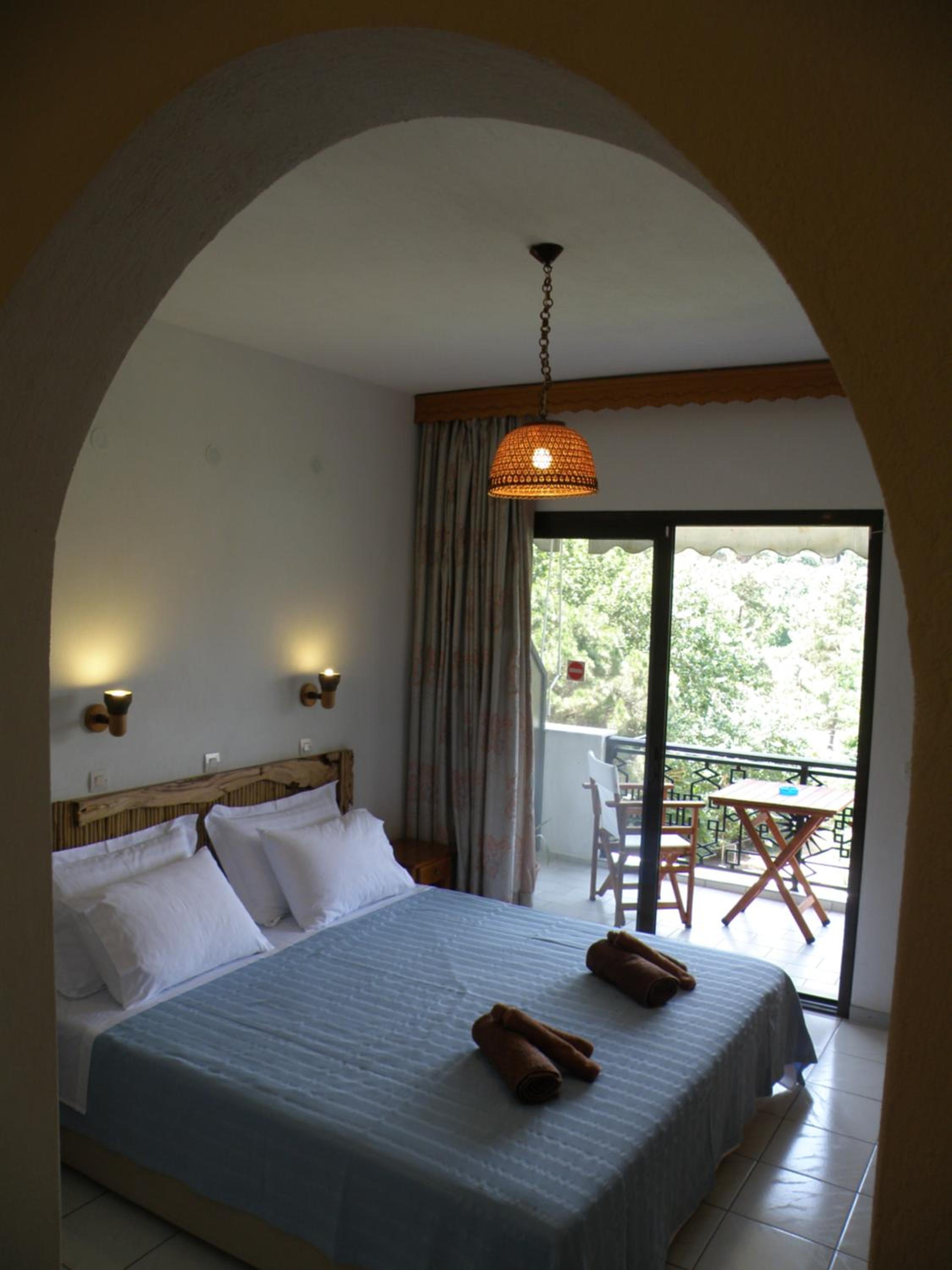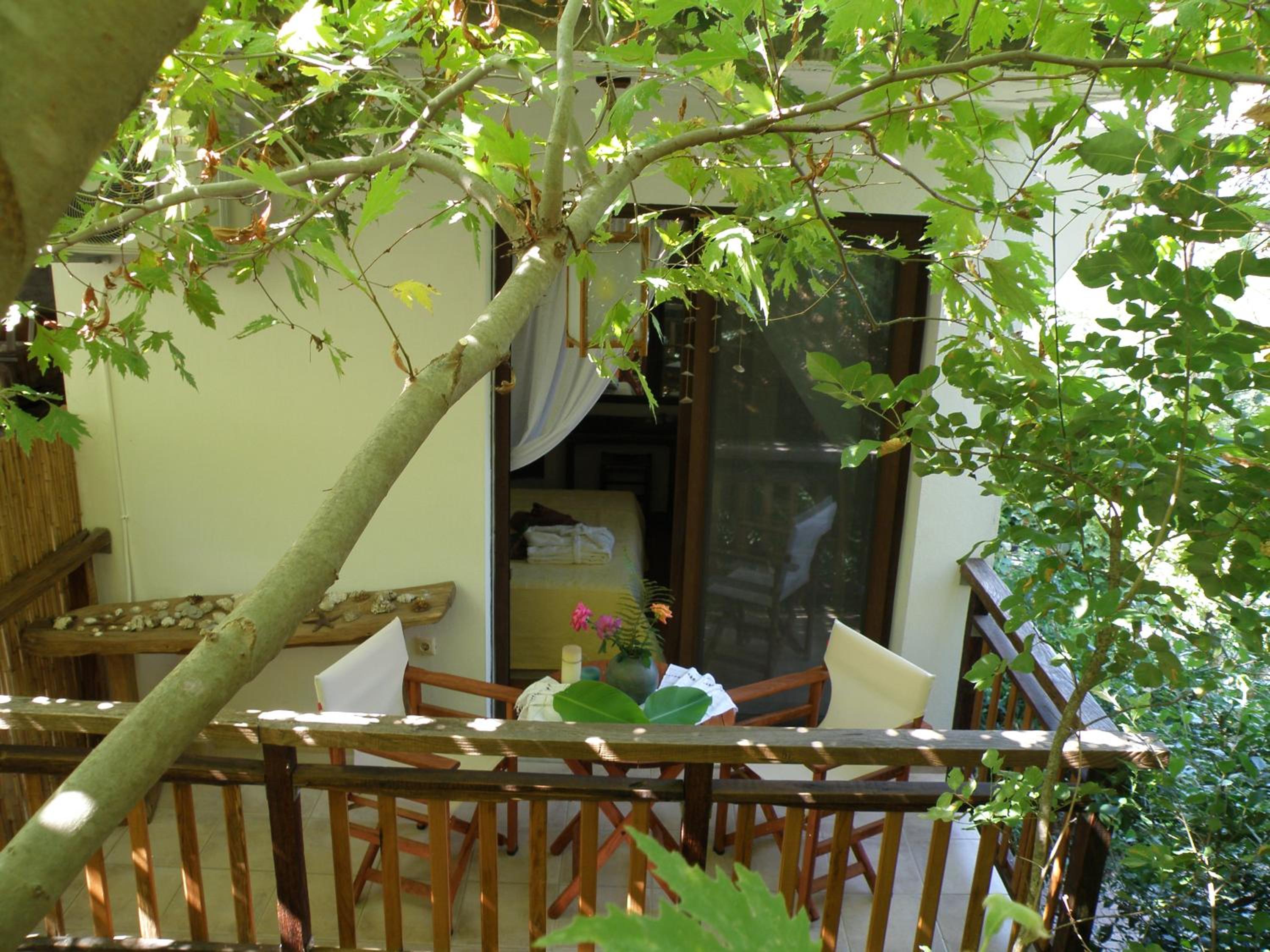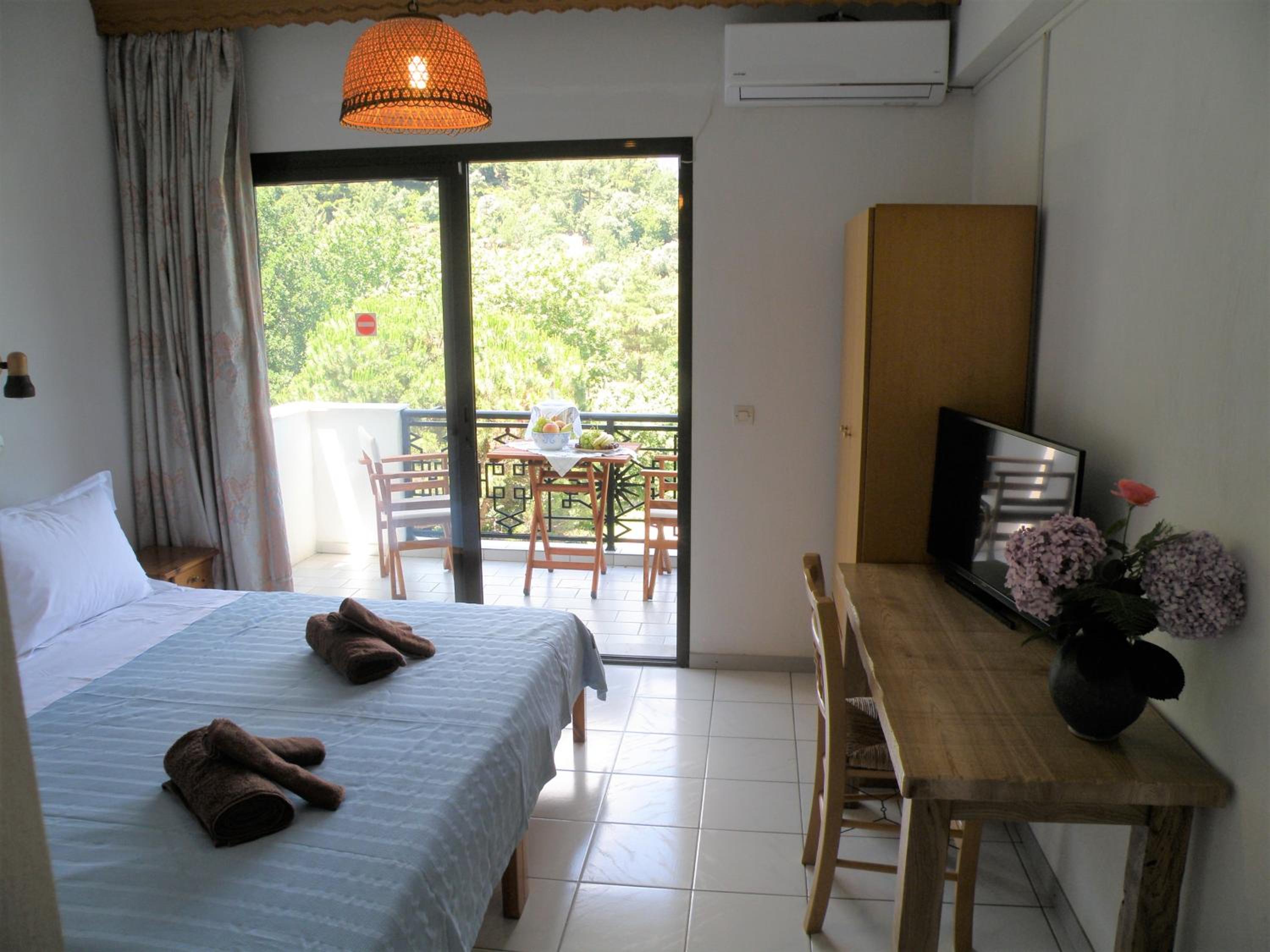 Locația este de vis – înconjurată de multă verdeață, pini și grădini îngrijite, cu o priveliște superbă asupra muntelui Ipsarion și a golfului din Skala Potamia. Diminețile sunt magice, cu răcoarea munților și sunetul valurilor în fundal, iar serile te surprind cu un peisaj de poveste.