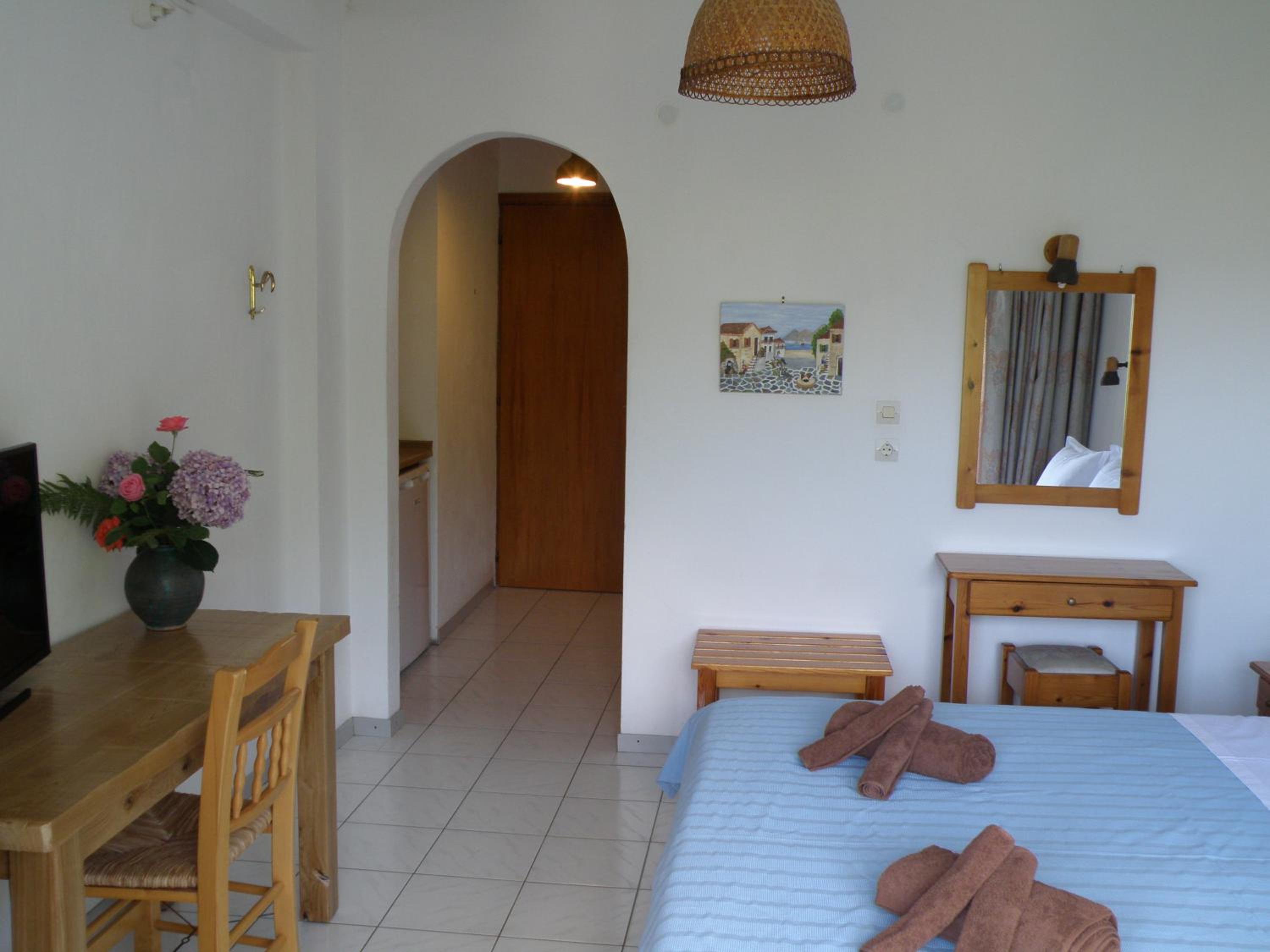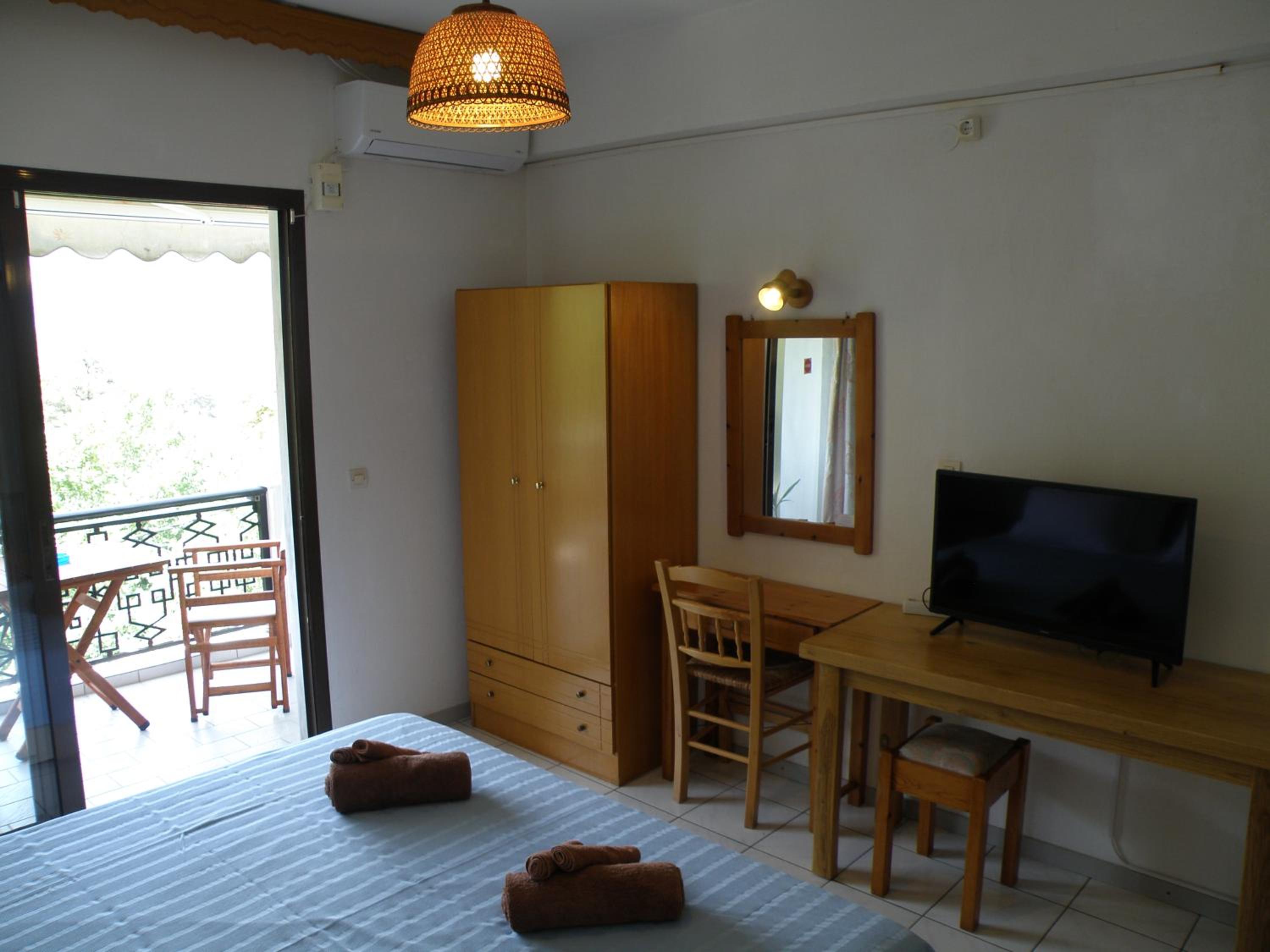 Experience comfort and convenience in every room at Villa Dimitra. From air conditioning and free WiFi to a well-equipped kitchenette and private terrace with sea views, each unit is designed to make your stay memorable.