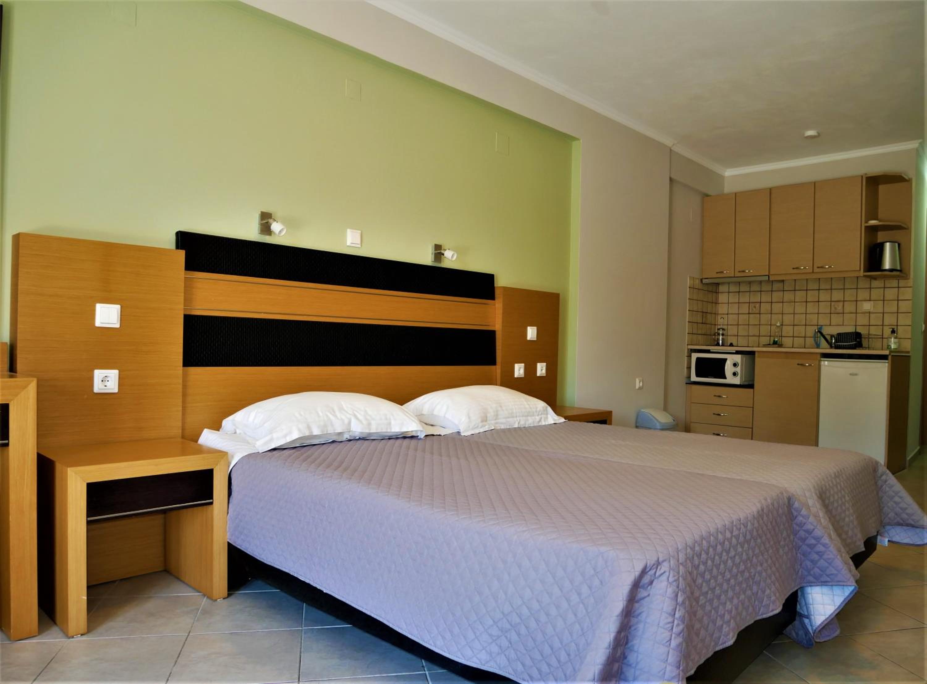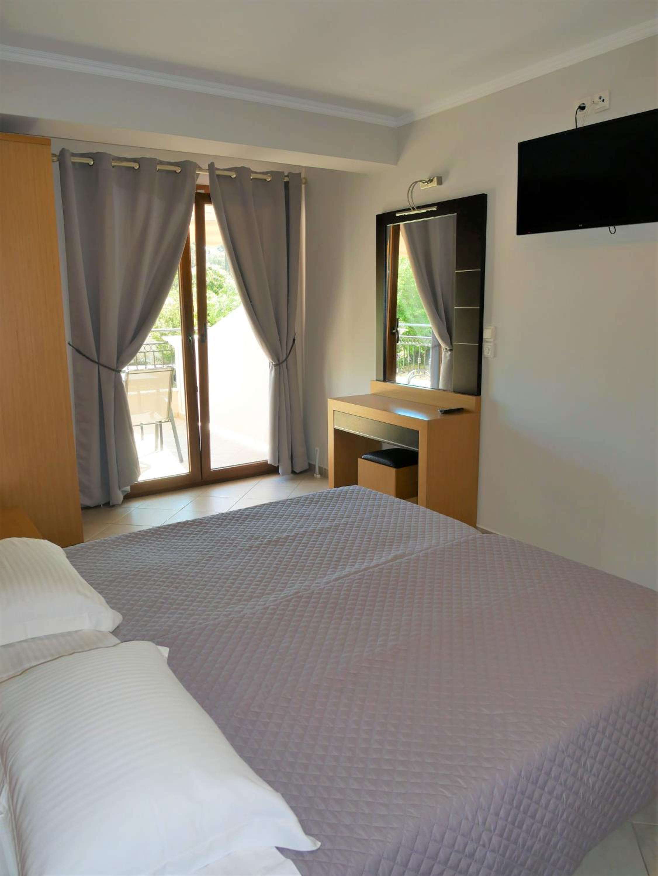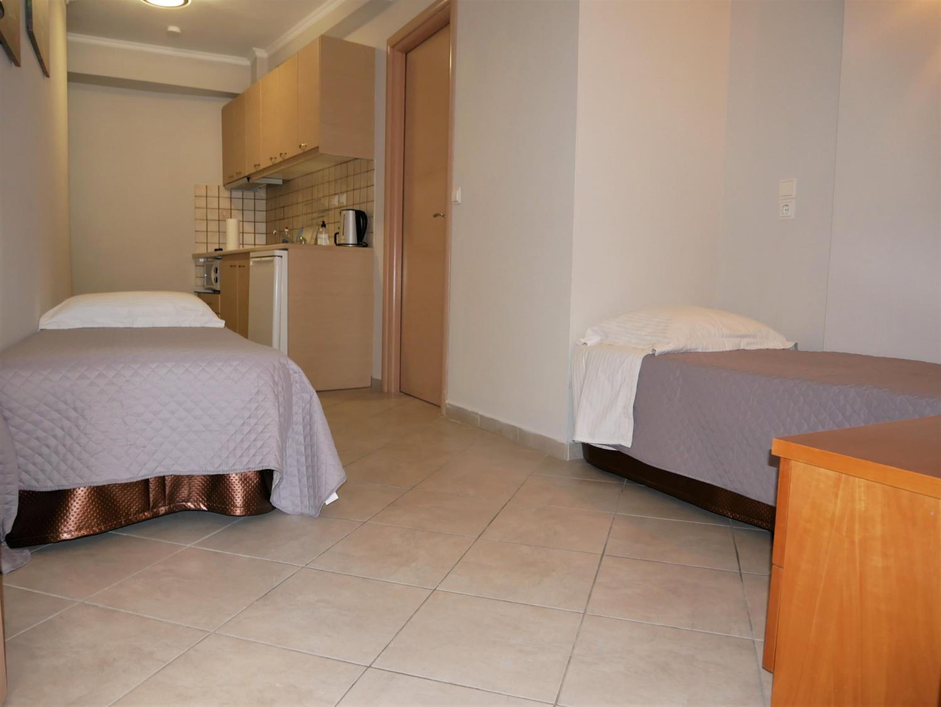 One of the best we stayed in, maybe even best one. Big rooms, 2 AC, big balcony, super clean, nice kitchen, nice toilete, location is great, best rrstoran in parga on 2meters, shop 10m, walking zone in front of you, best beach really close, no big uphill. Really nice pleace to be. Stuff is great, cleaning and changing towels everyday, we told them there is no need.
