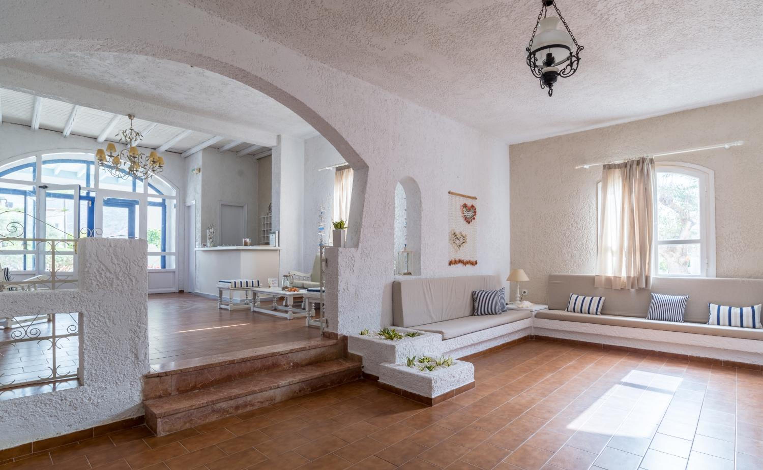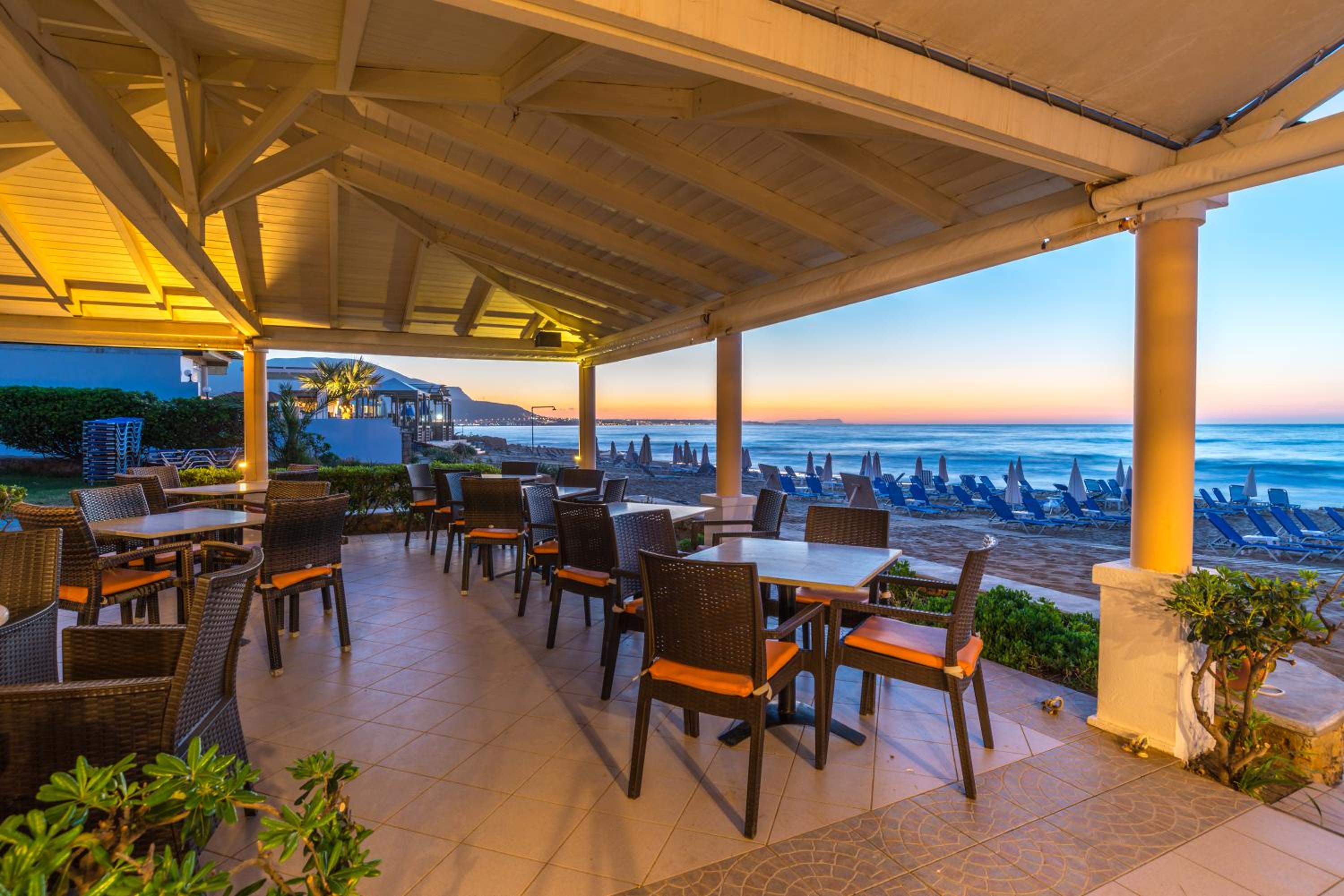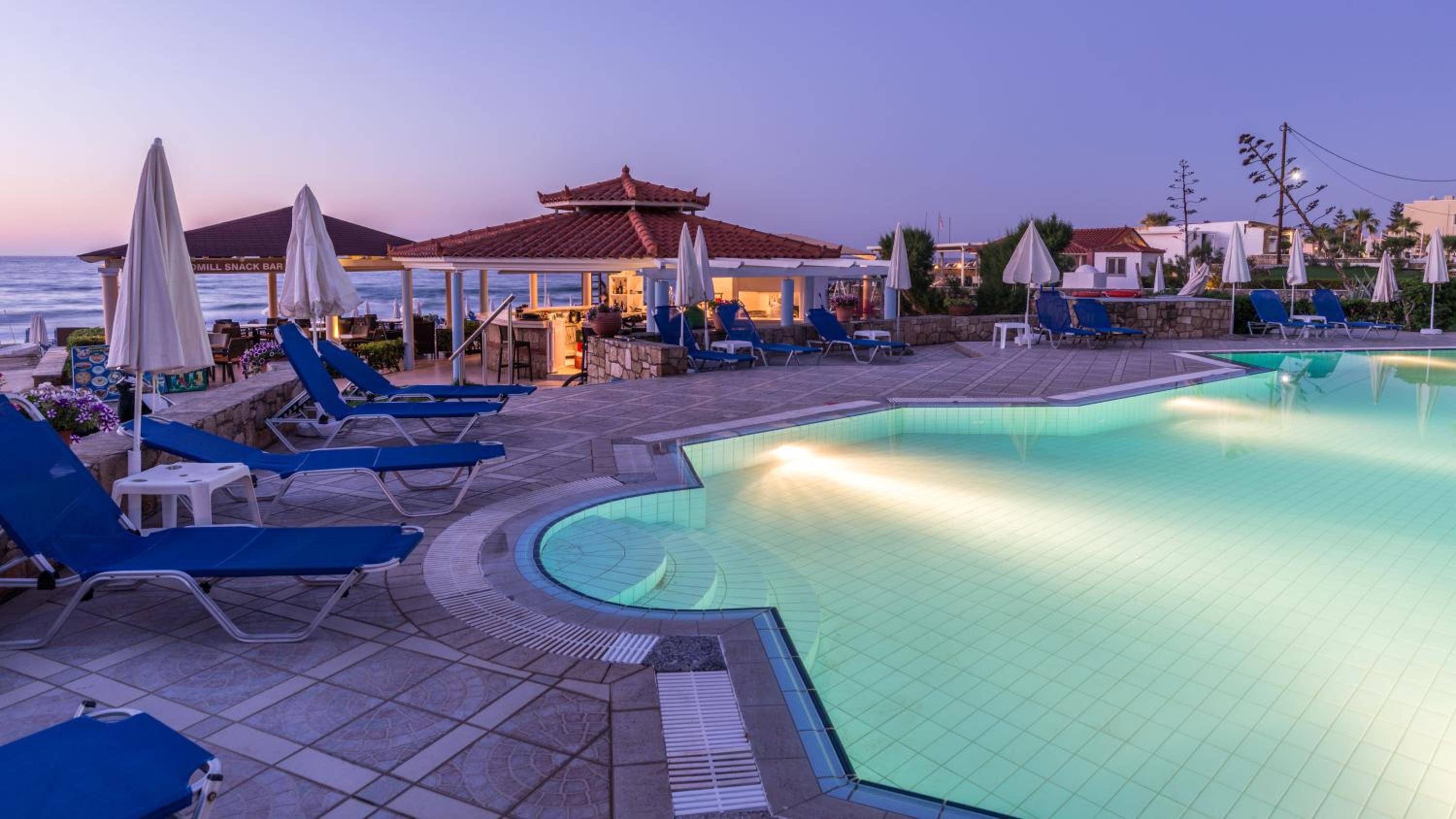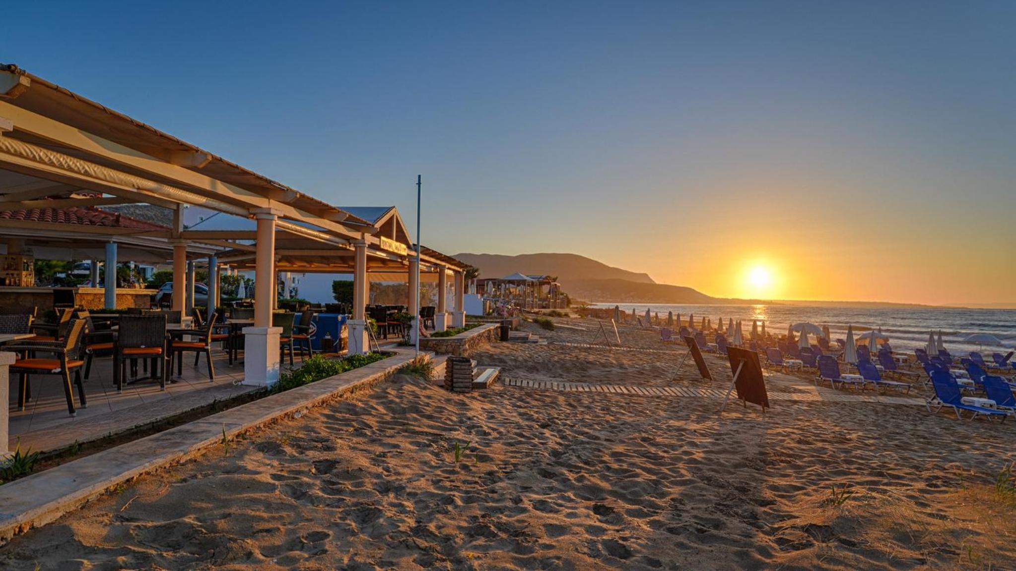 Location is really good.At the end of the busy part of Malia so much quieter. Beach, pool and snack bar all great. Frequent cleaning and towels are changed often. Close to restaurants and shops. Parking on site. Always had sunbeds available.