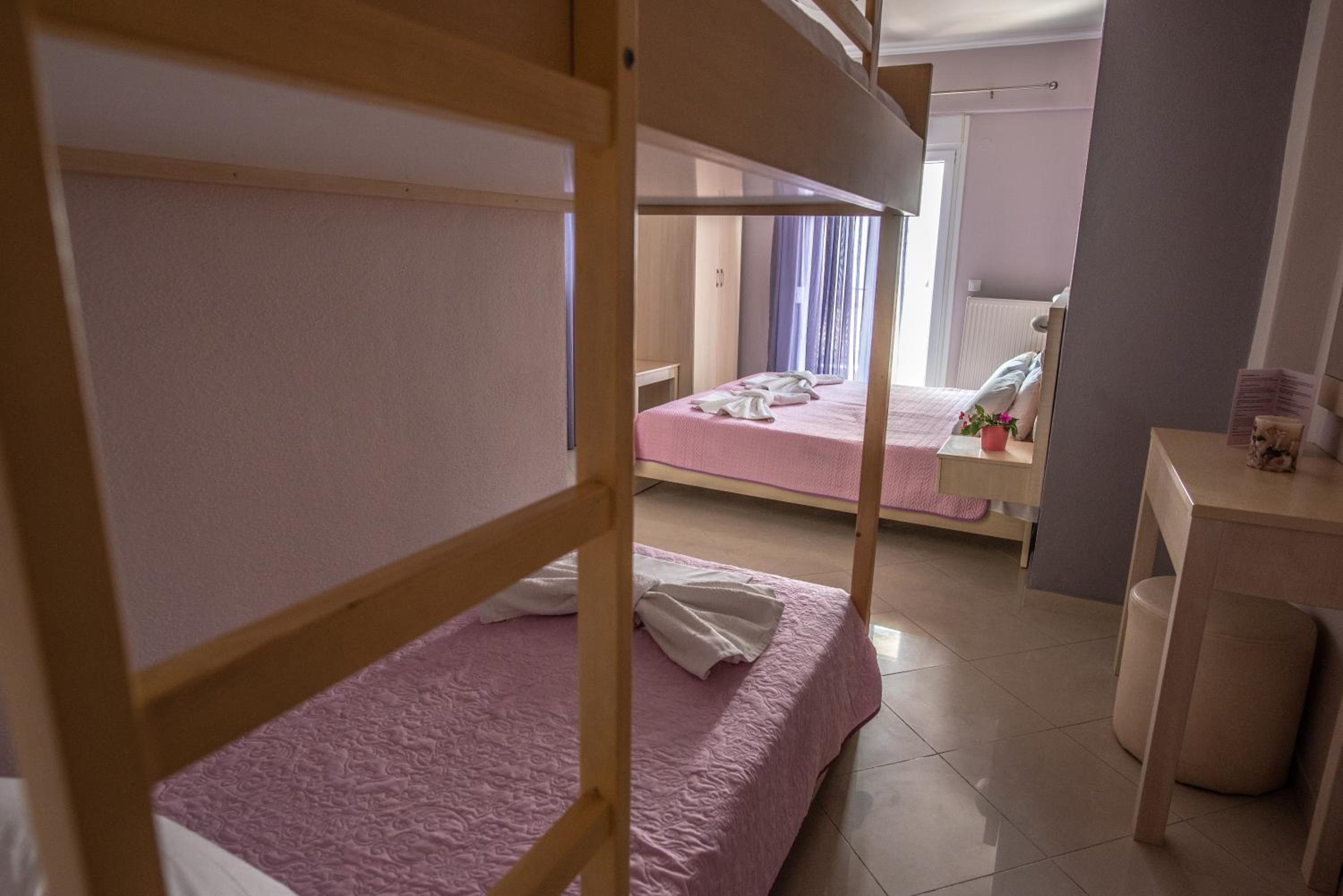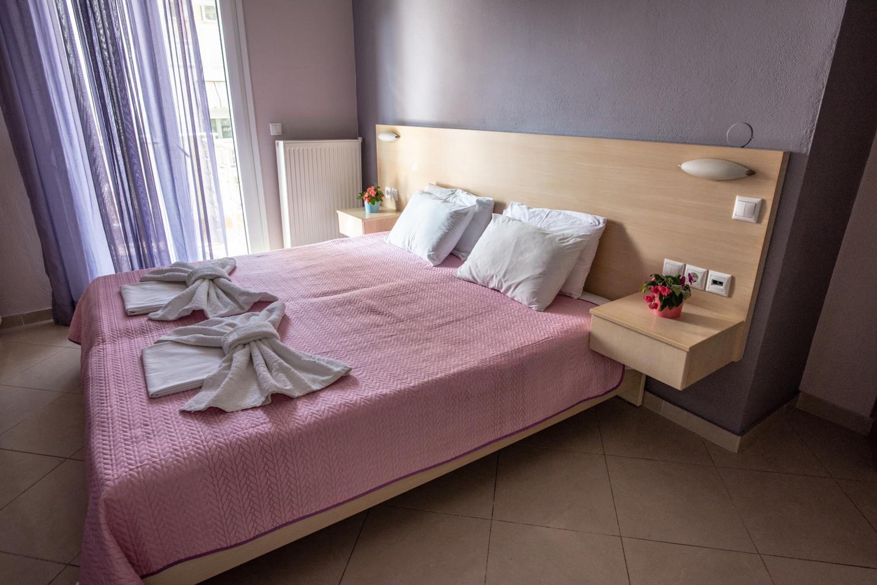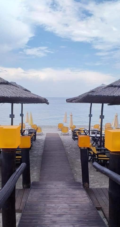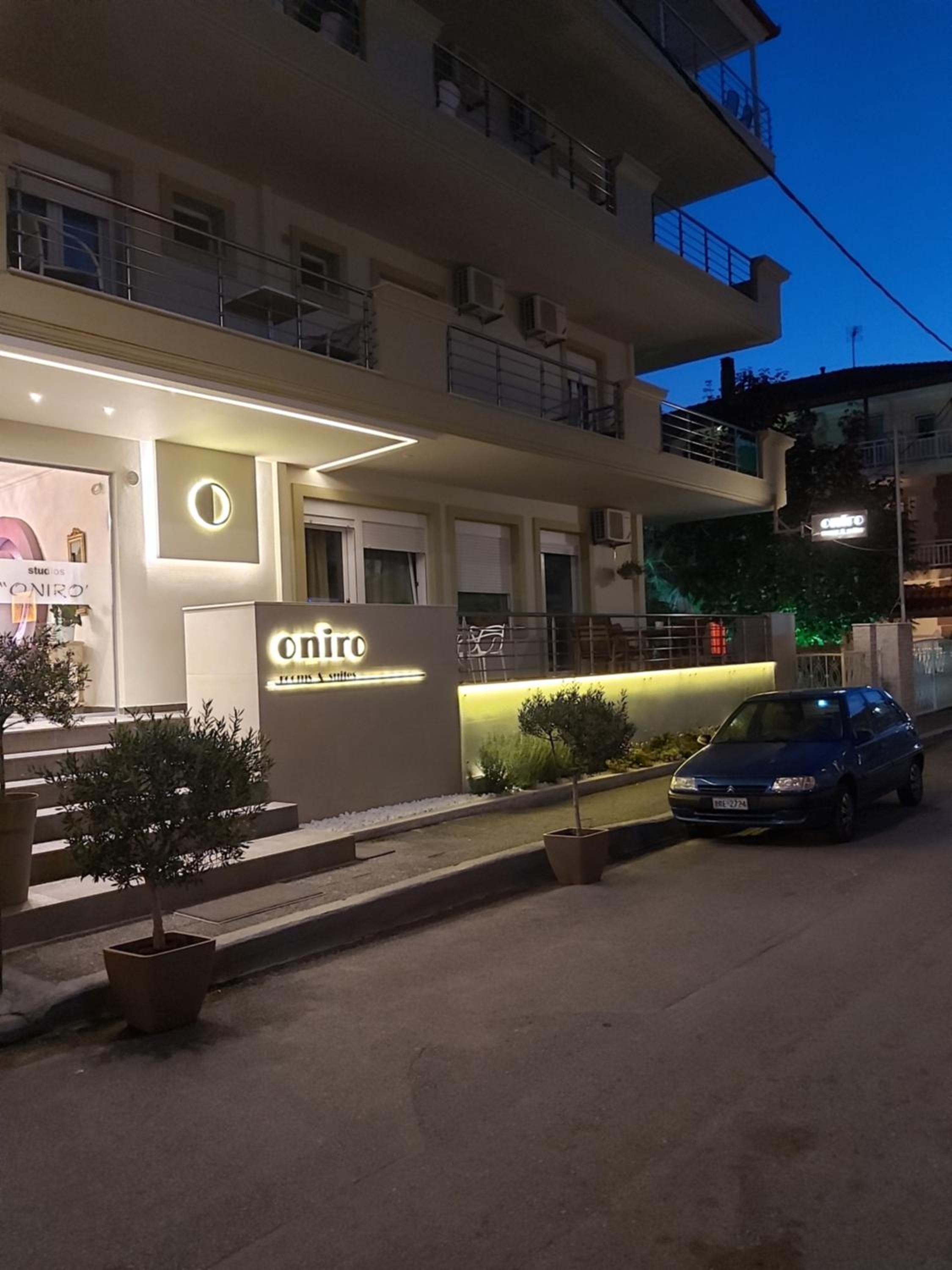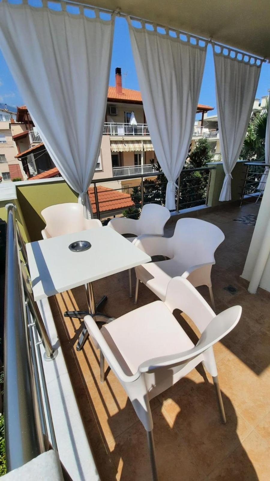 Beachfront Accommodation: Oniro Rooms & Suites, located steps away from Leptokarya Beach, offers a serene beachfront stay with family rooms and a sun terrace for guests to unwind.