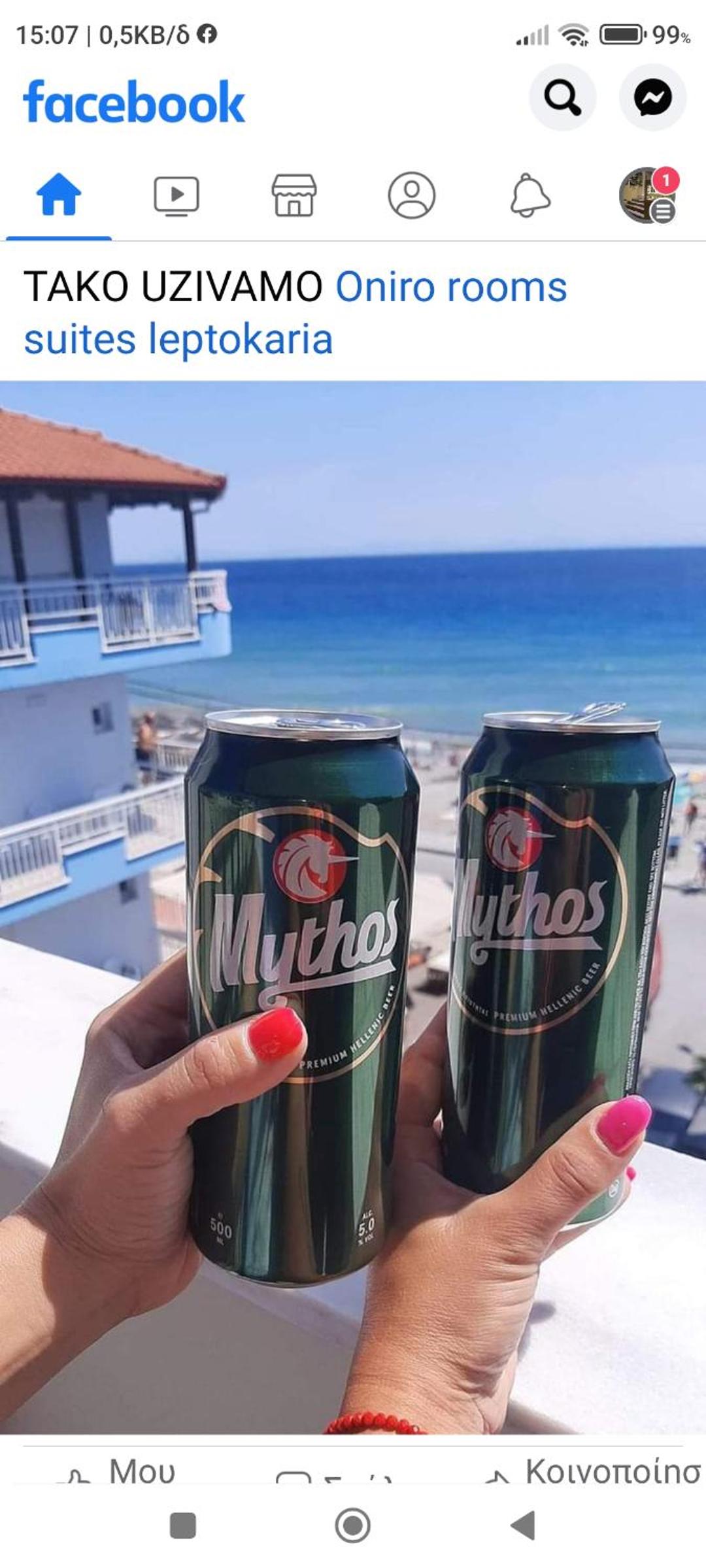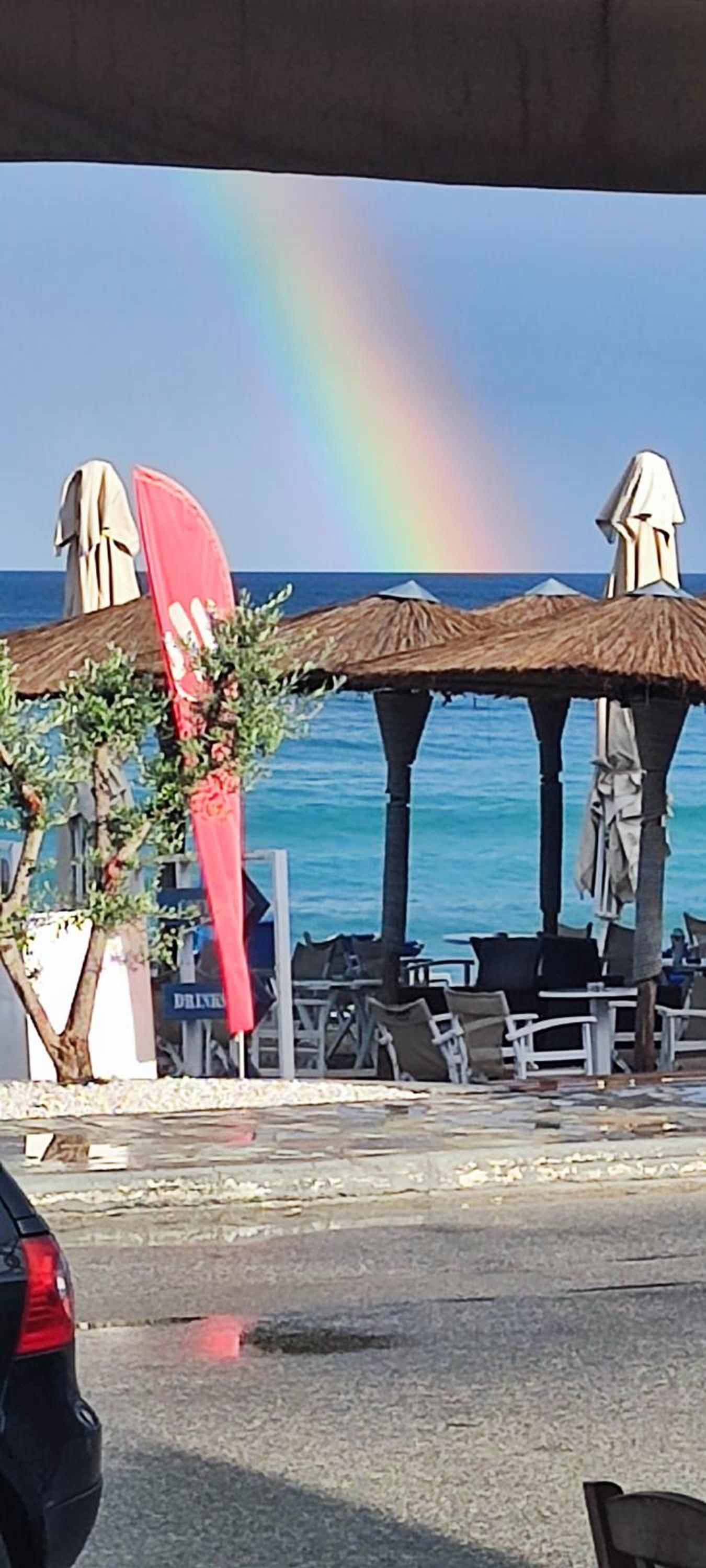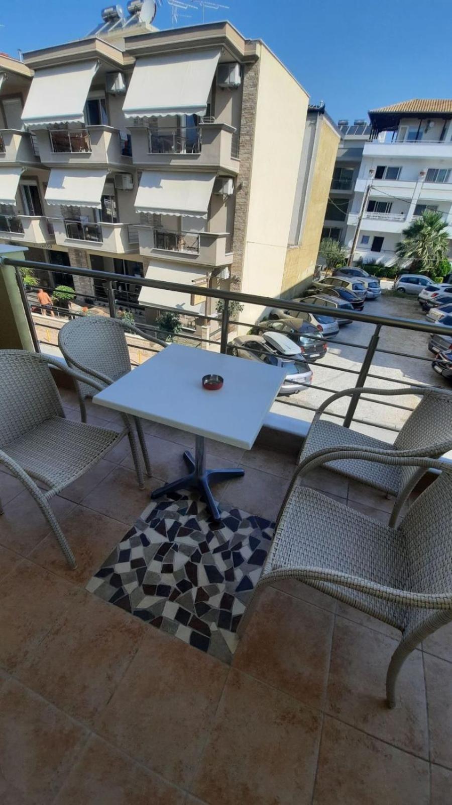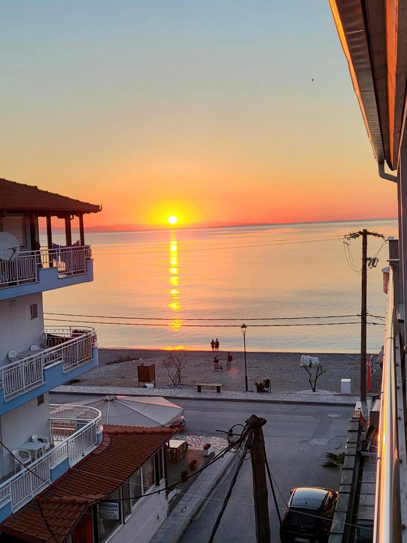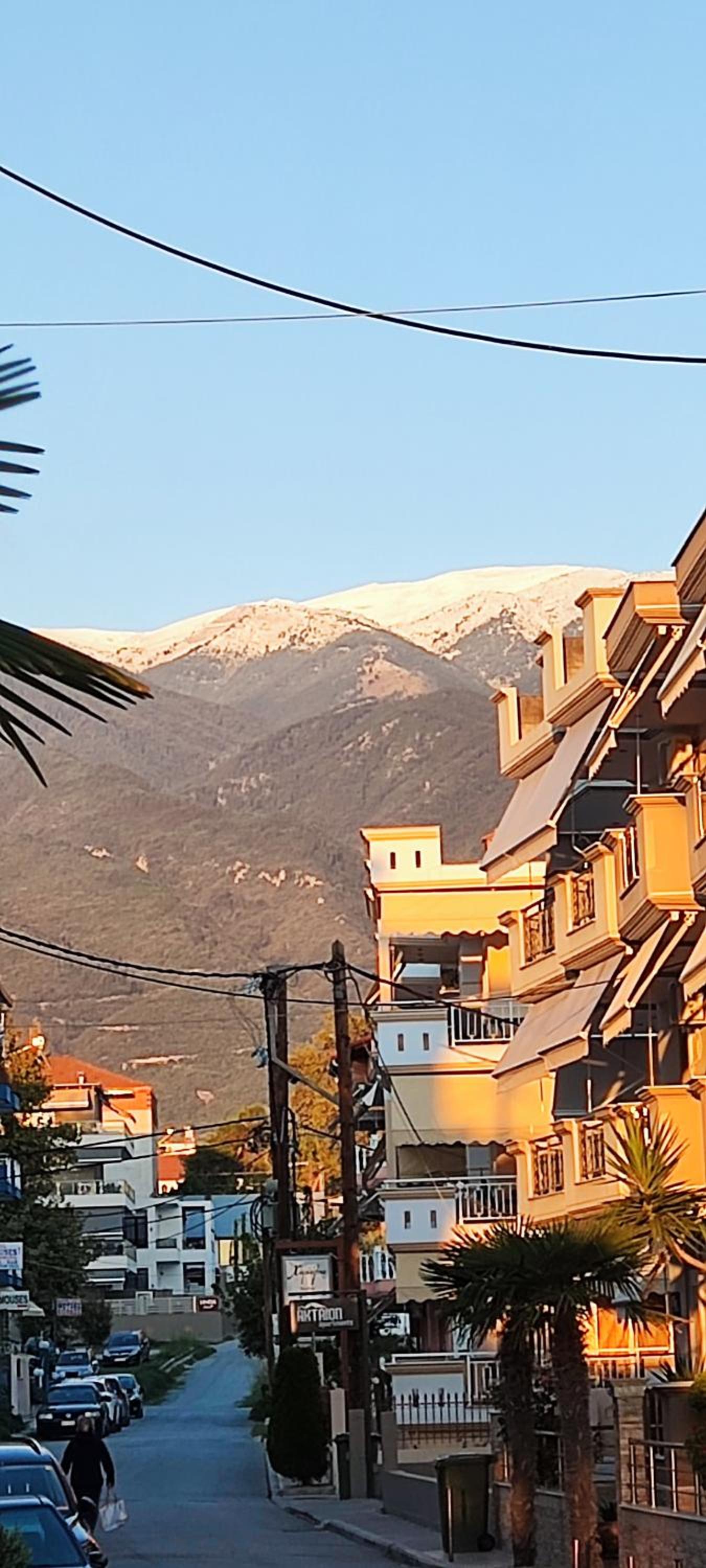 At the seafront from one side and Olimpys mountain on the other. Perfect match. A lot of restaurants and cafes just around. Location is perfect. Owner is very friendly and honest guy. Thank you for everything.