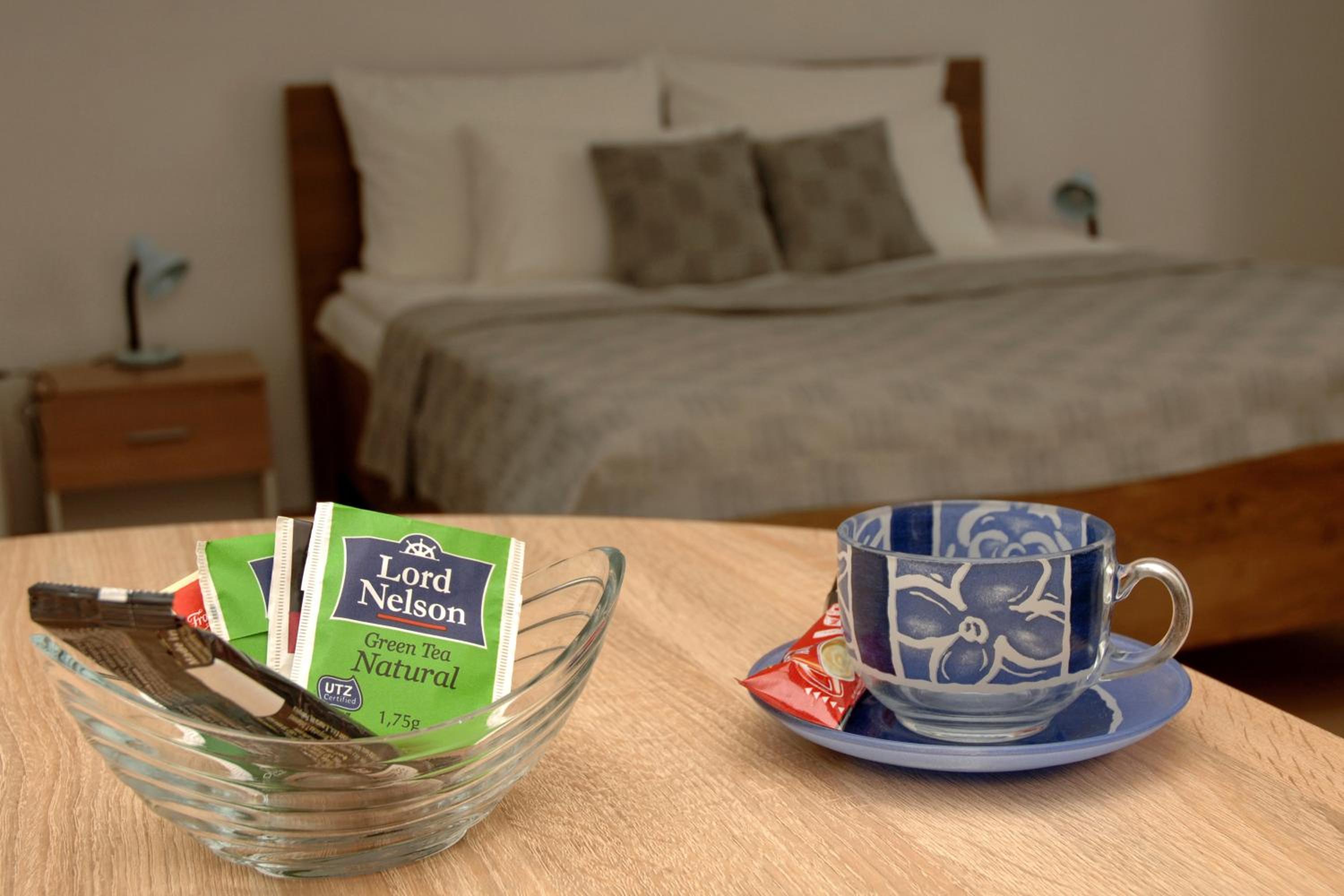Bitki çayı ikramları ve tatlı bi masa dekoru güzeldi. Boydan ayna olması ve valizleri açacak alanın olması da ayrıca iyiydi. Yerler temiz görünüyordu ayakkabıları odanın içinde kullanmadık umarım gerçekten temizdir😅