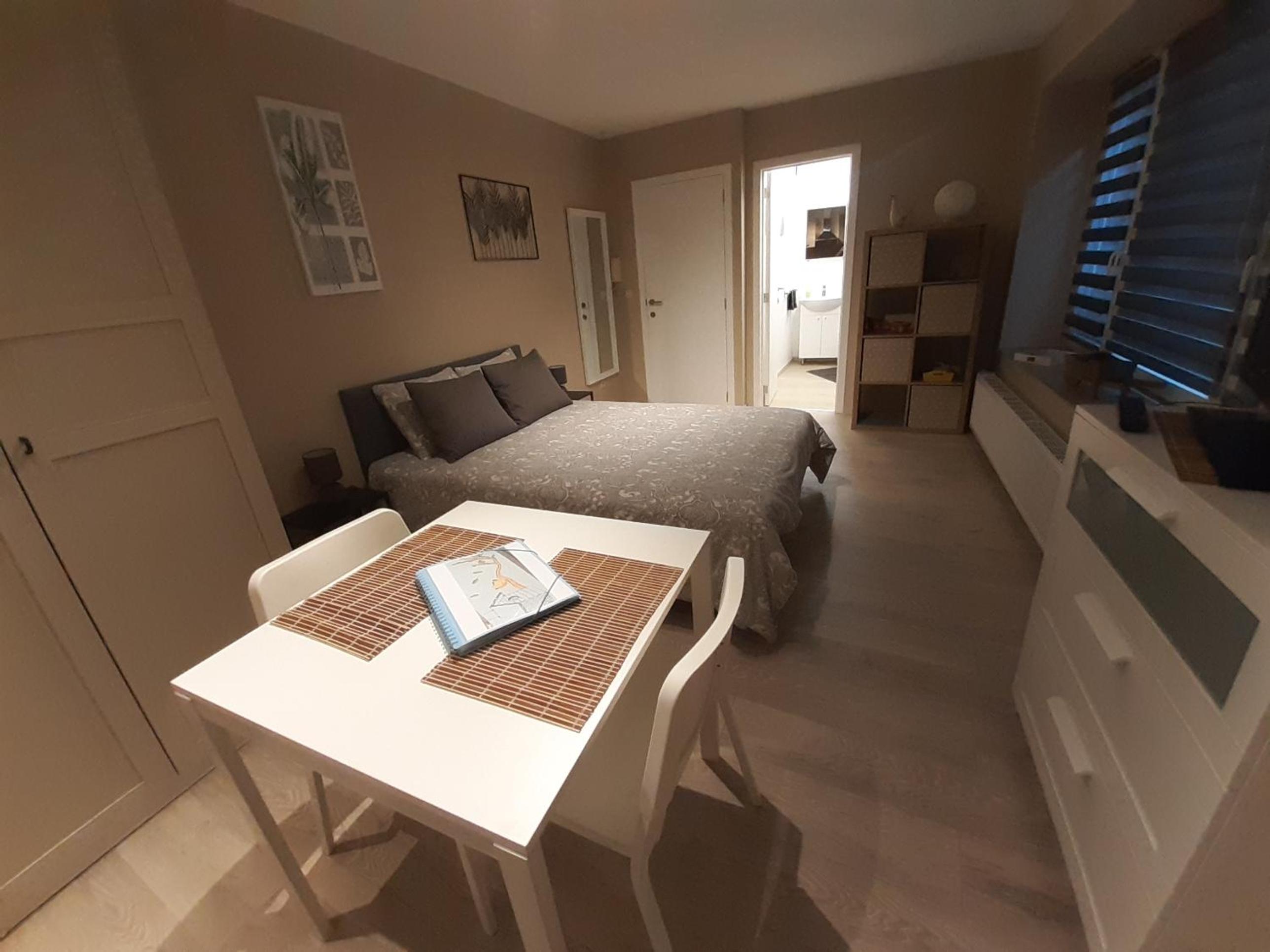 Studio moderne, bien équipé et propre. Très calme et frais malgré la chaleur extérieure, et équipé d'un ventilateur.